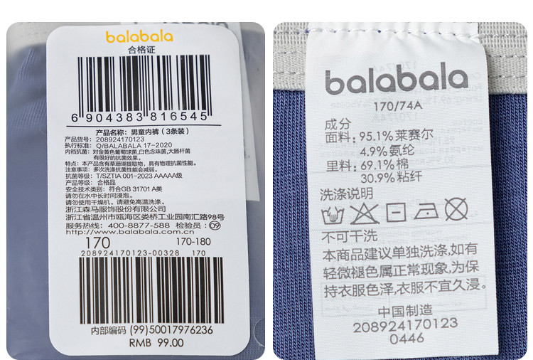 商品名称:男童内裤棉四角短裤中大童平角裤成人爸爸裤简约亲肤透气三条装 383429