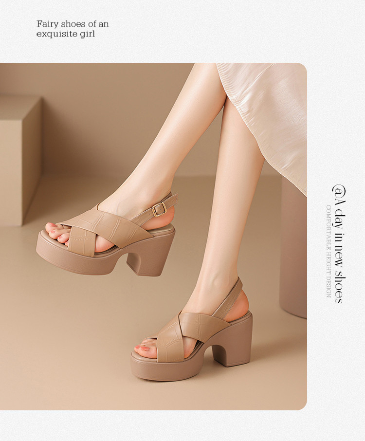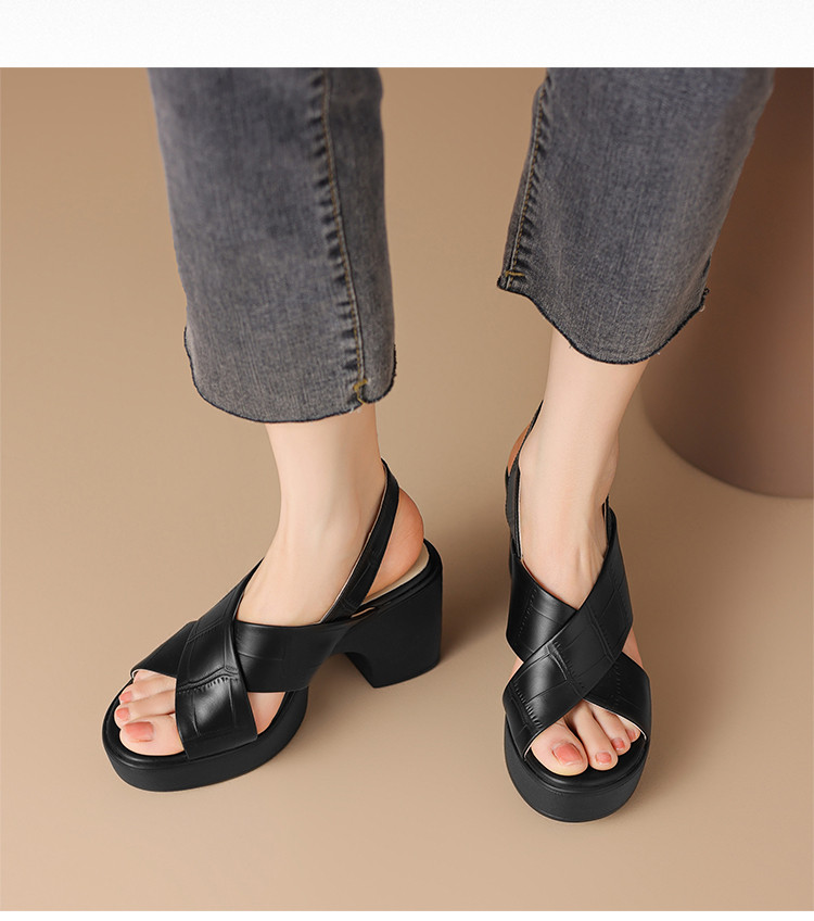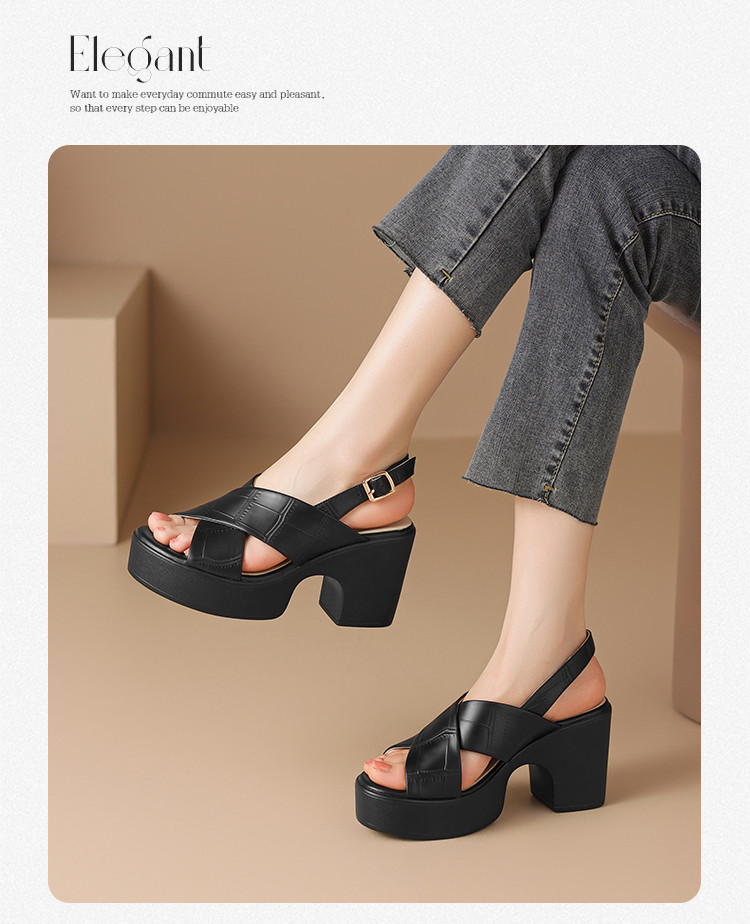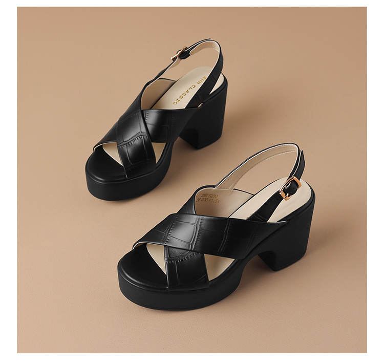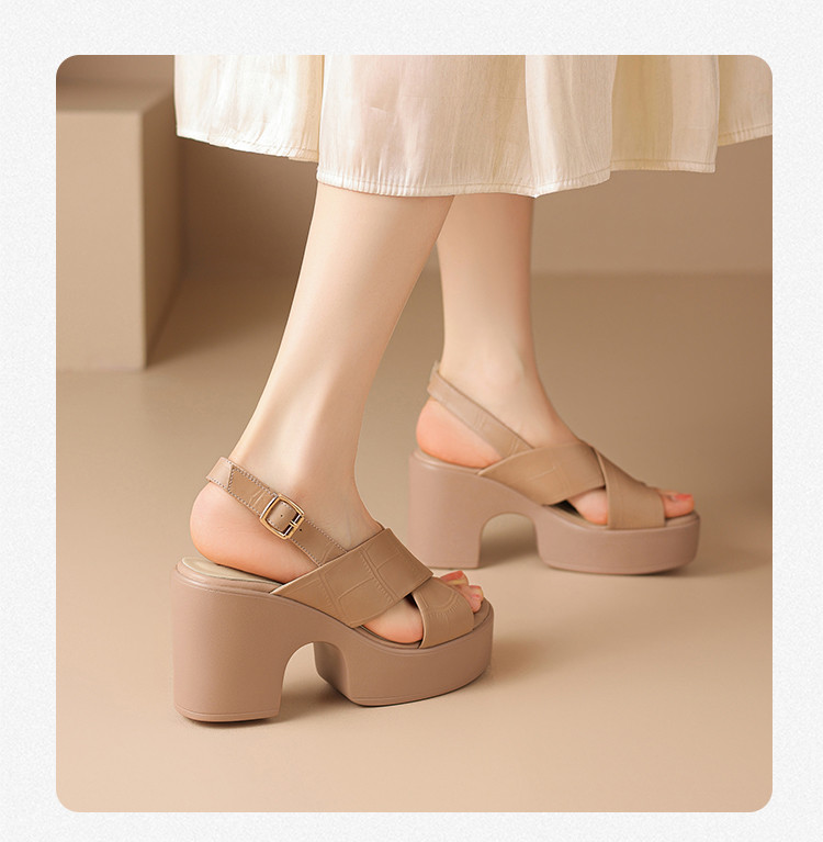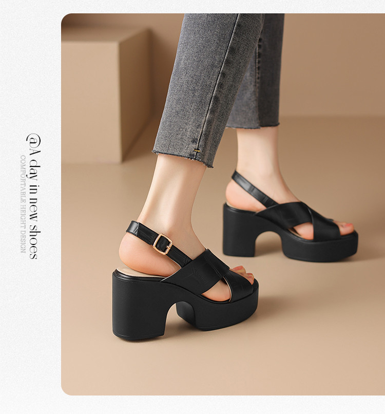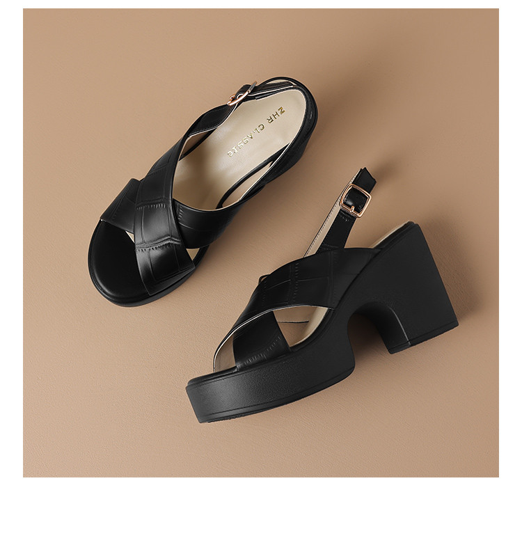 【头层牛皮】时装鞋真皮凉鞋粗跟凉鞋女夏天凉鞋女士高跟鞋女凉鞋 189504