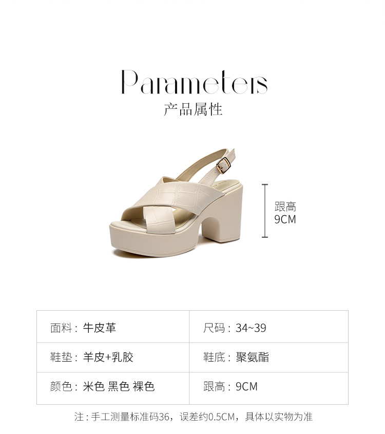 商品名称:【头层牛皮】时装鞋真皮凉鞋粗跟凉鞋女夏天凉鞋女士高跟鞋女凉鞋 189504