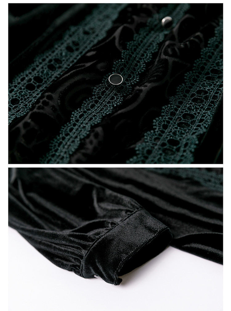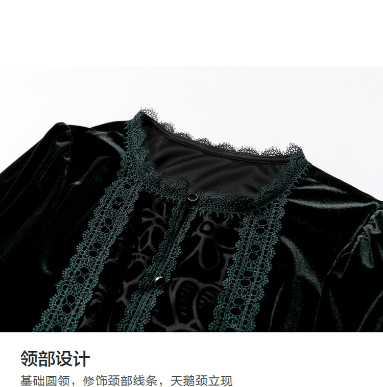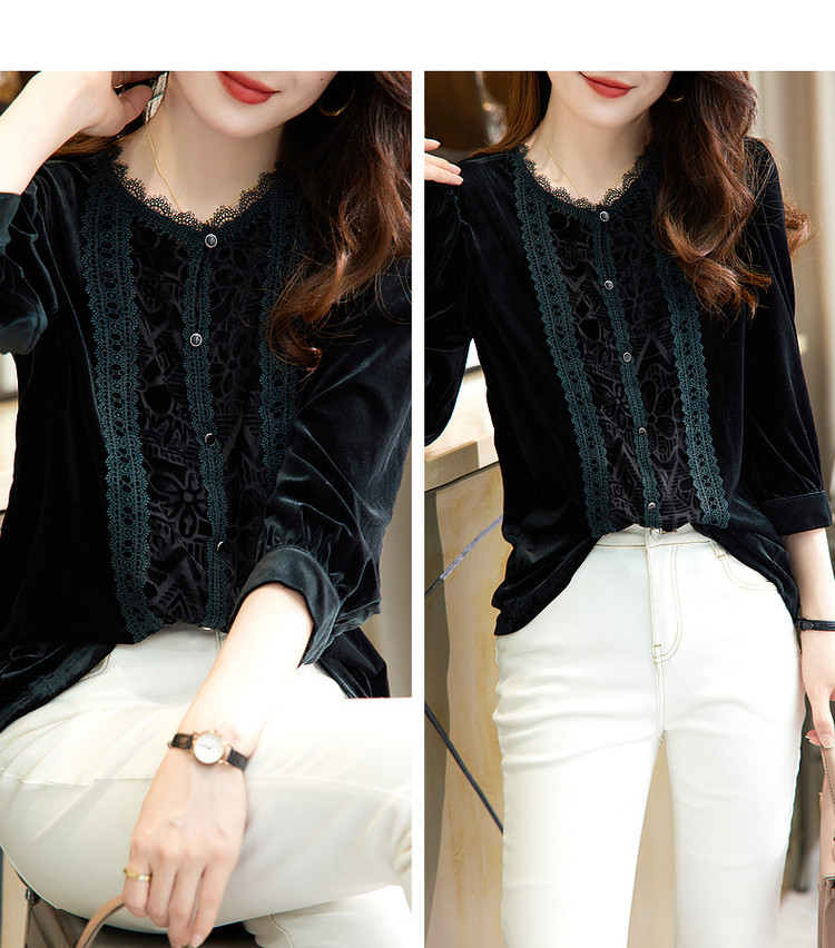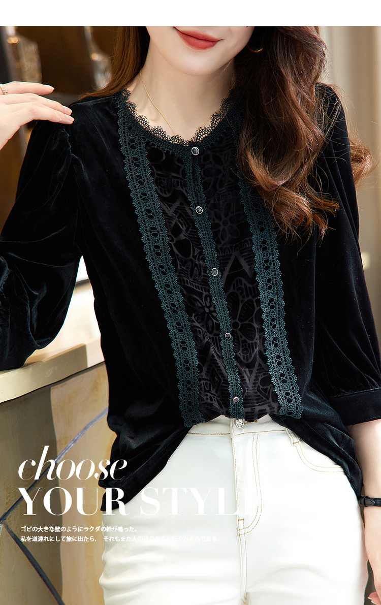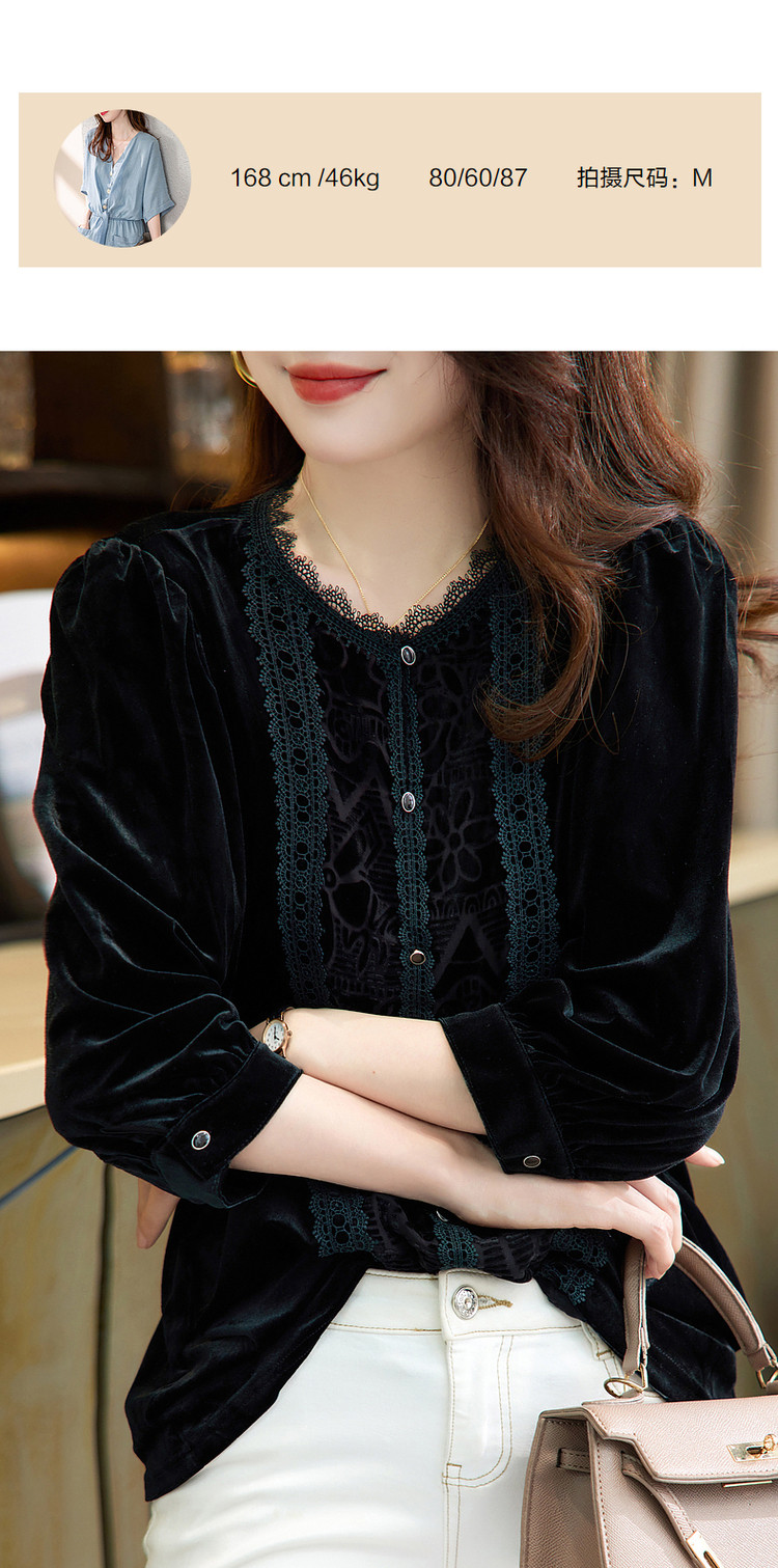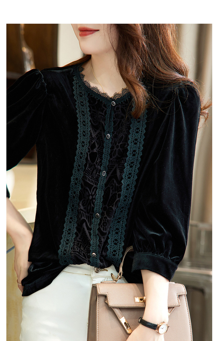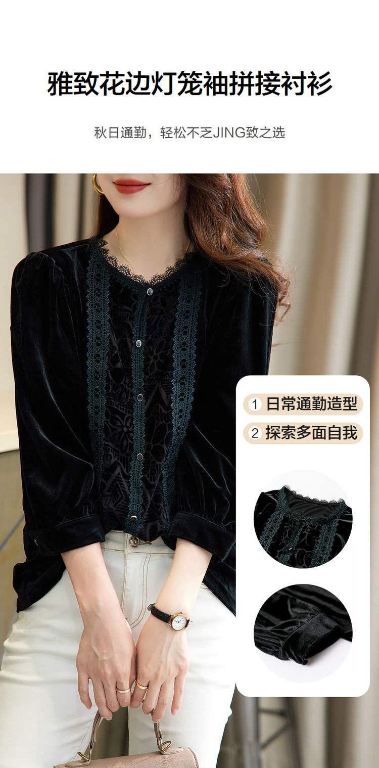 商品名称:【印花衬衣】春秋新圆领宽松灯笼袖花边拼接衬衫女春秋季上衣 020545