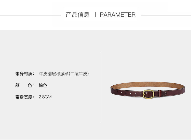 商品名称:甄选复古针扣女士皮带二层牛皮女腰带裤带 632576