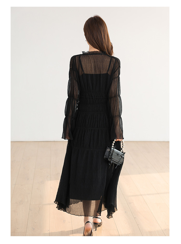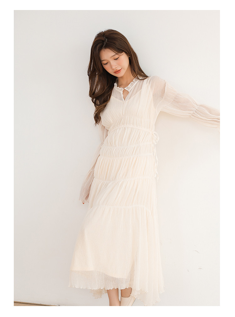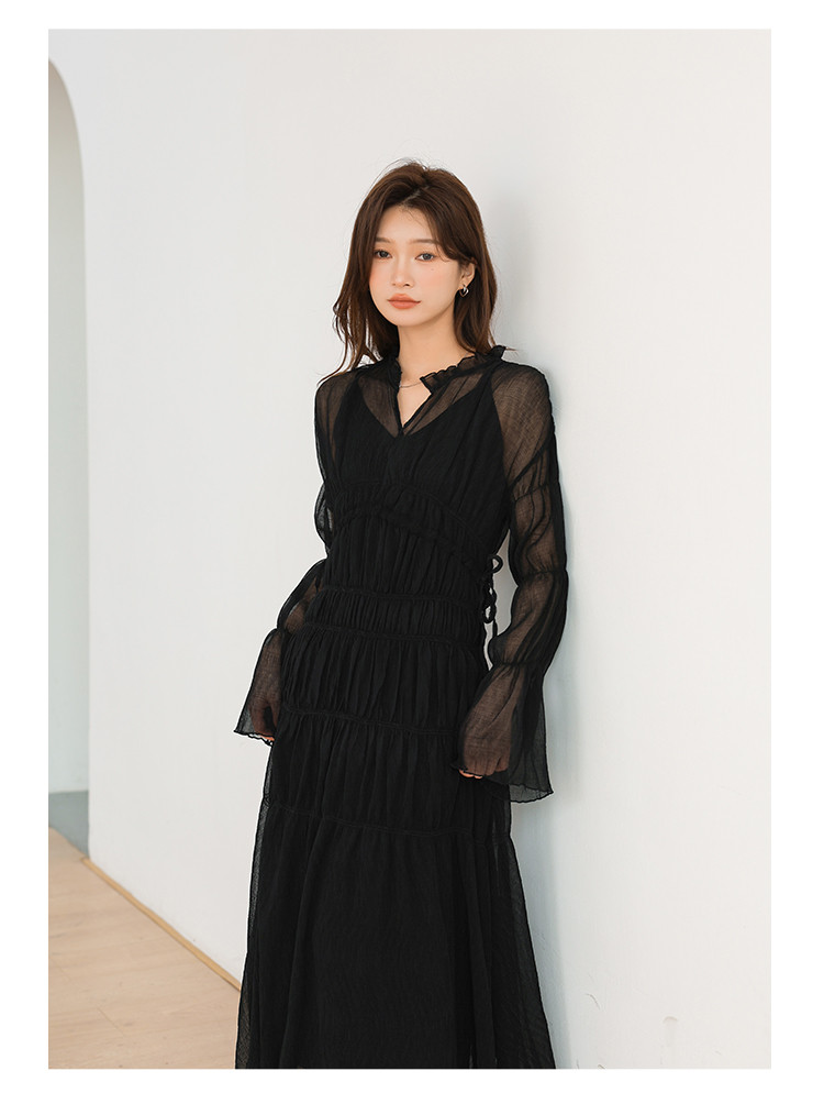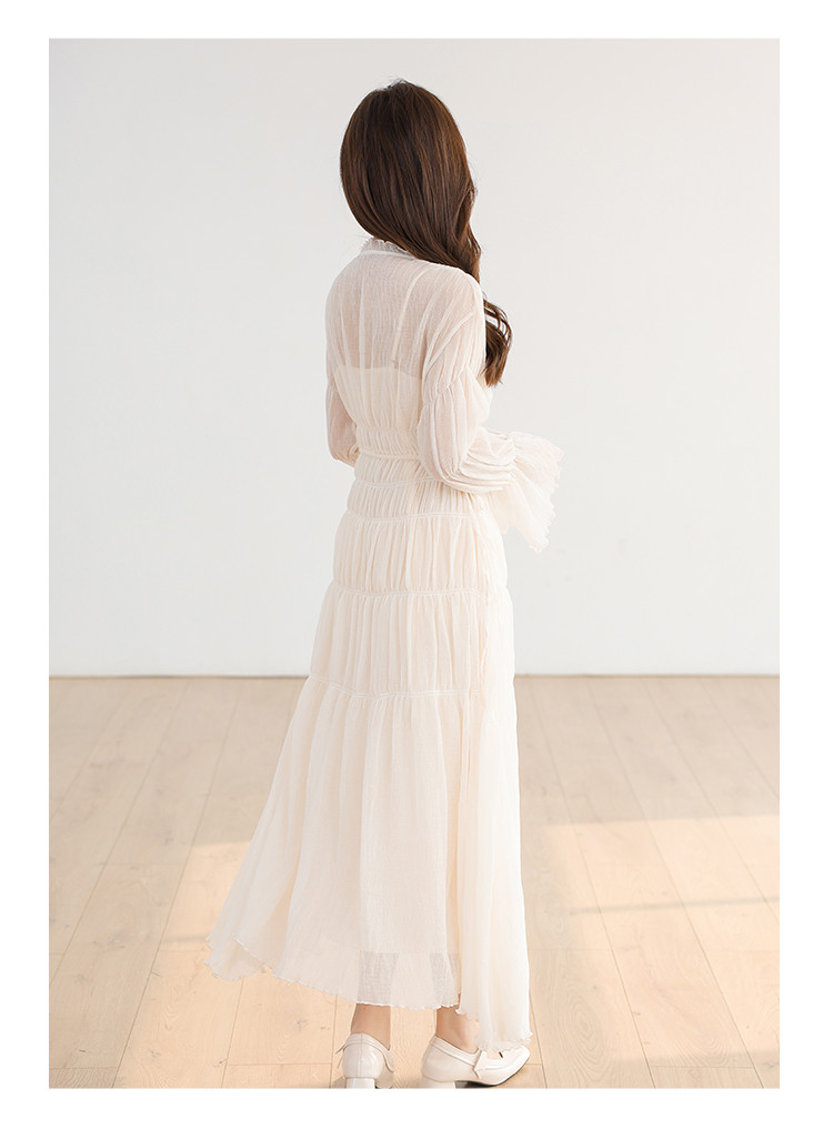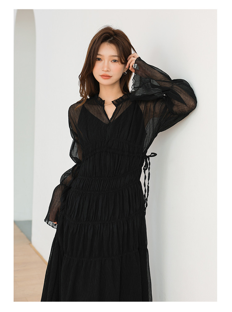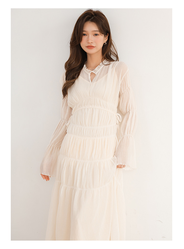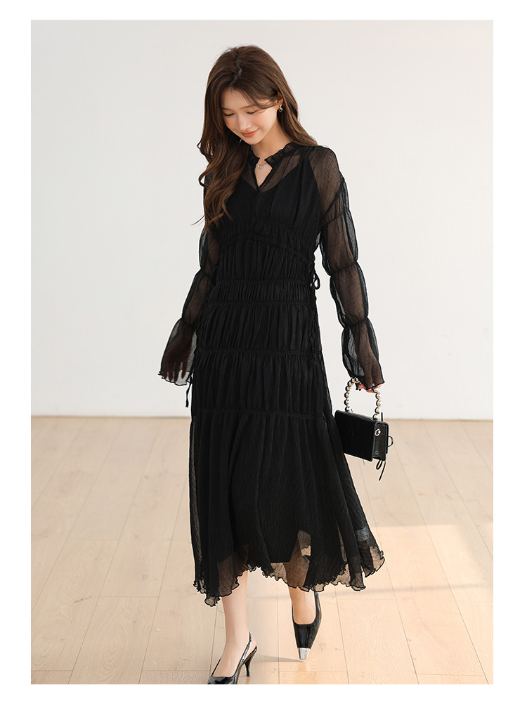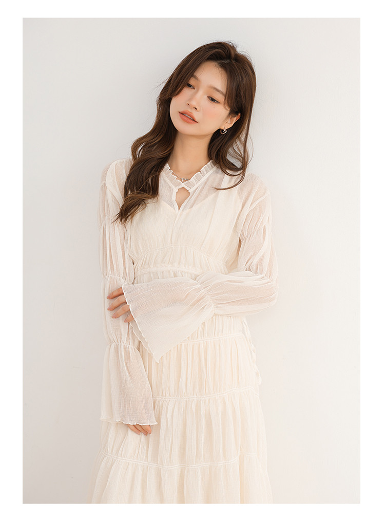 温柔风法式V领长袖雪纺连衣裙女设计感小众气质长裙女 509699