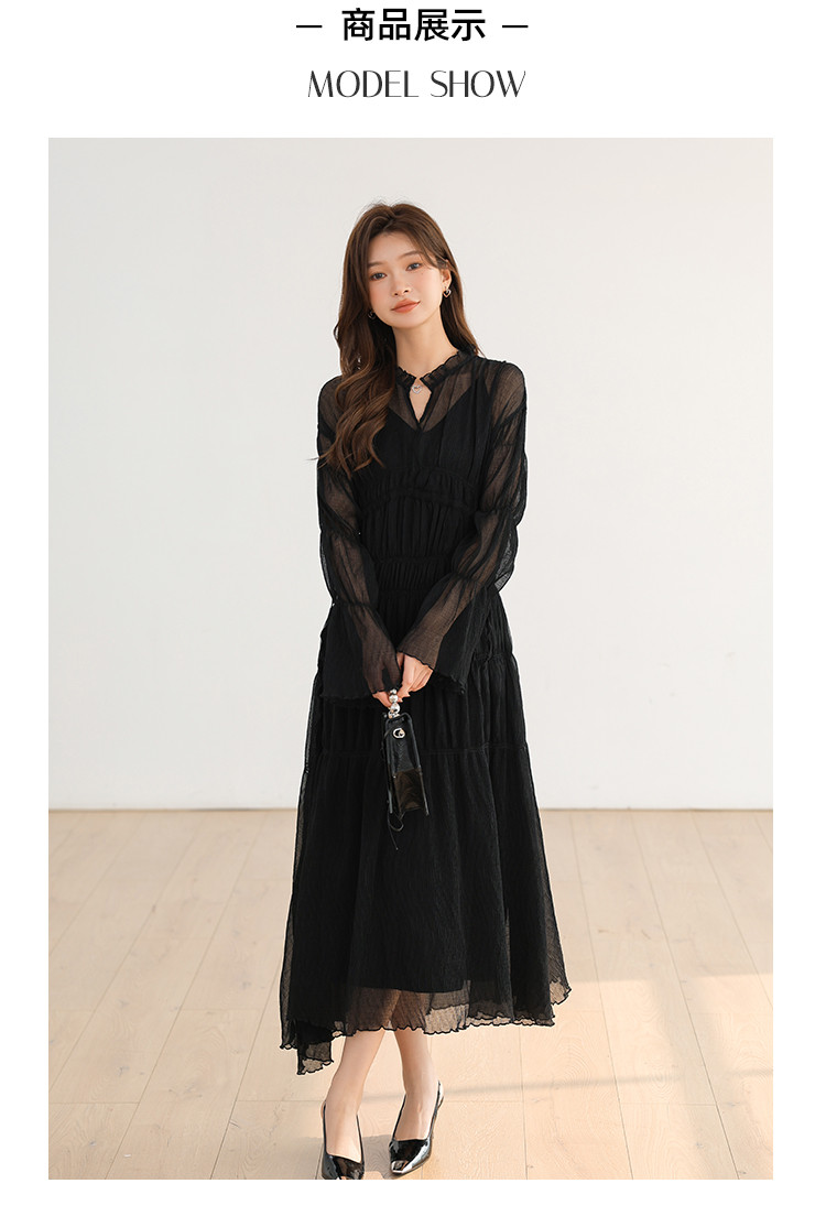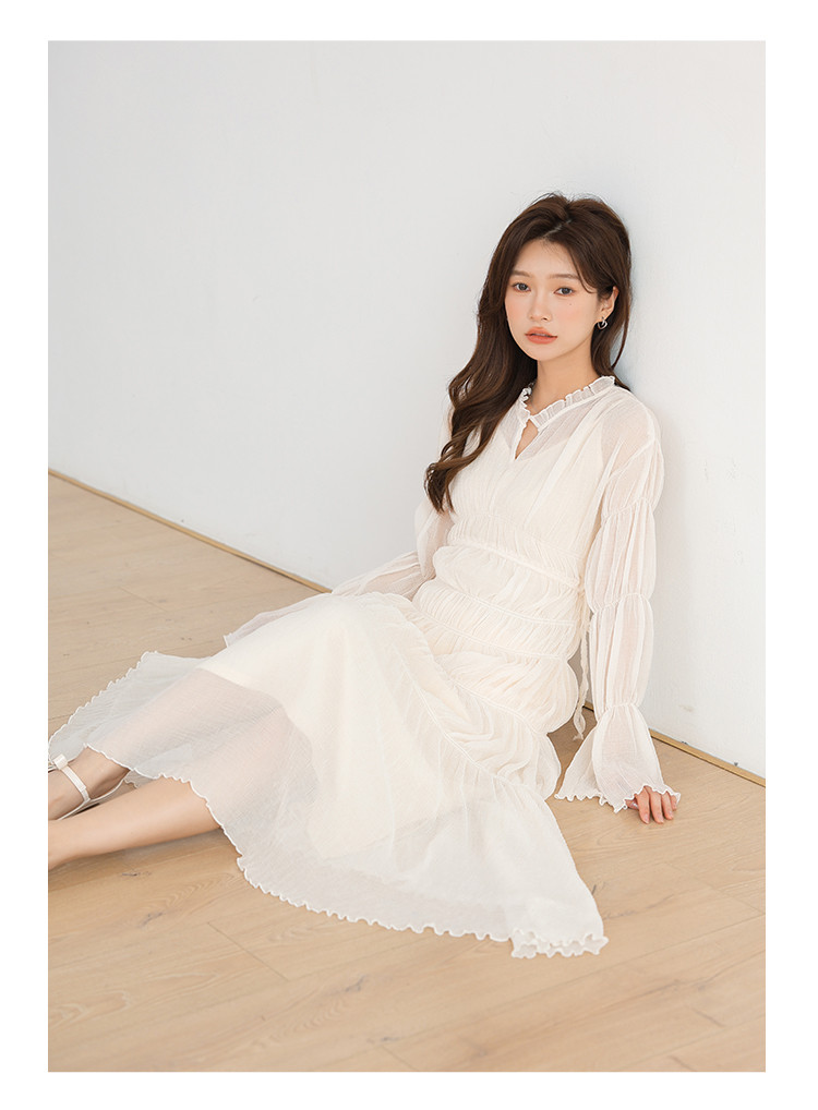 商品名称:温柔风法式V领长袖雪纺连衣裙女设计感小众气质长裙女 509699