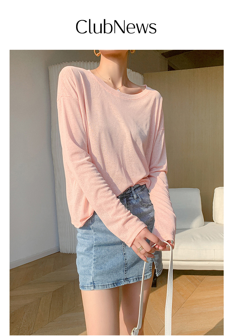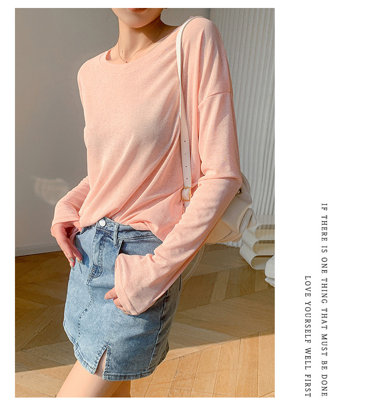 圆领薄款冰丝长袖针织t恤女空调衫气质针织上衣 537987