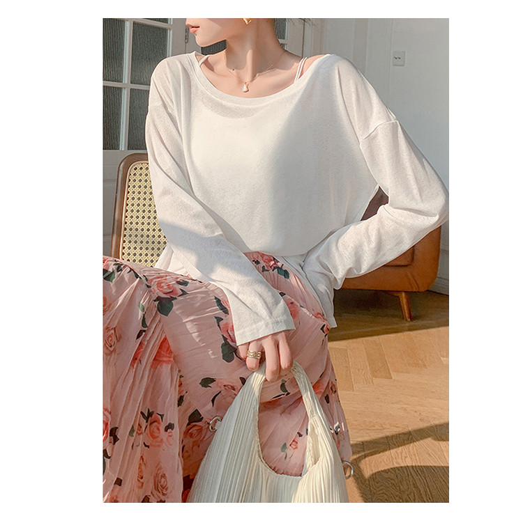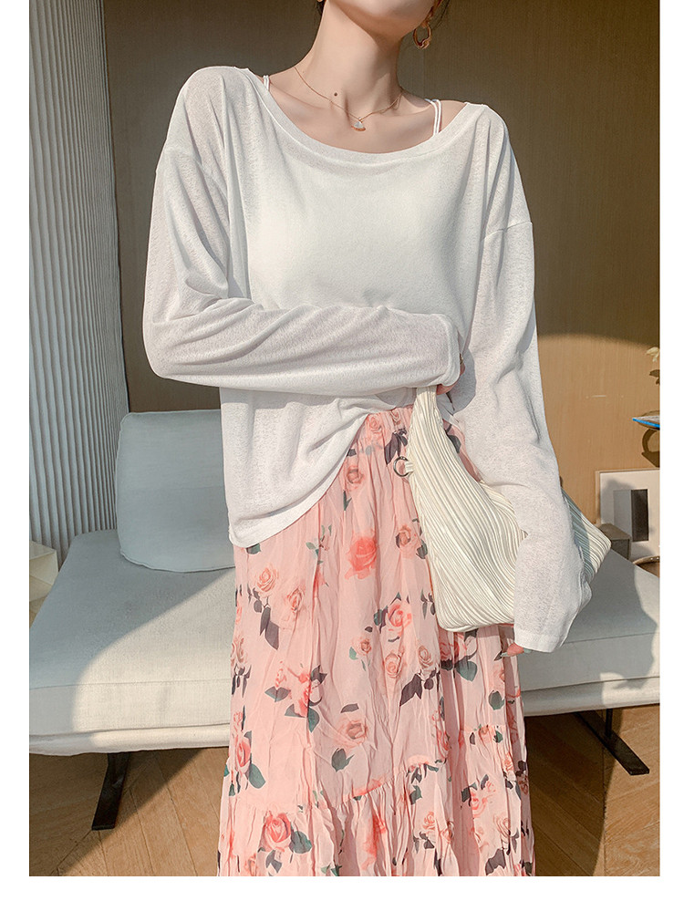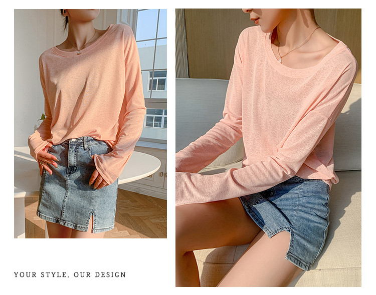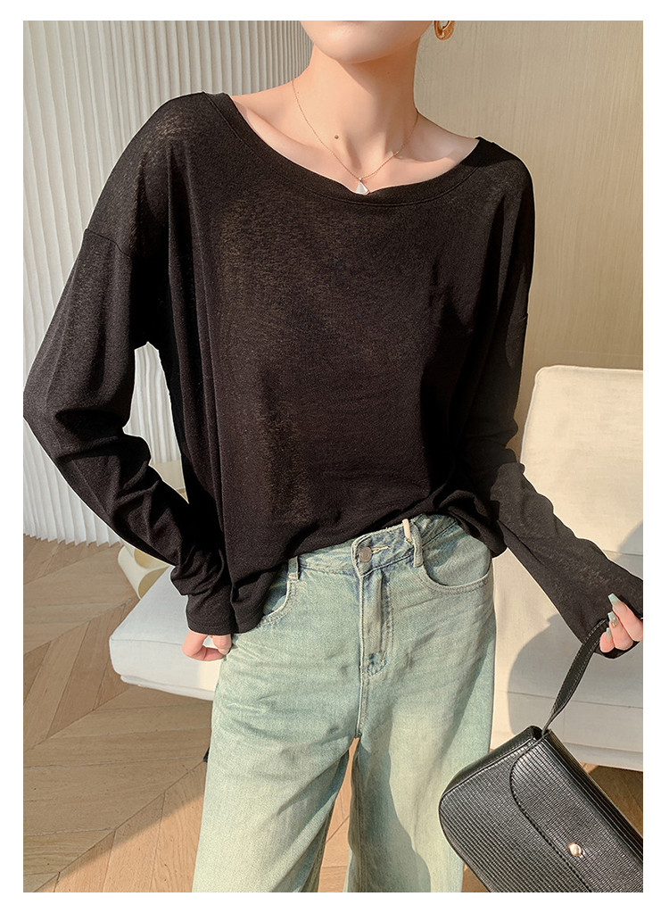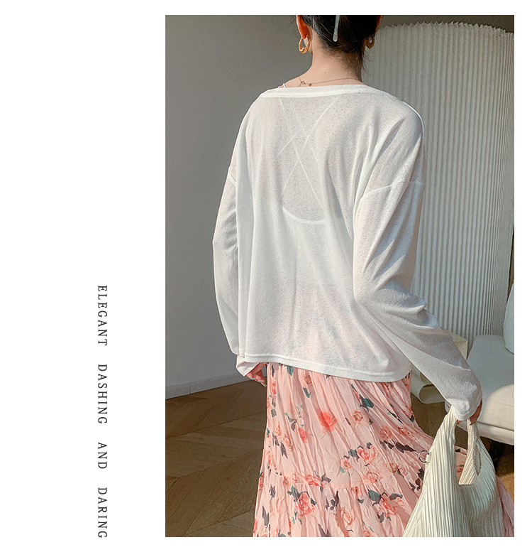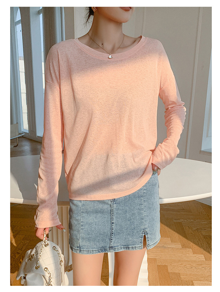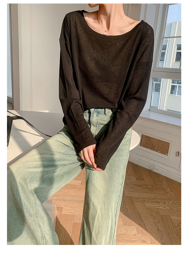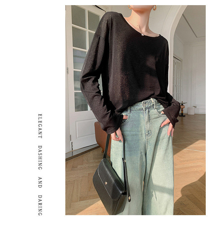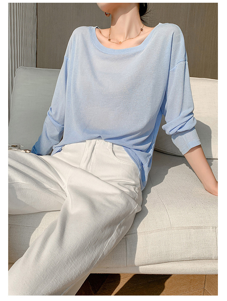 商品名称:圆领薄款冰丝长袖针织t恤女空调衫气质针织上衣 537987
