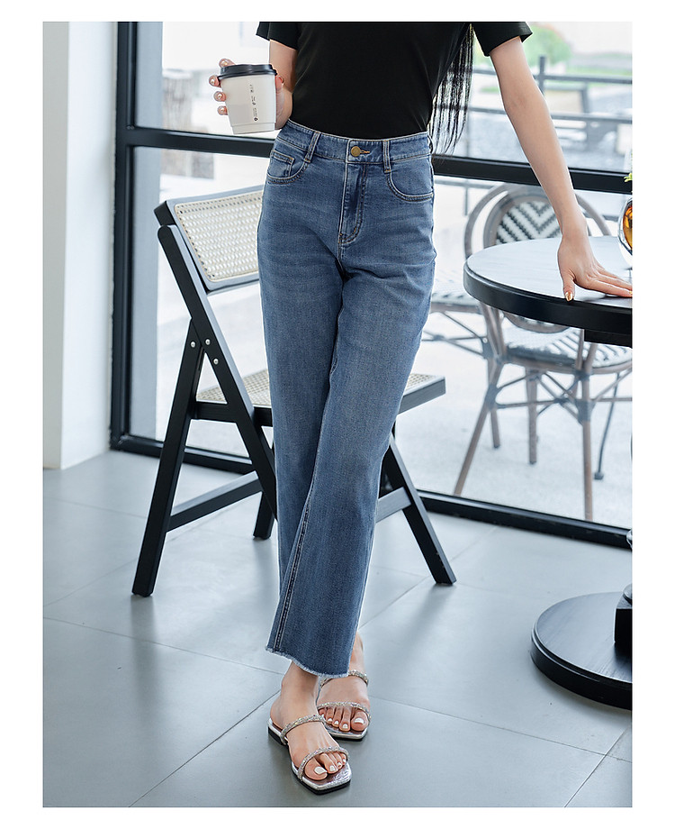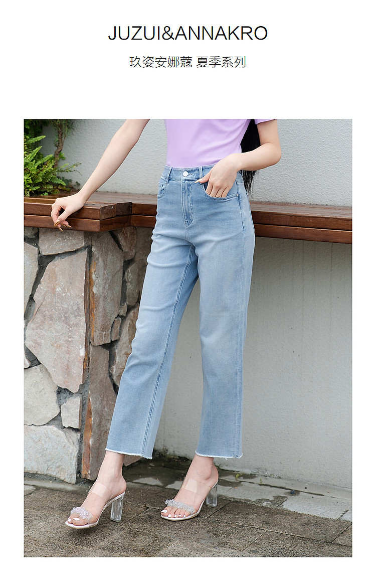 玖姿旗下安娜蔻系列复古休闲老钱风基础款直筒牛仔裤女装夏季 807820