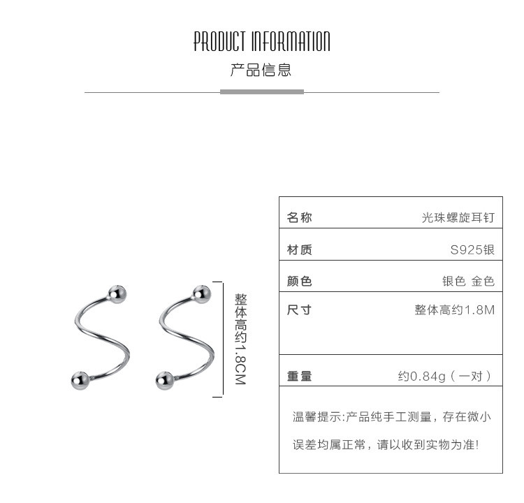 商品名称:【洗澡不用摘耳环】925银个性气质线条螺旋形时尚百搭耳饰 452929