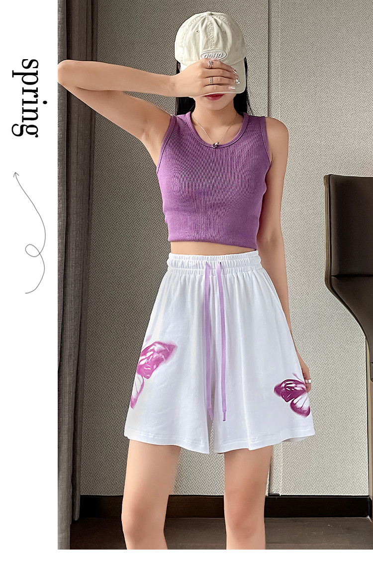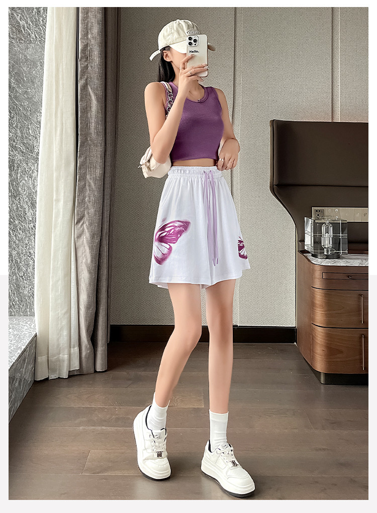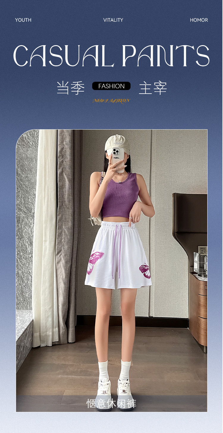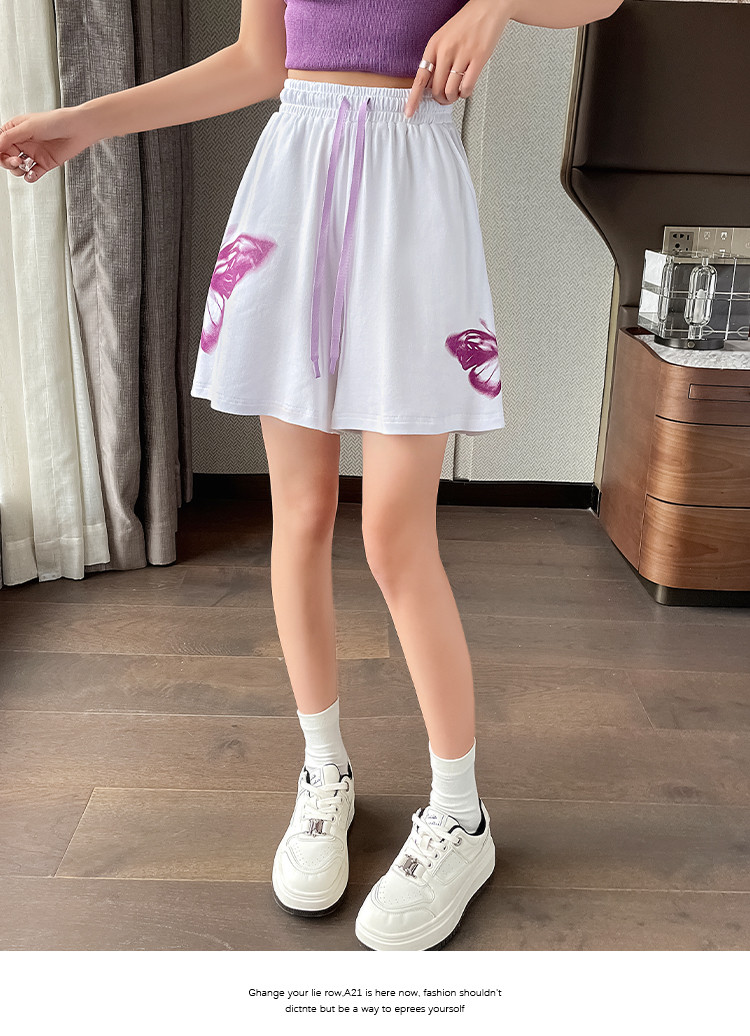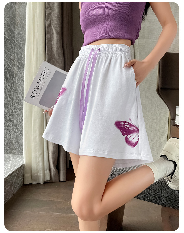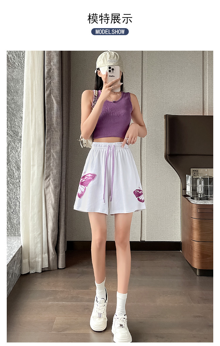 商品名称:【纯棉柔软】夏季休闲短裤女宽松百搭休闲运动裤印花五分裤阔脚裤 313217