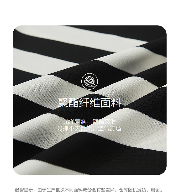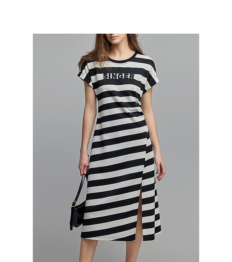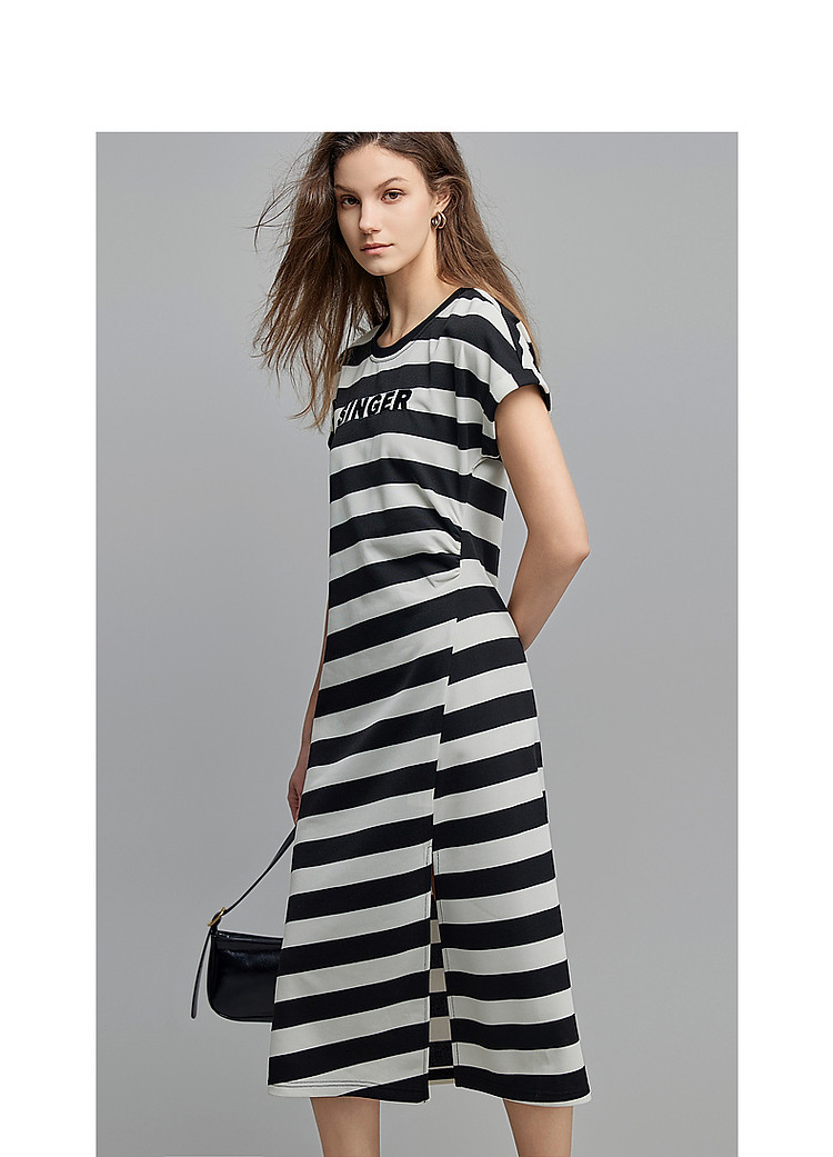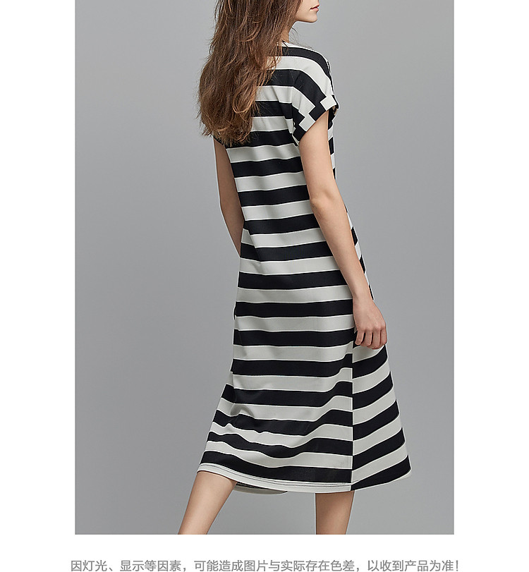 商品名称:【条纹音乐会】夏轻熟风懒人免搭圆领字母绣花设计感褶裥连衣裙 537025