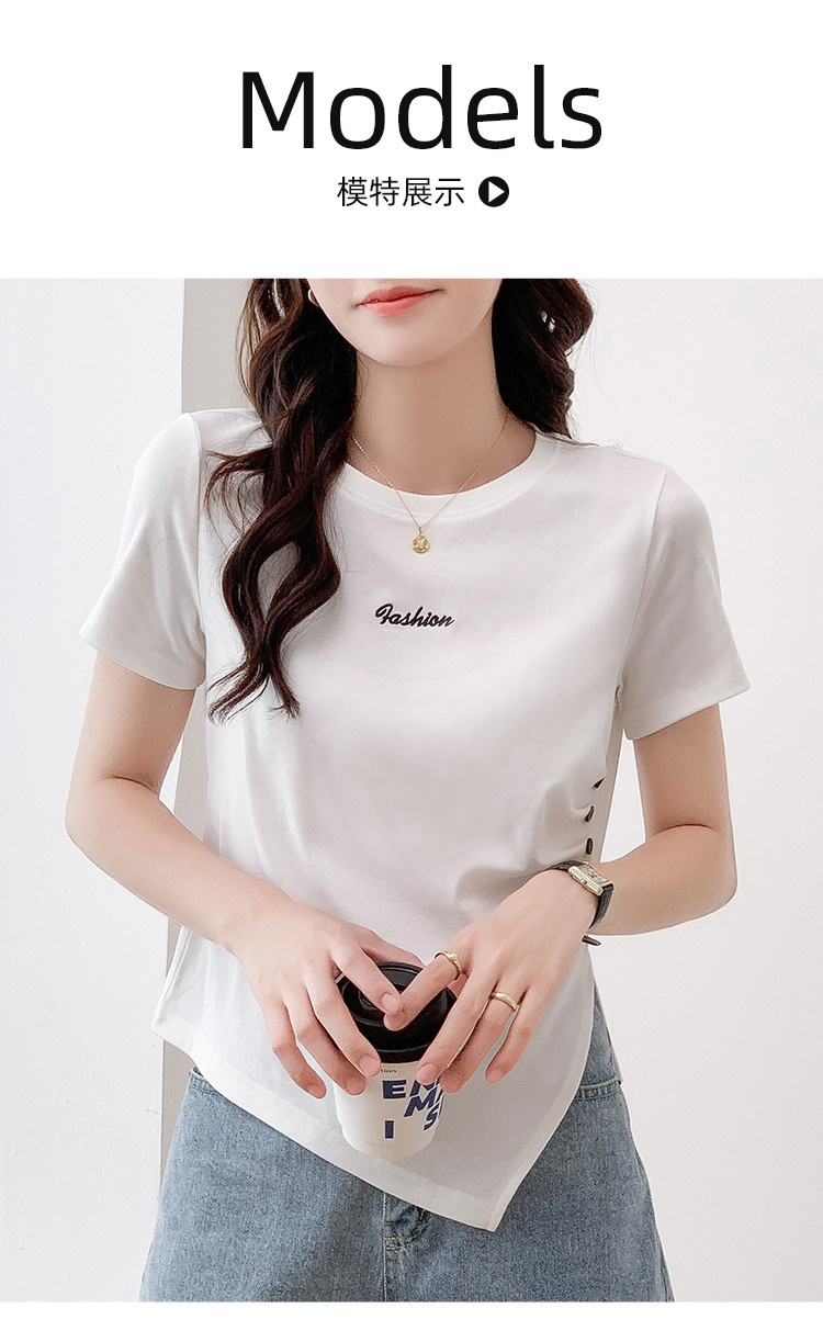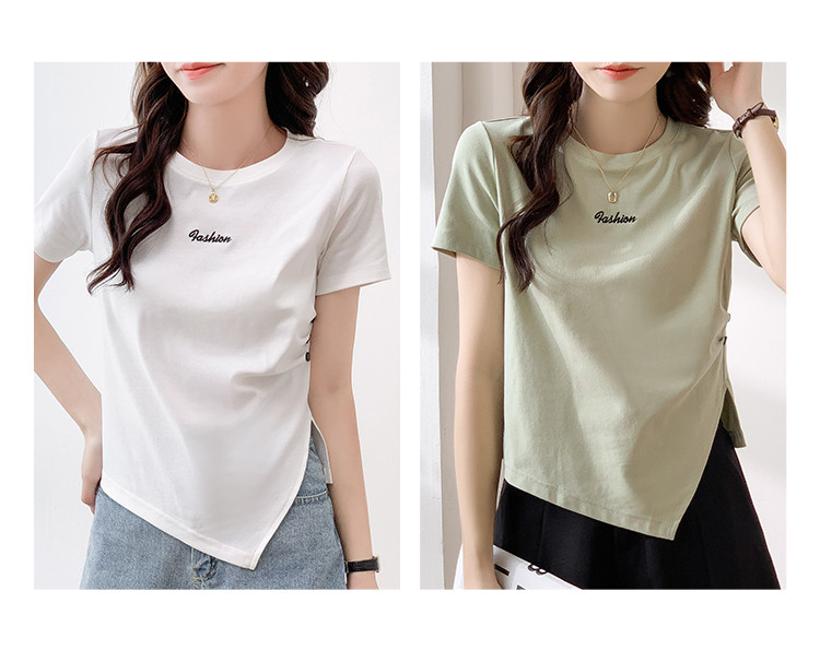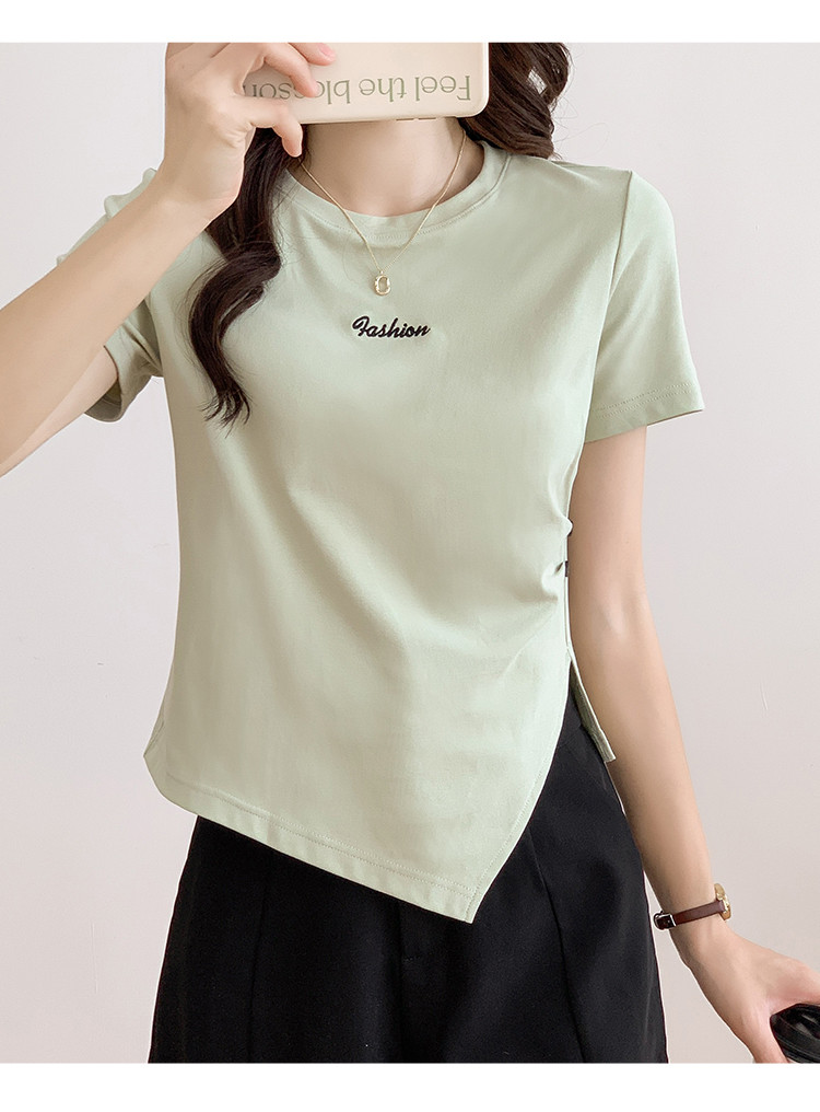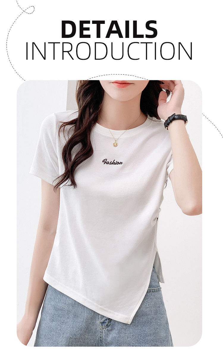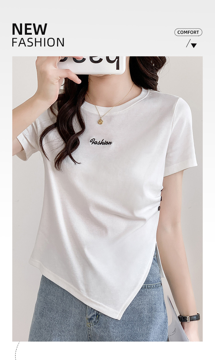 商品名称:不规则压褶休闲短袖T恤夏季设计感绣花短款上衣女ins 087832