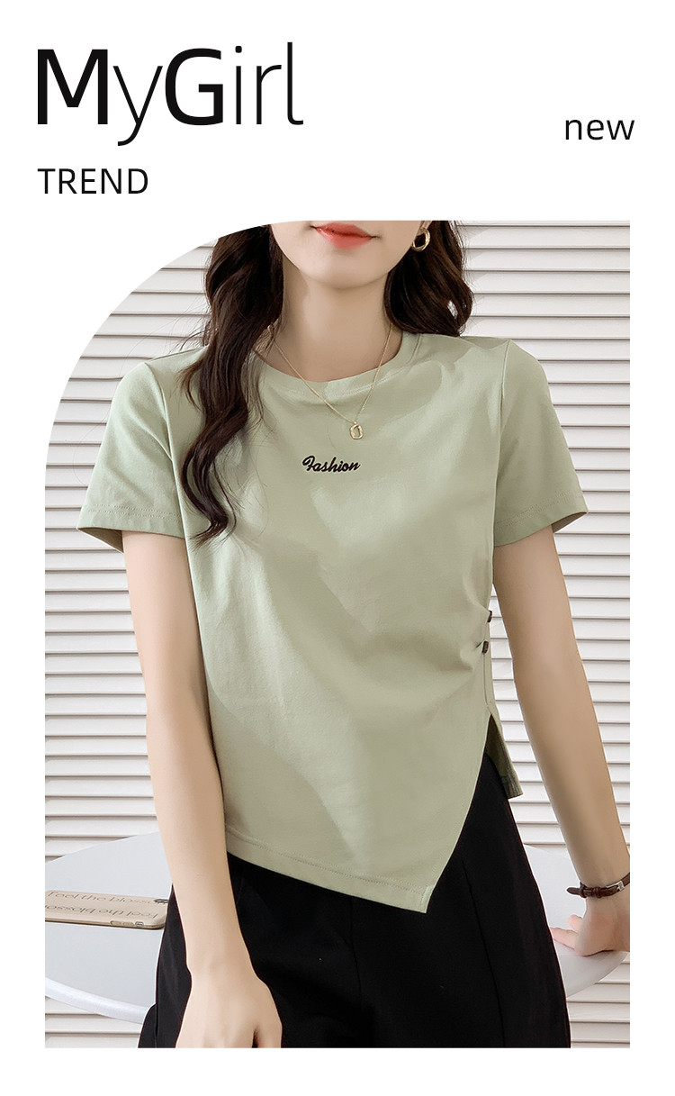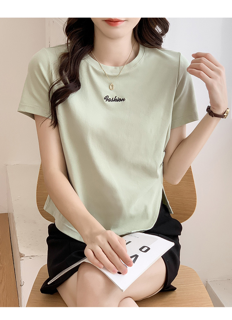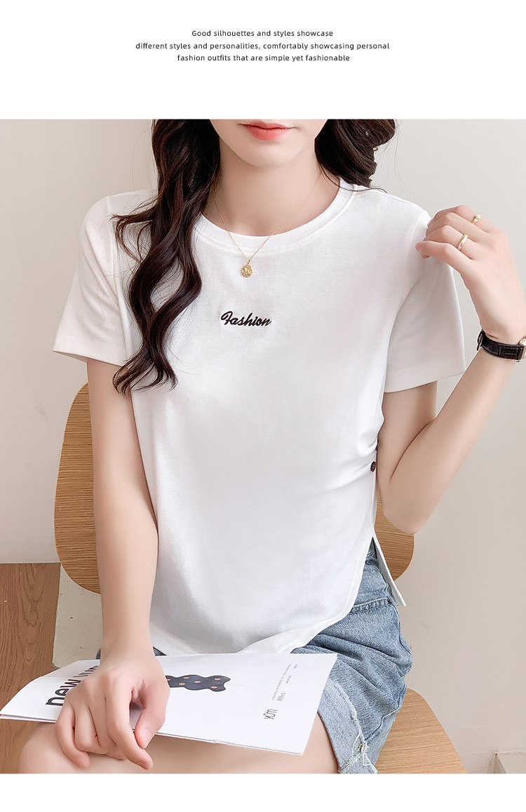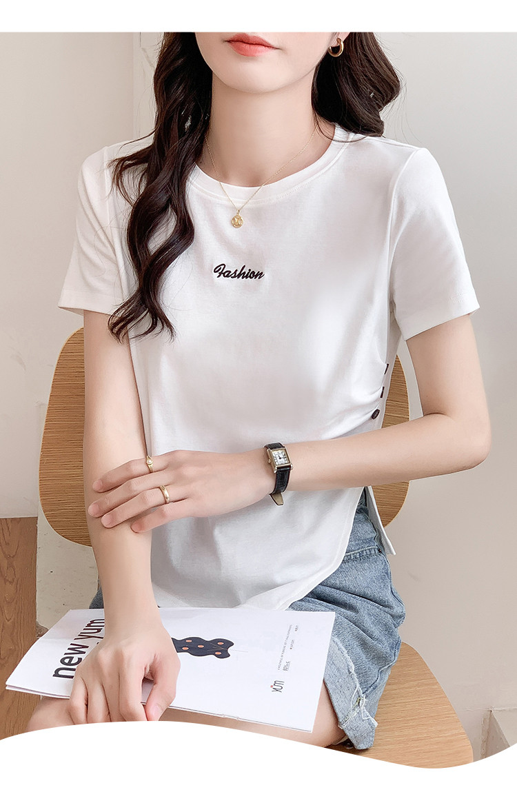 商品名称:不规则压褶休闲短袖T恤夏季设计感绣花短款上衣女ins 087832