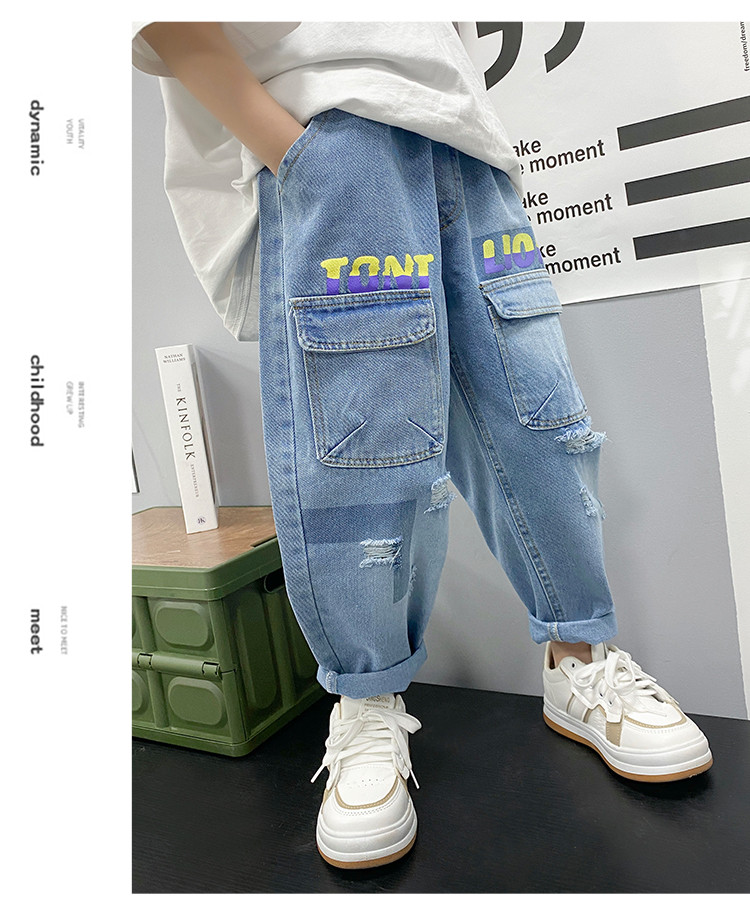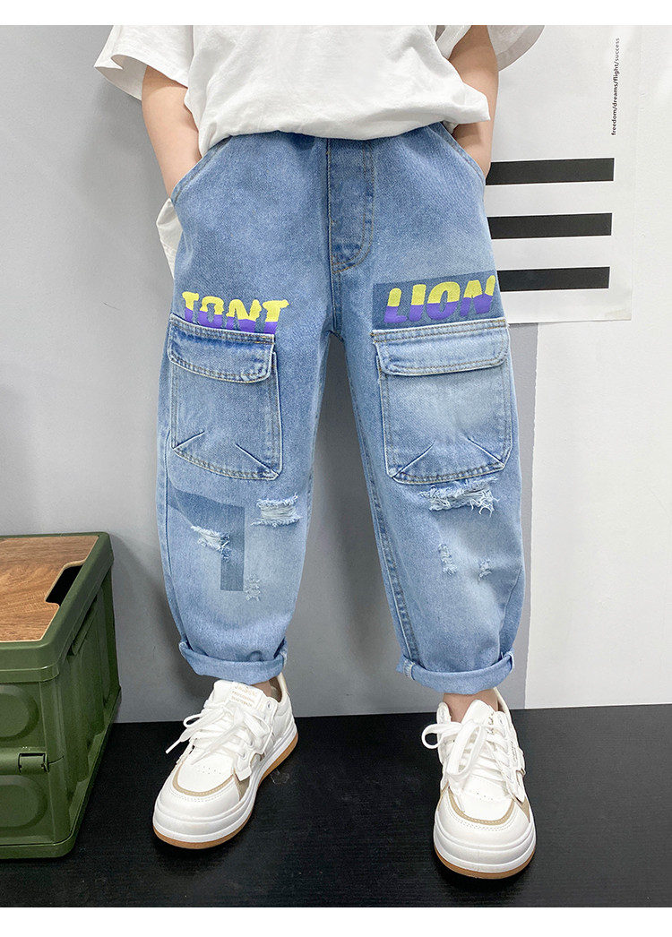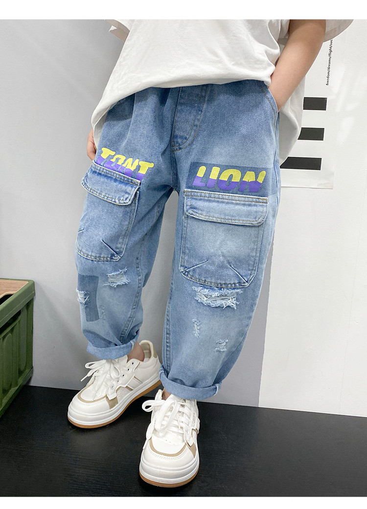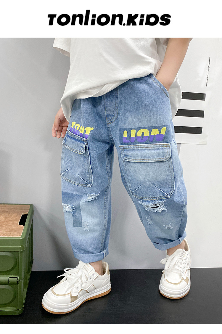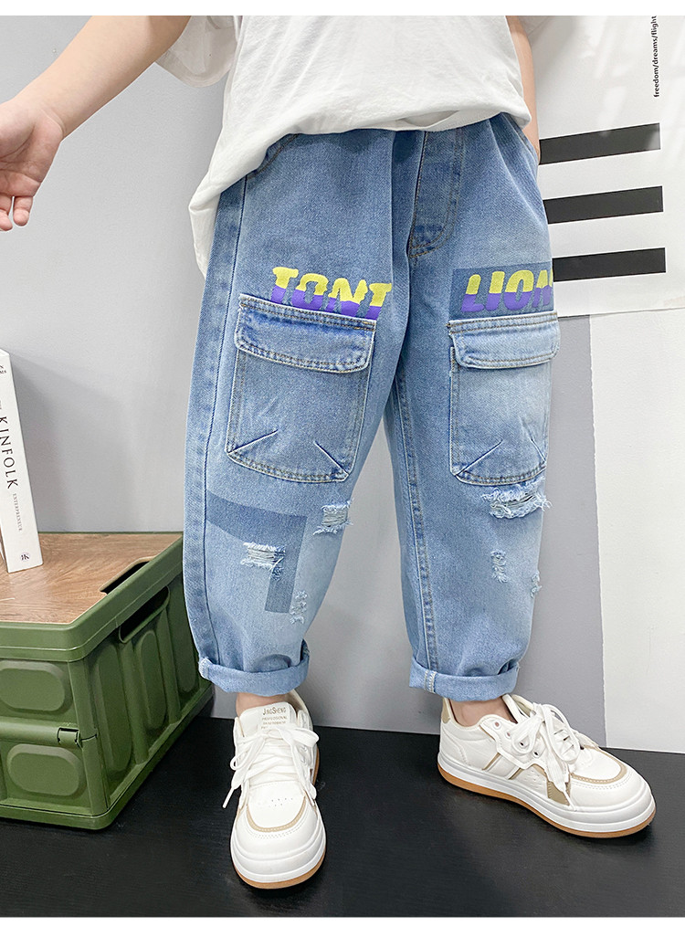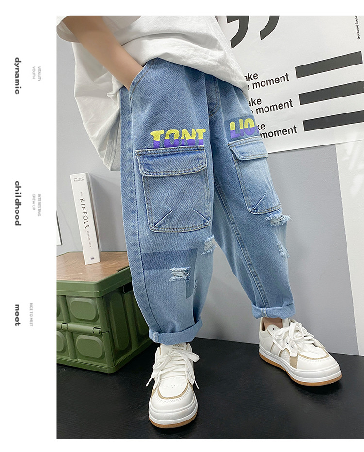 男童中大童裤子时尚春款儿童洋气破洞直筒牛仔裤春季休闲长裤潮 175055