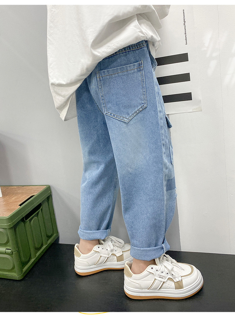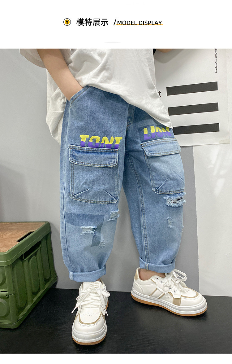 商品名称:男童中大童裤子时尚春款儿童洋气破洞直筒牛仔裤春季休闲长裤潮 175055