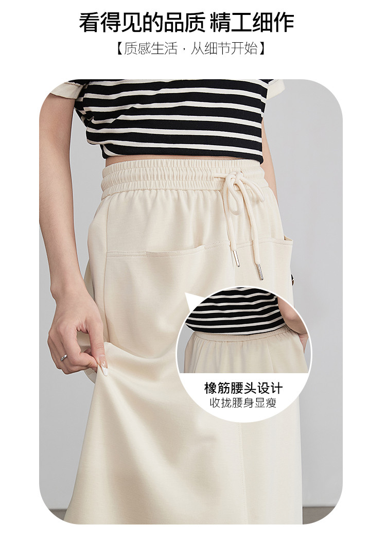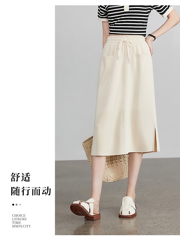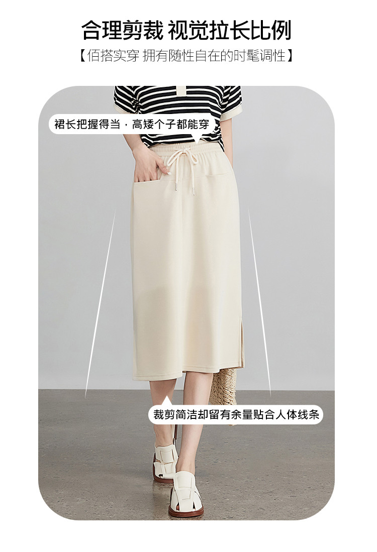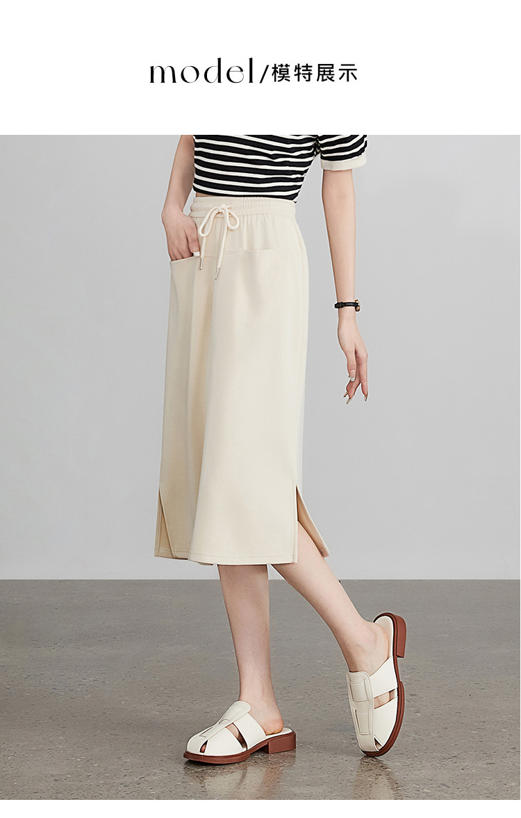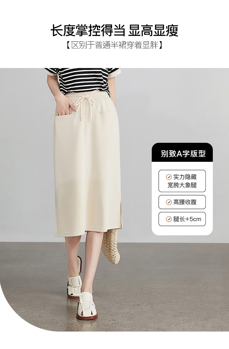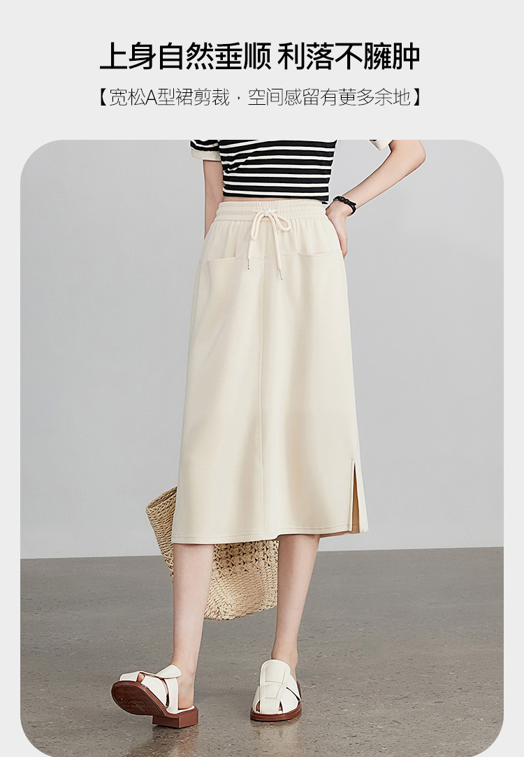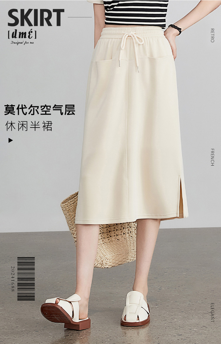 商品名称:【超柔亲肤】莫代尔空气层女式半身裙A字小开叉设计气质中长裙 310721