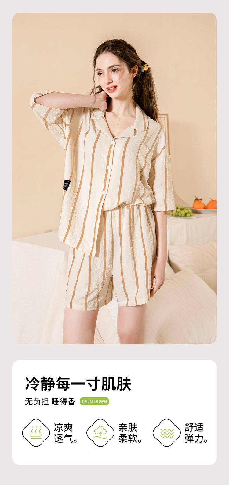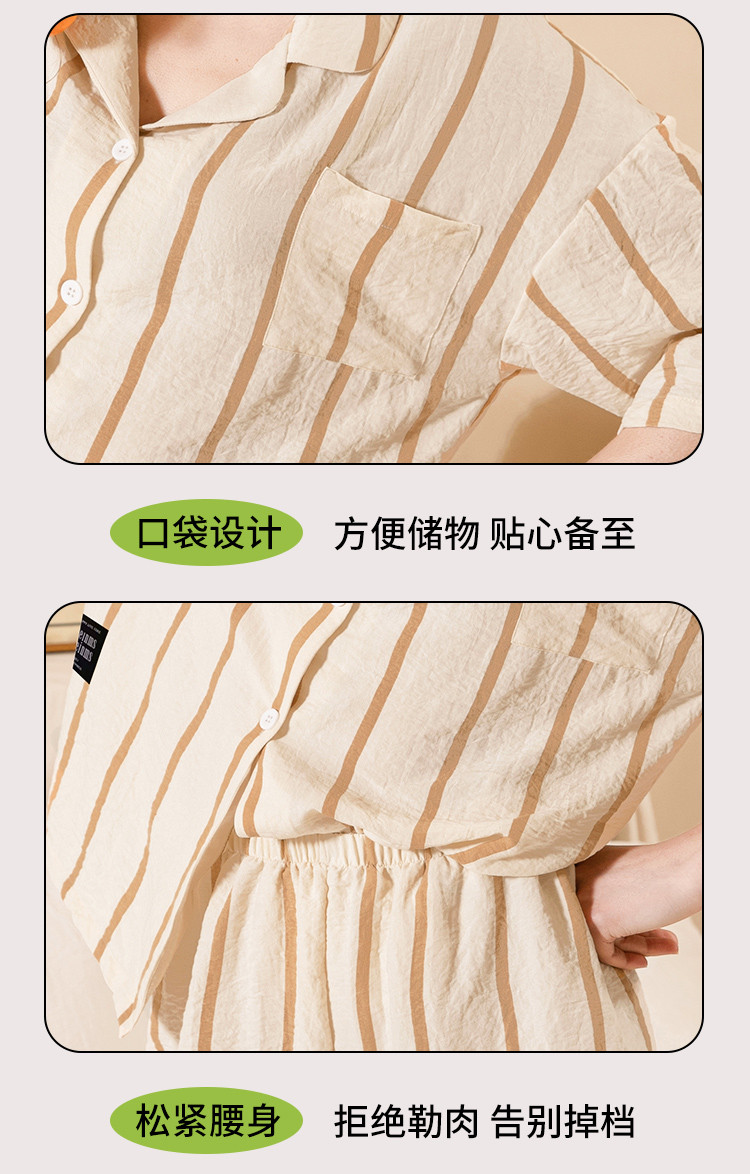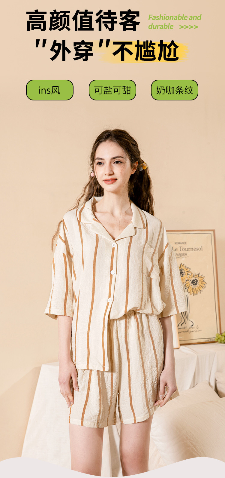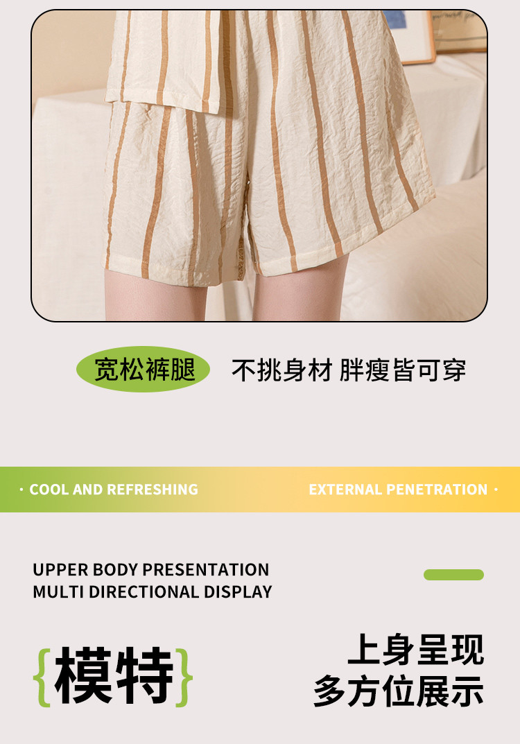 商品名称:【时尚条纹】简约短袖短裤睡衣女夏季薄款可外穿家居服套装高级感 859083