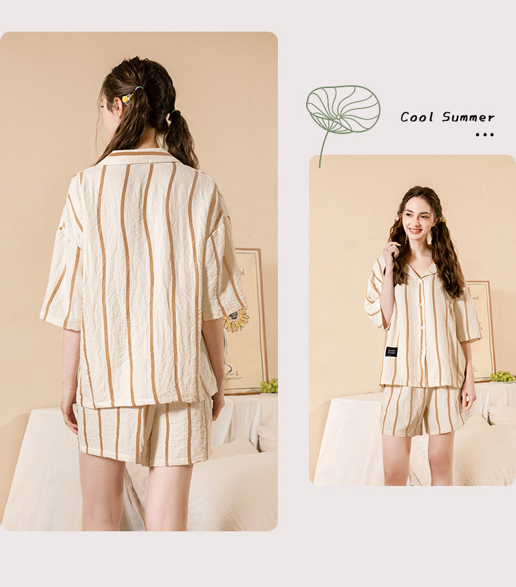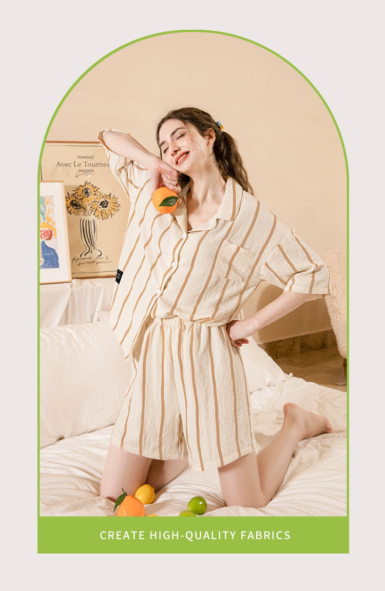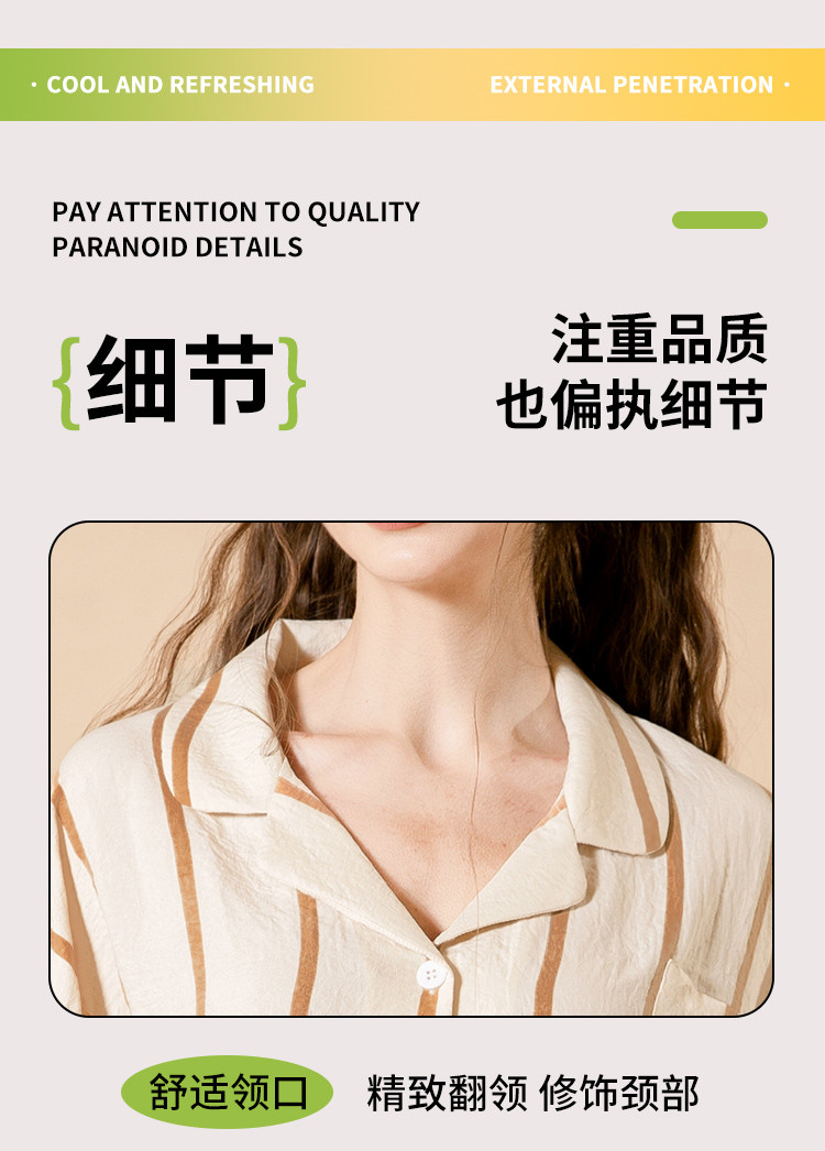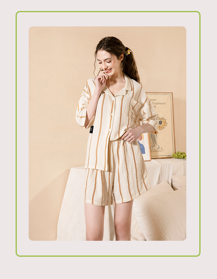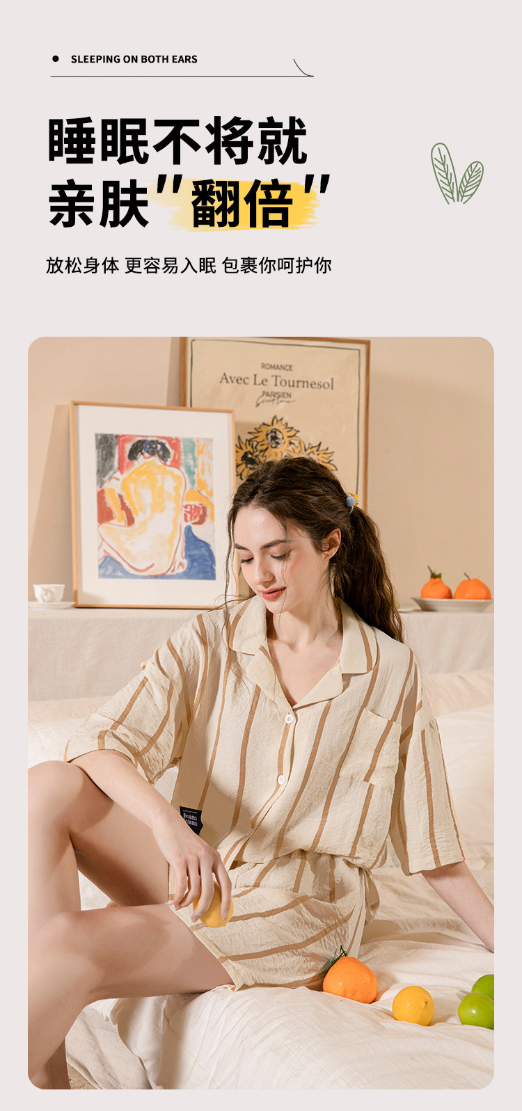 商品名称:【时尚条纹】简约短袖短裤睡衣女夏季薄款可外穿家居服套装高级感 859083