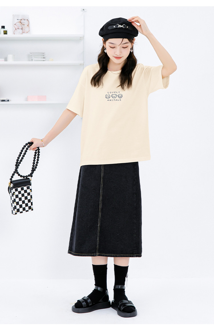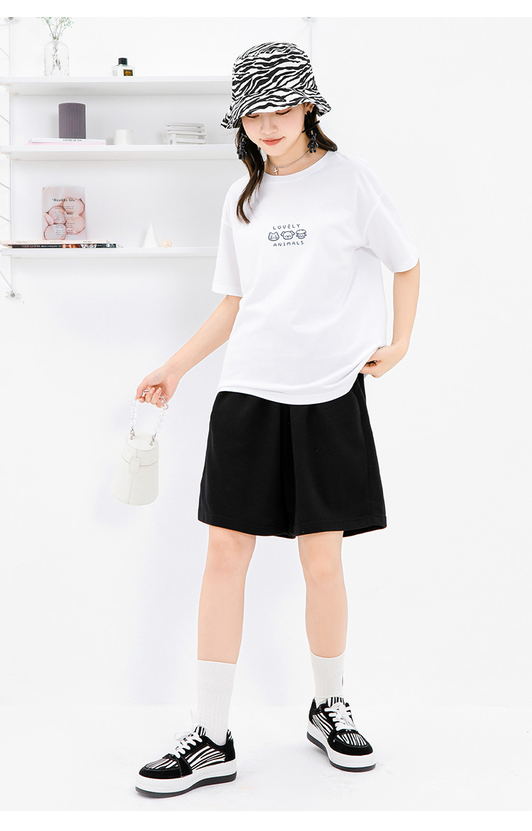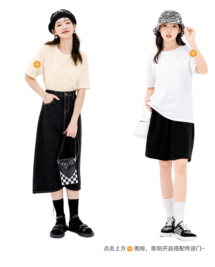 【女装】夏季女式纯棉圆领宽松T百搭时尚潮流小清新短袖女 534867