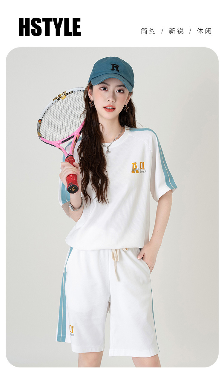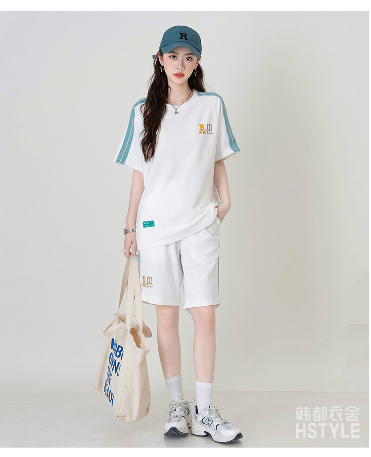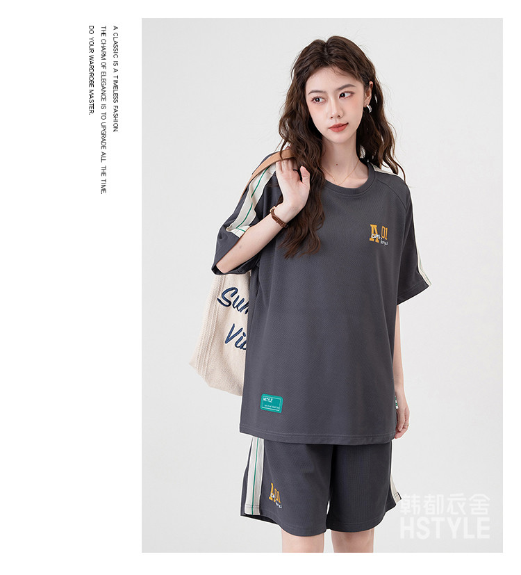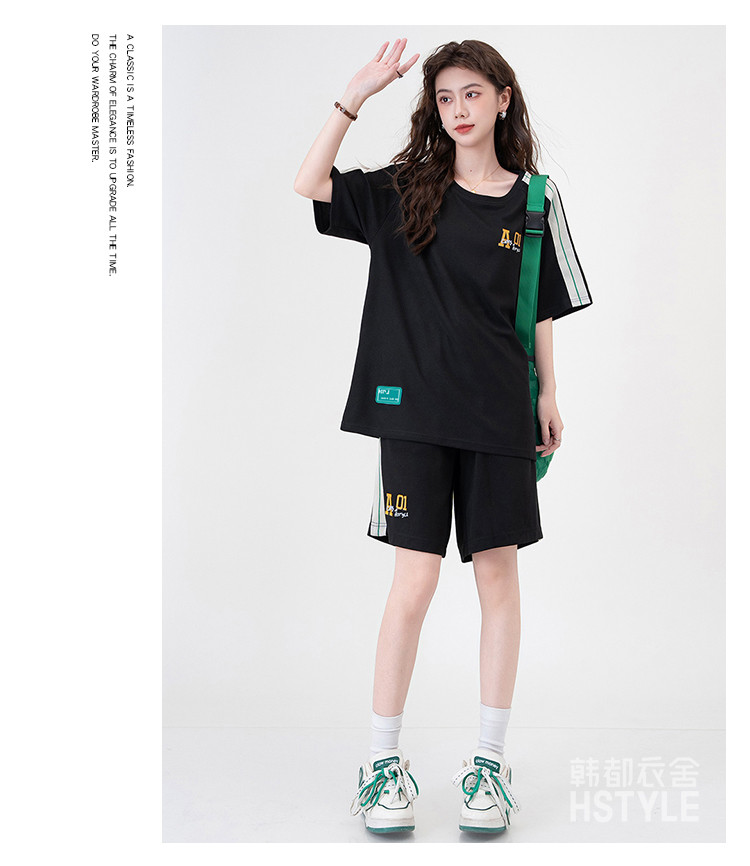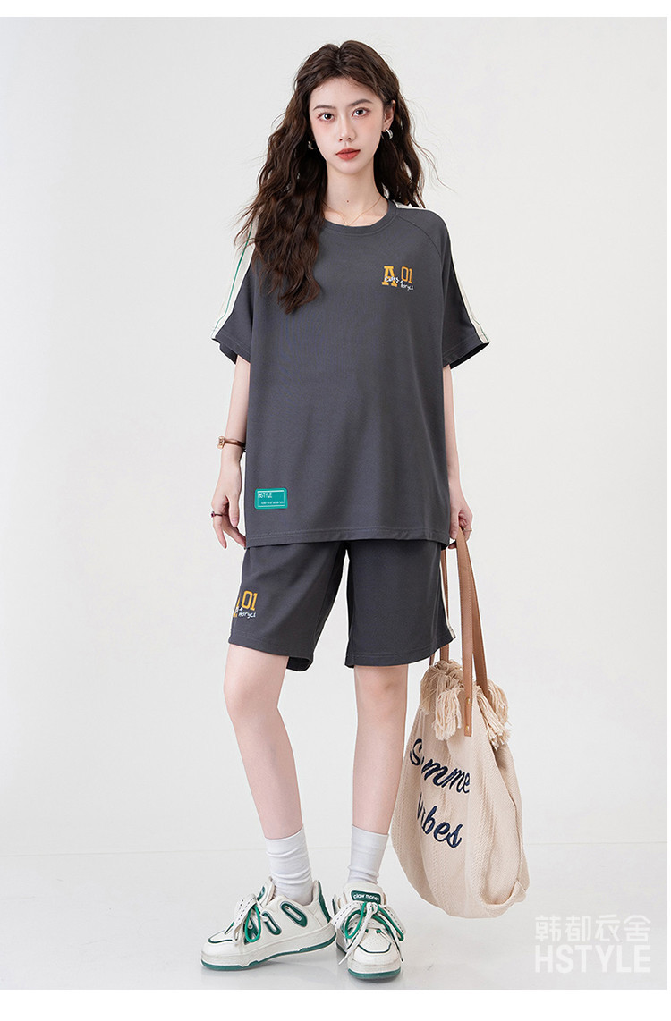 商品名称:休闲运动套装舒适女夏宽松半袖t恤+五分短裤两件套女 771979