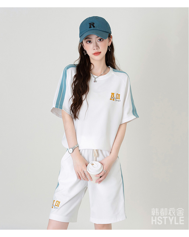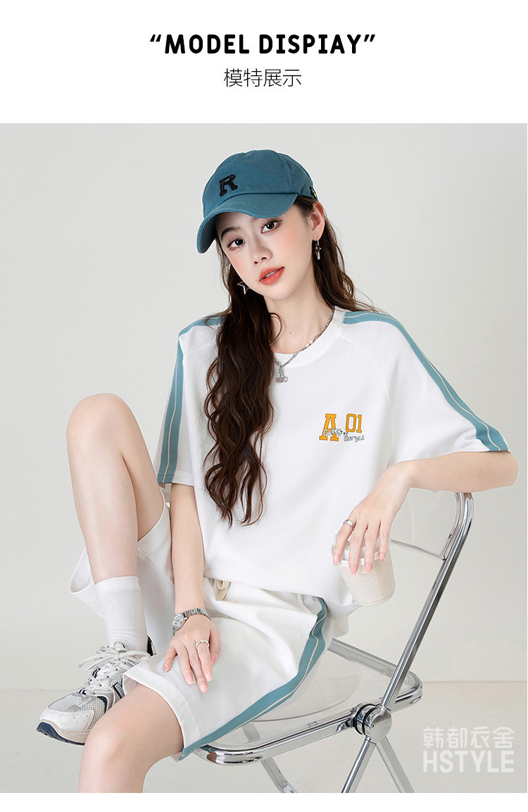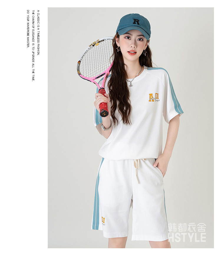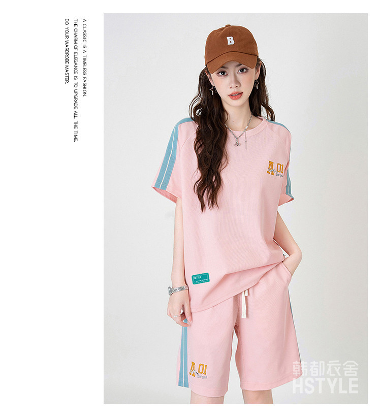 商品名称:休闲运动套装舒适女夏宽松半袖t恤+五分短裤两件套女 771979
