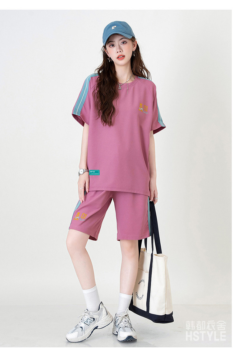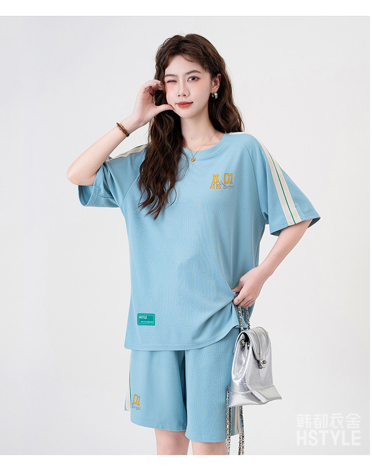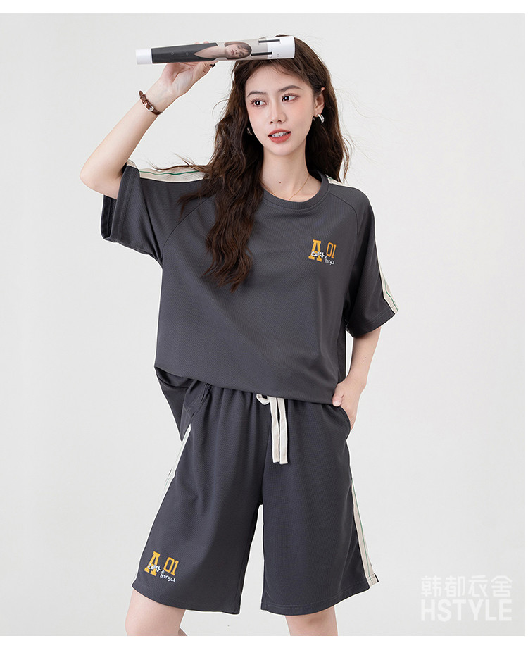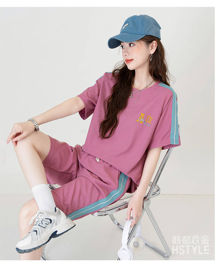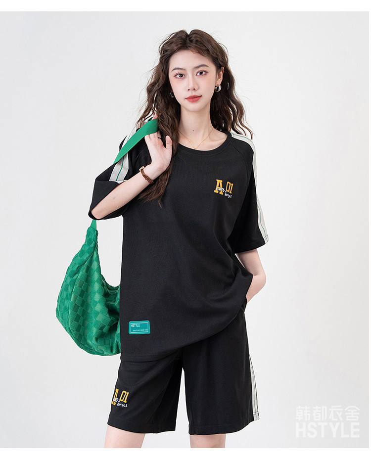 休闲运动套装舒适女夏宽松半袖t恤+五分短裤两件套女 771979