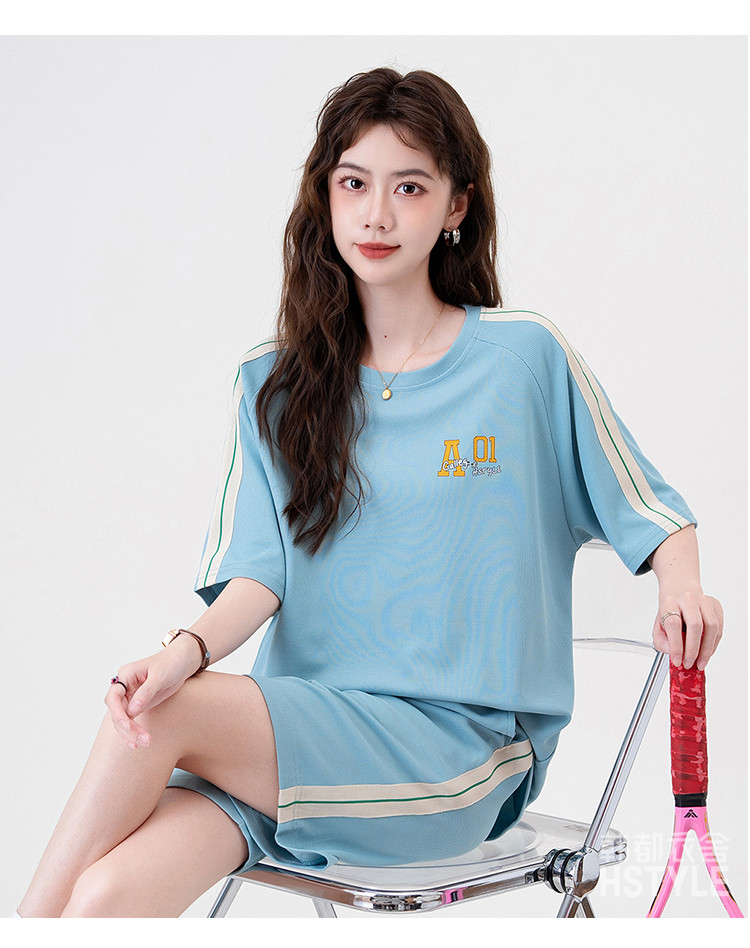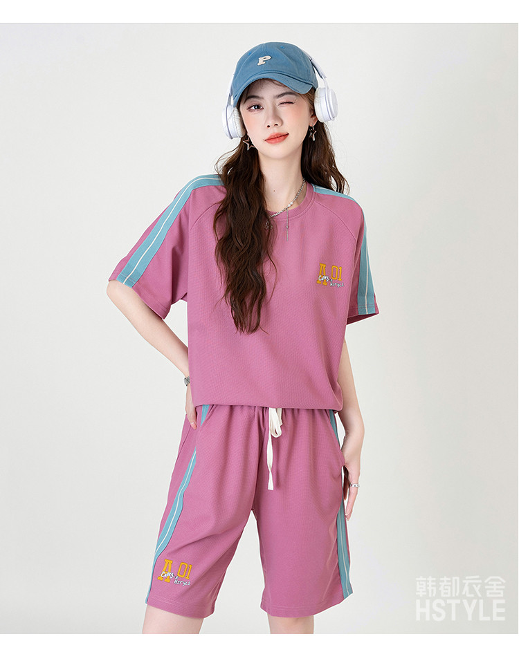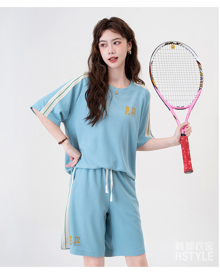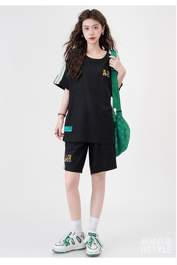 休闲运动套装舒适女夏宽松半袖t恤+五分短裤两件套女 771979