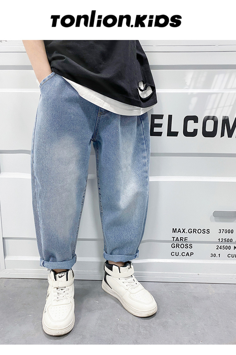 商品名称:儿童裤子男童牛仔裤中大童春季休闲宽松长裤老爹裤时尚春装 985679
