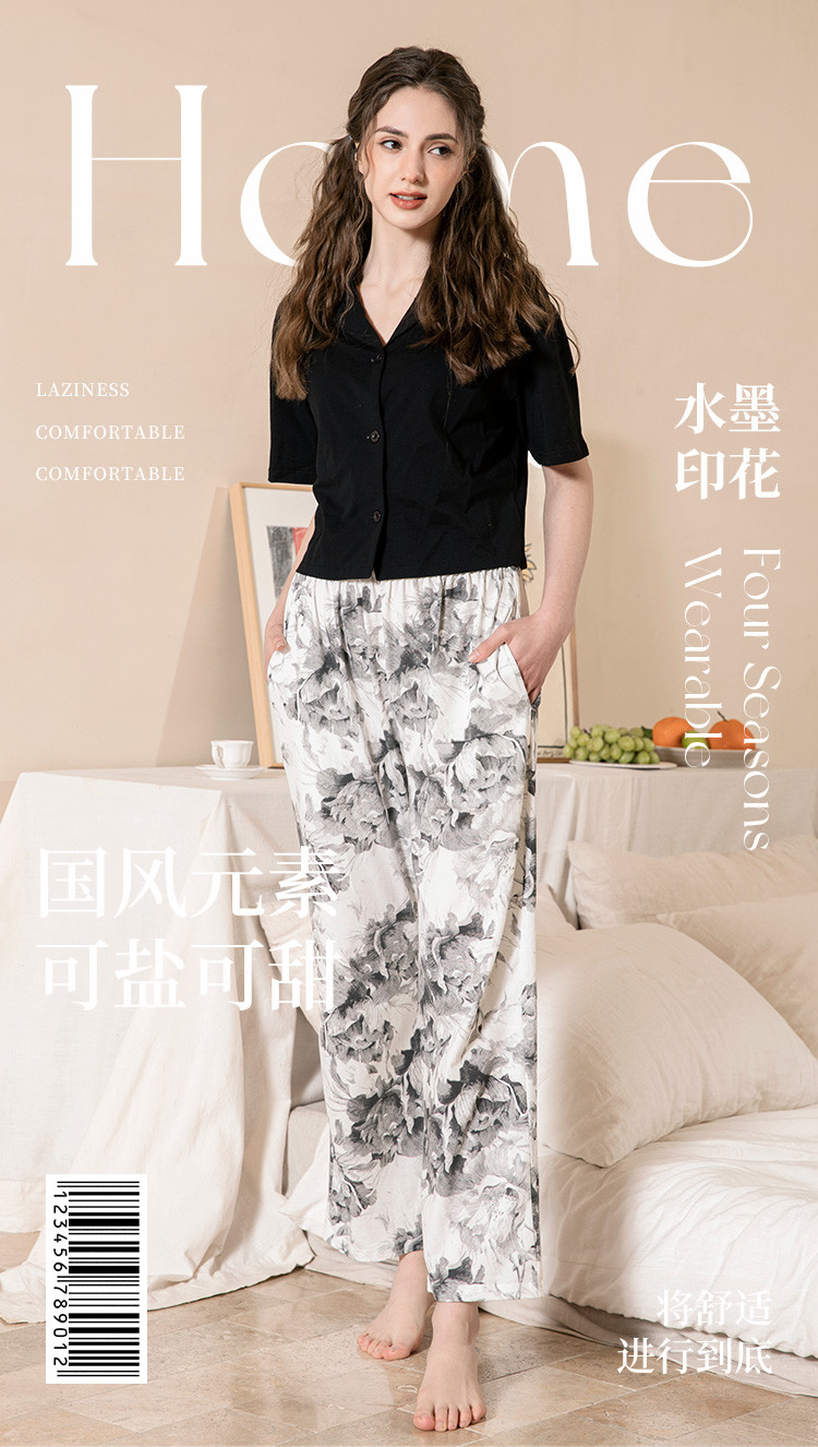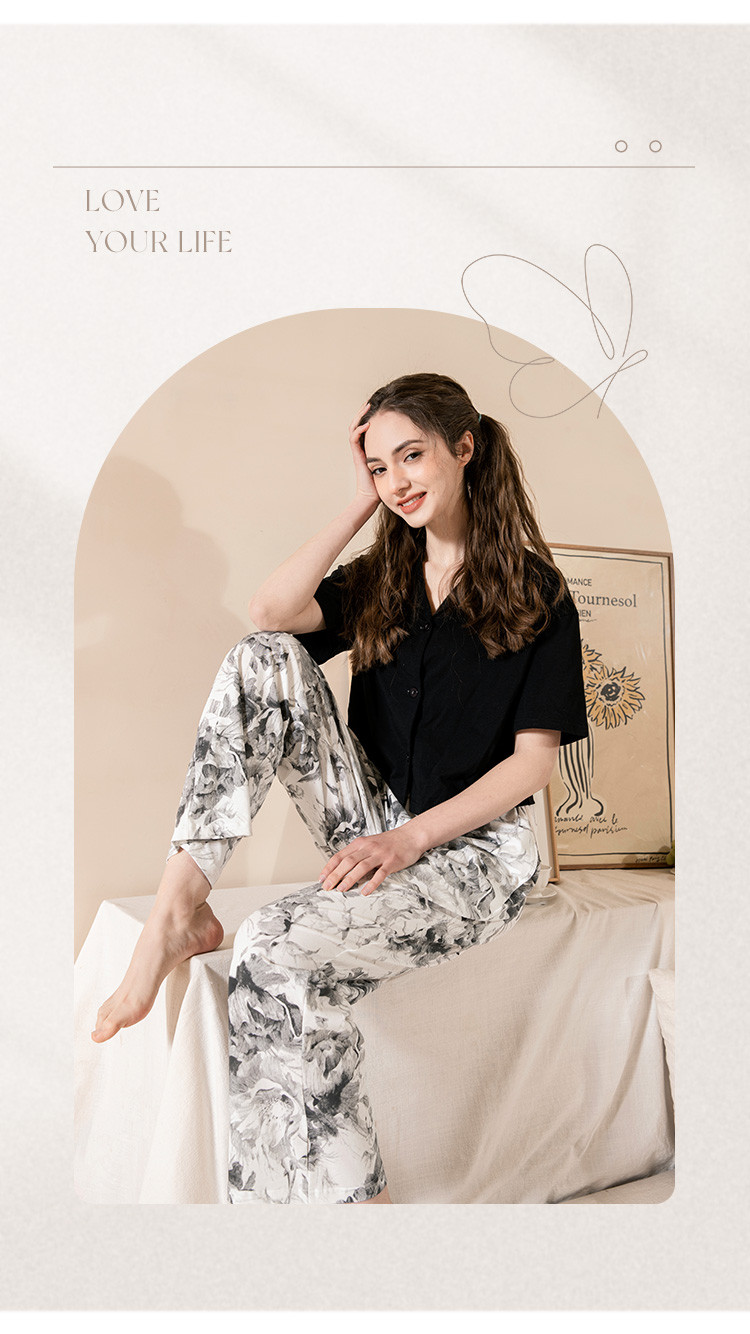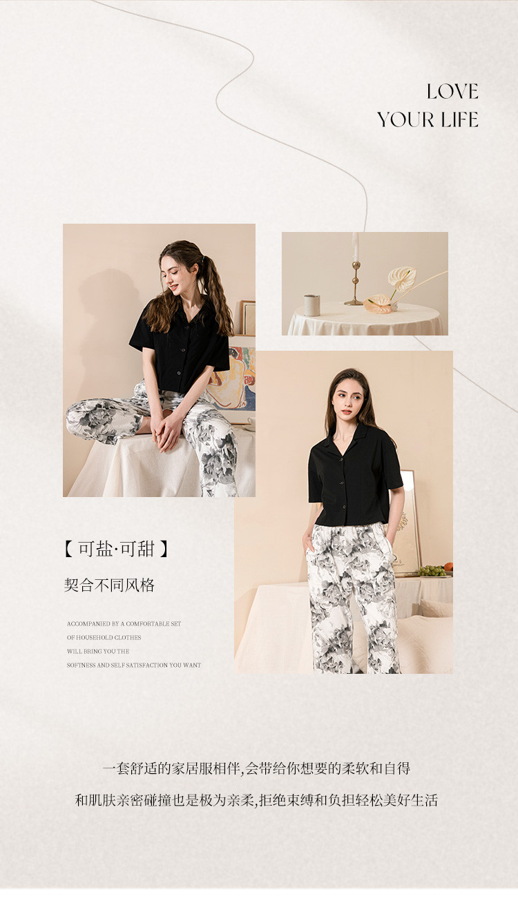 商品名称:【可甜可盐】短袖睡衣女夏季薄款舒适爽棉家居服套装可外穿高级感 693131