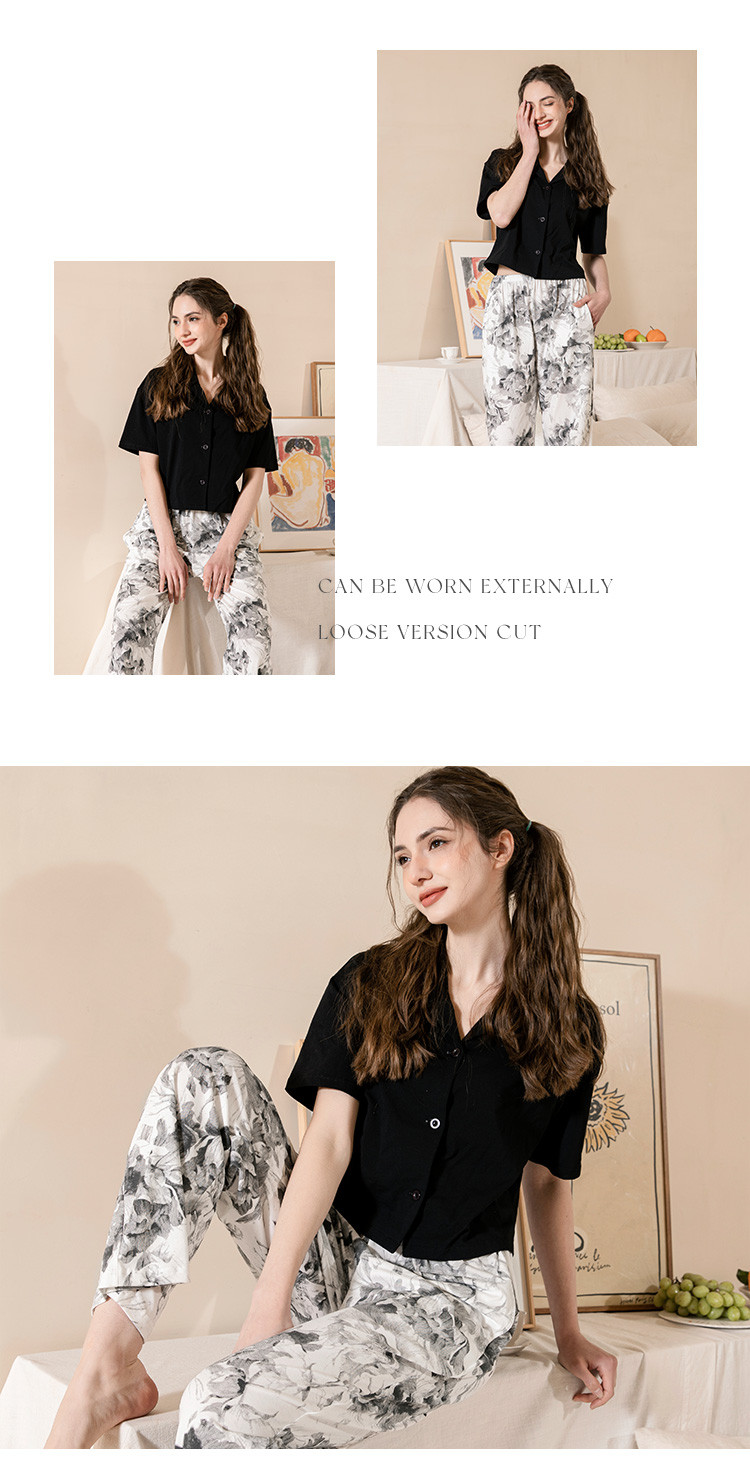 【可甜可盐】短袖睡衣女夏季薄款舒适爽棉家居服套装可外穿高级感 693131