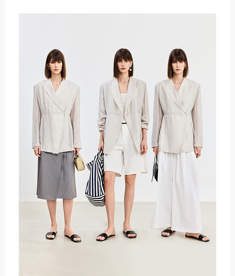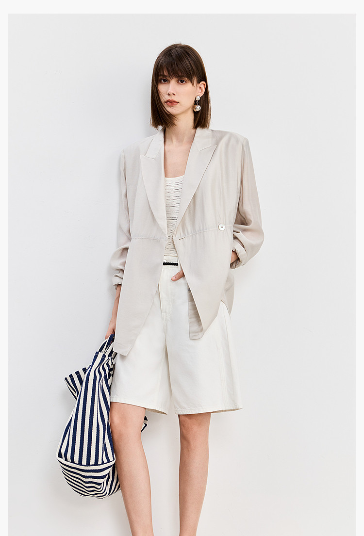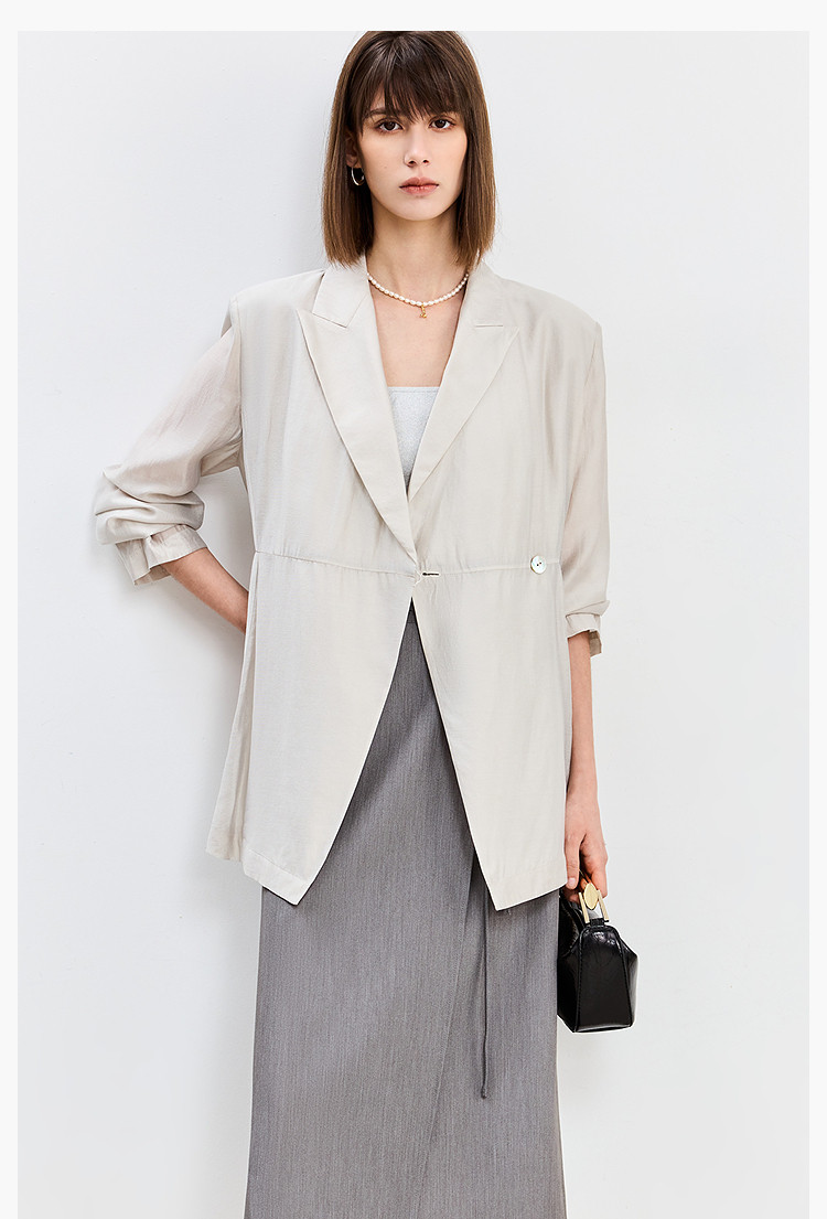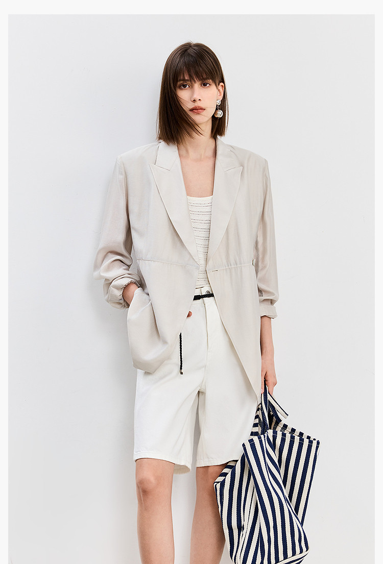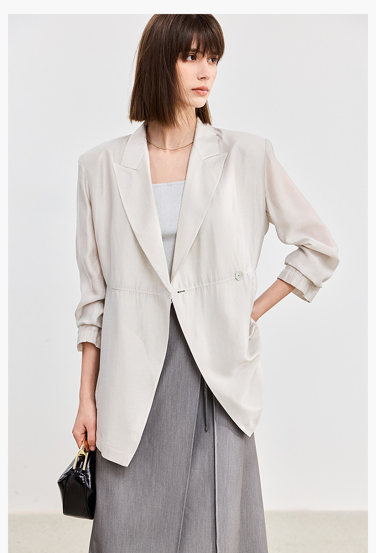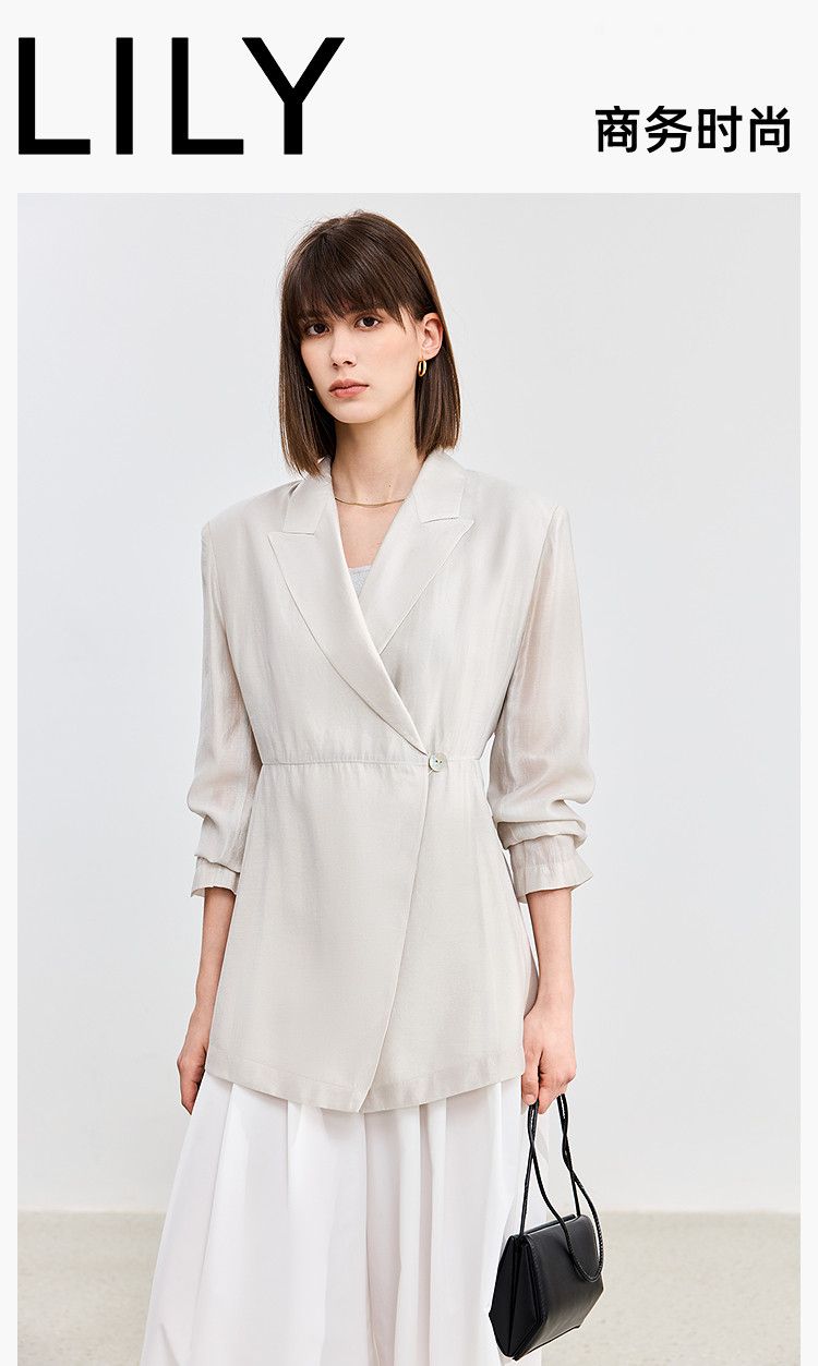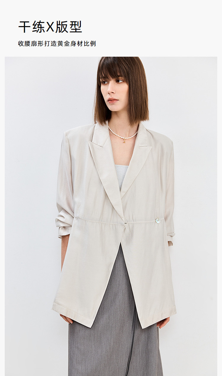 【春季】经典V领设计收腰利落版型松弛感轻薄西装外套 640155