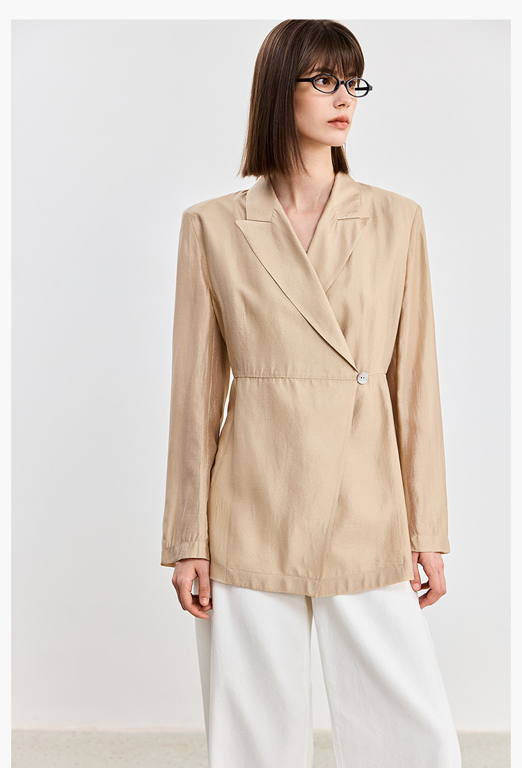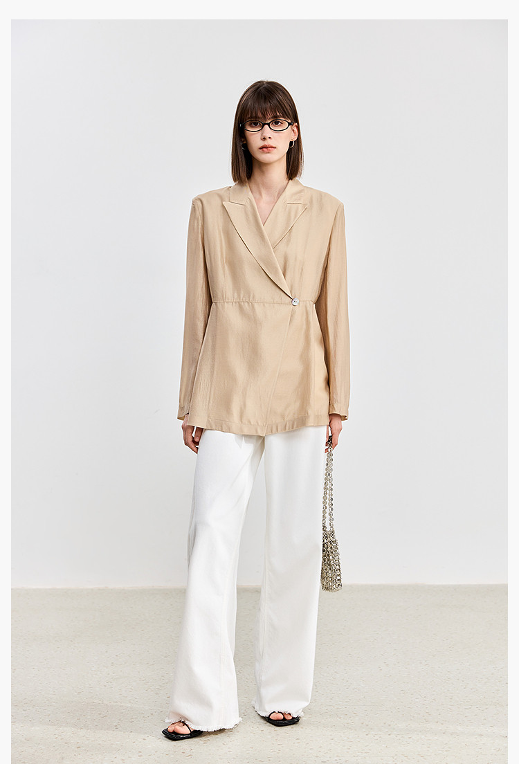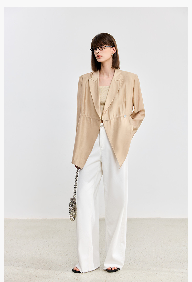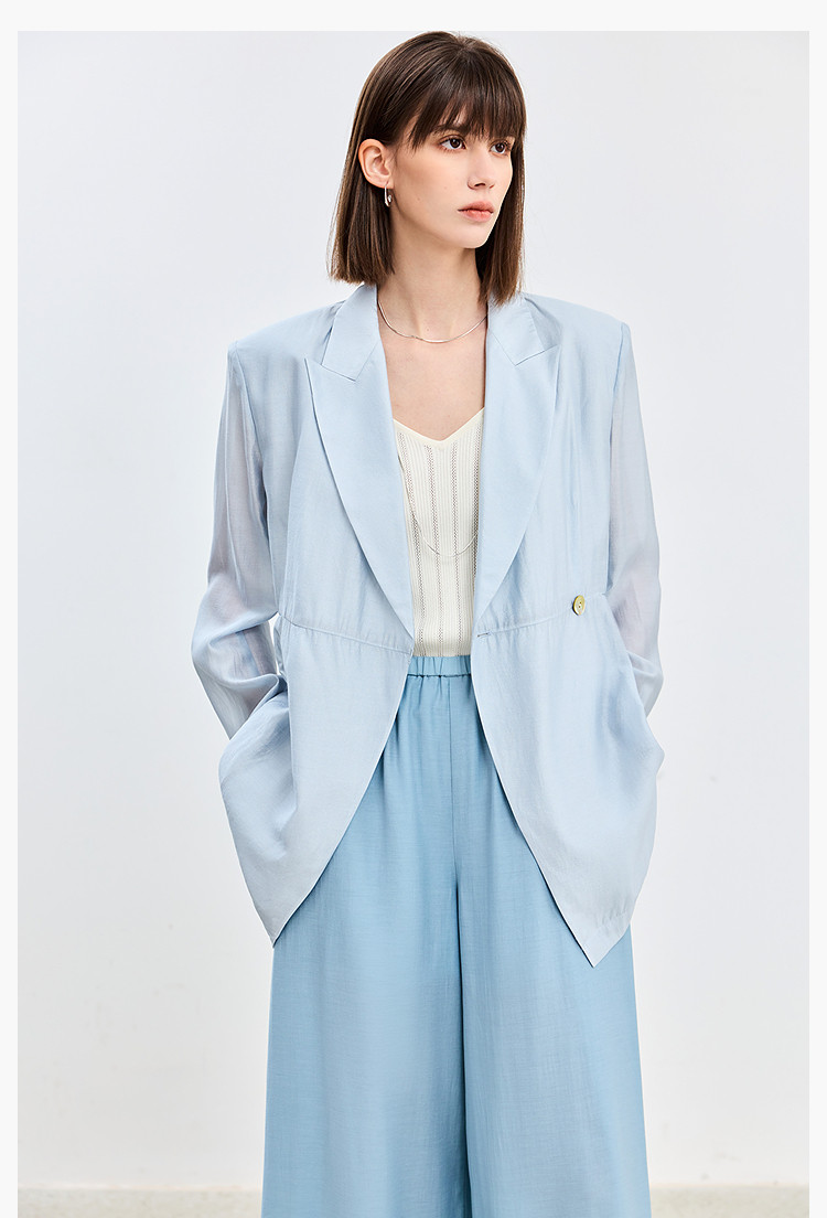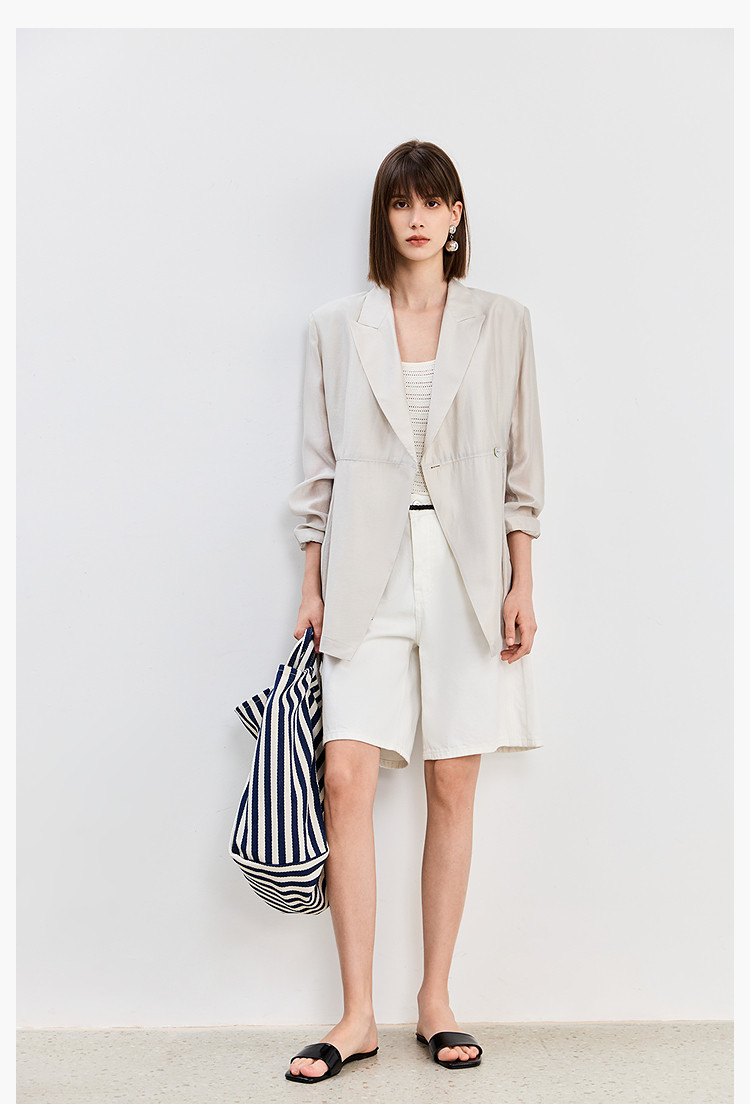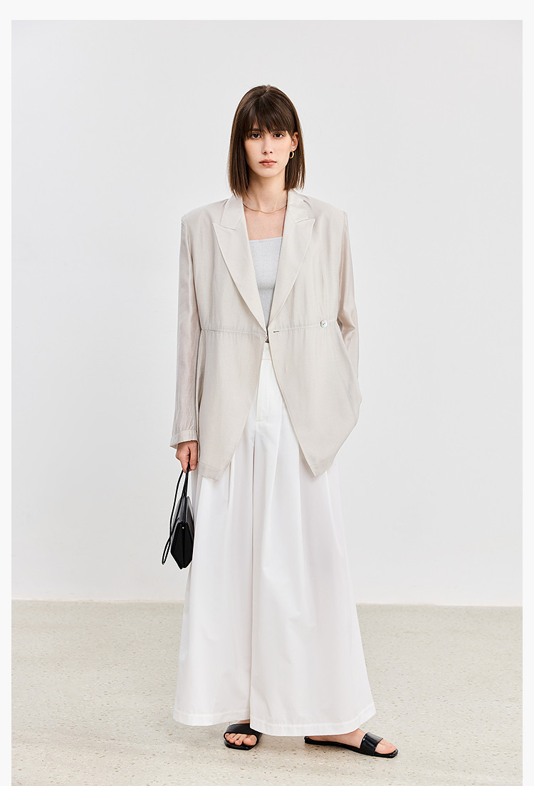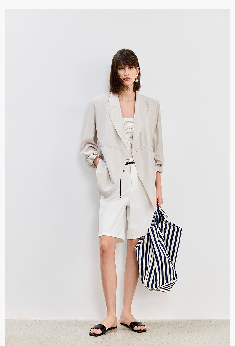 【春季】经典V领设计收腰利落版型松弛感轻薄西装外套 640155