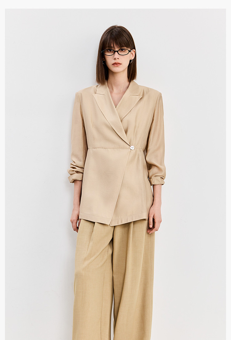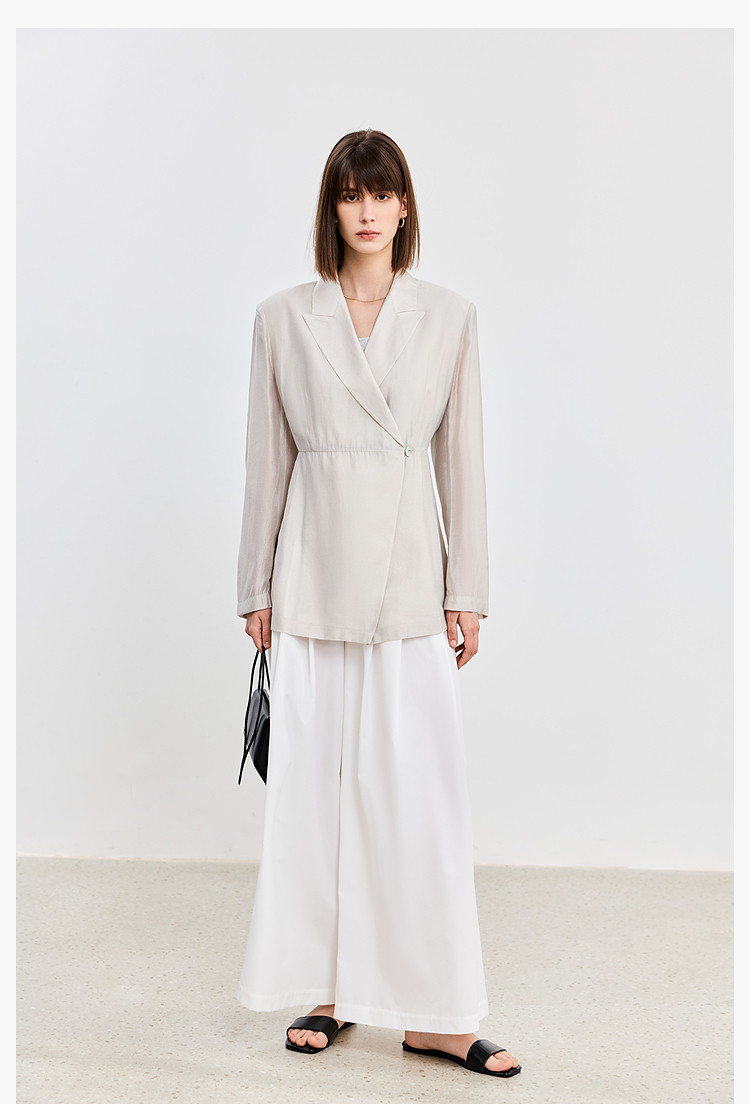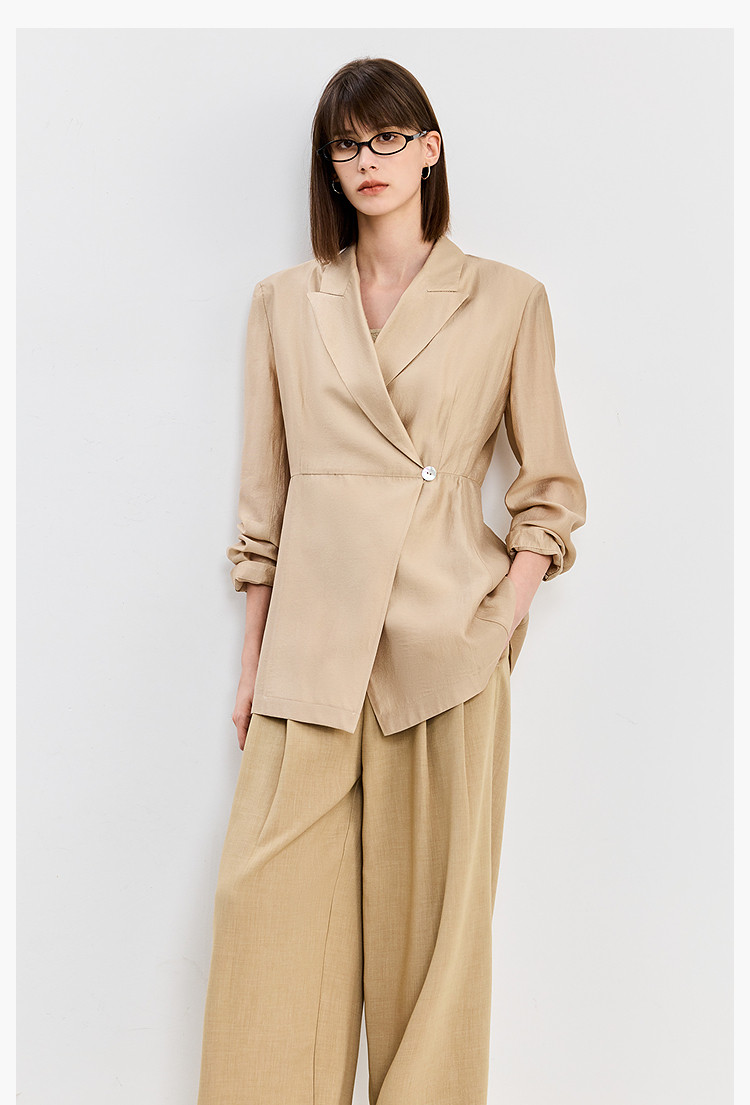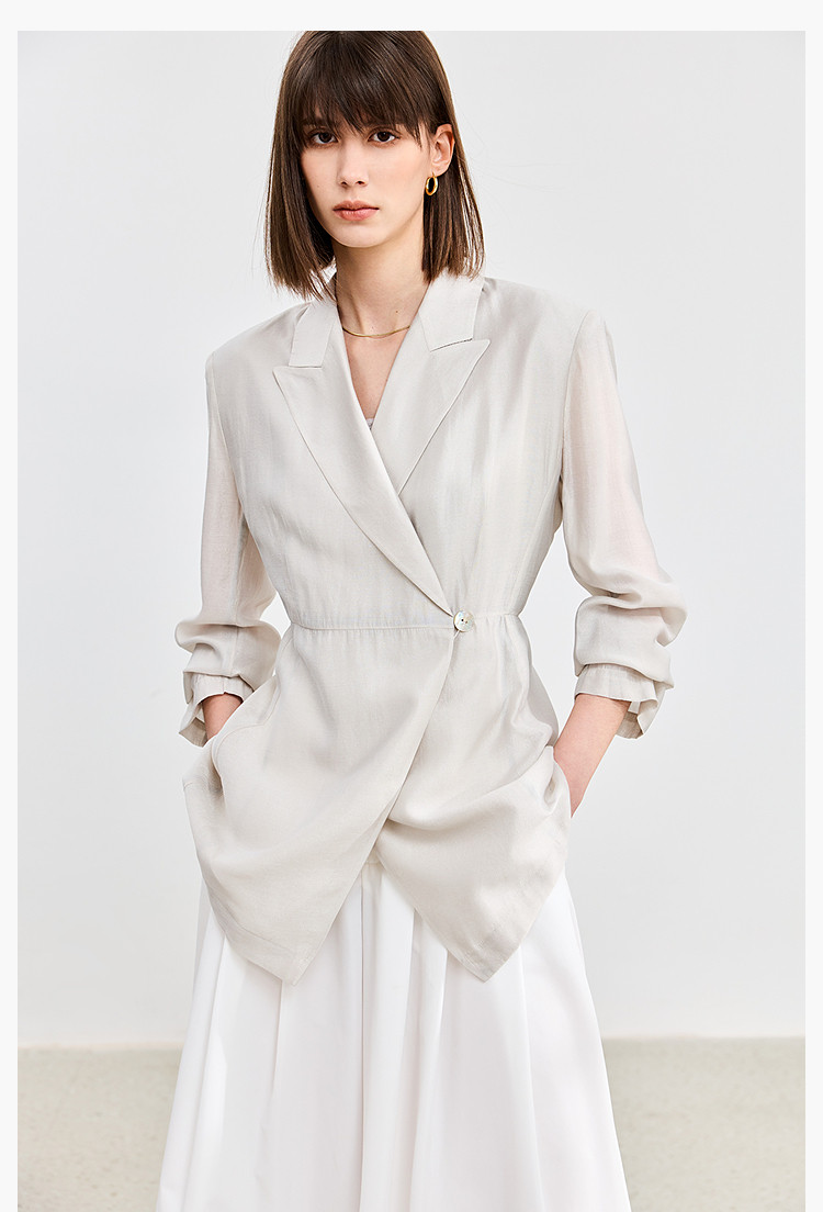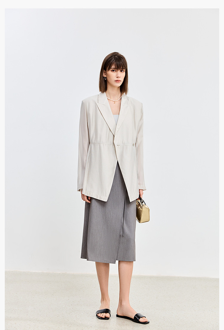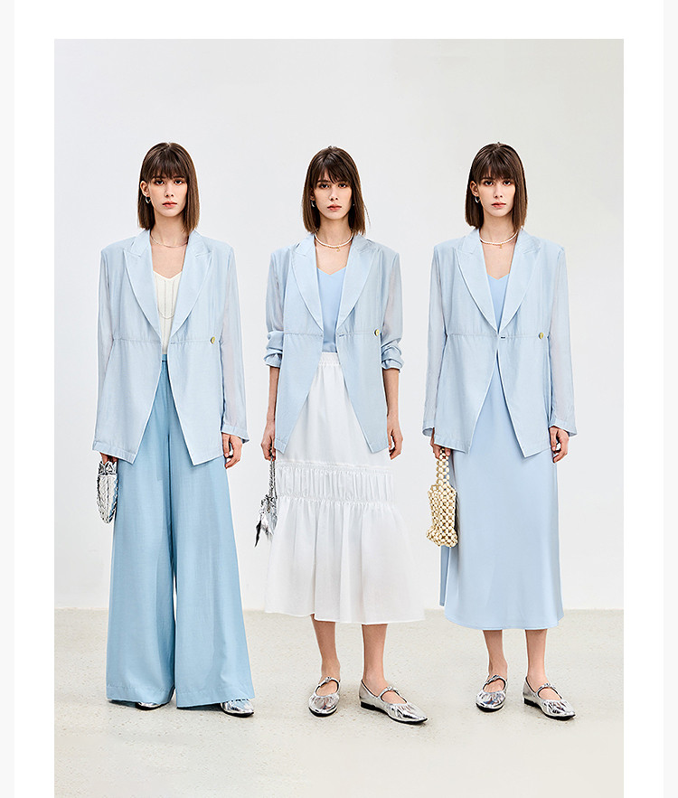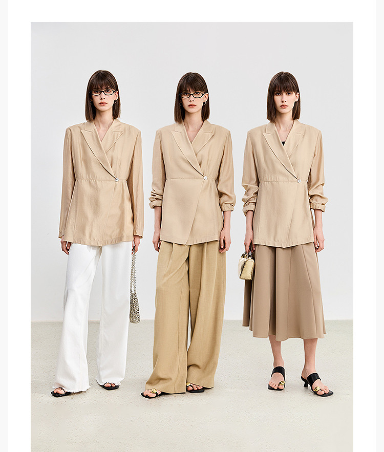 【春季】经典V领设计收腰利落版型松弛感轻薄西装外套 640155