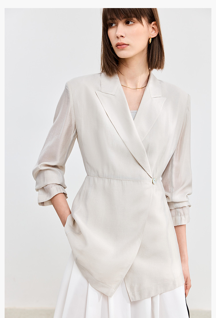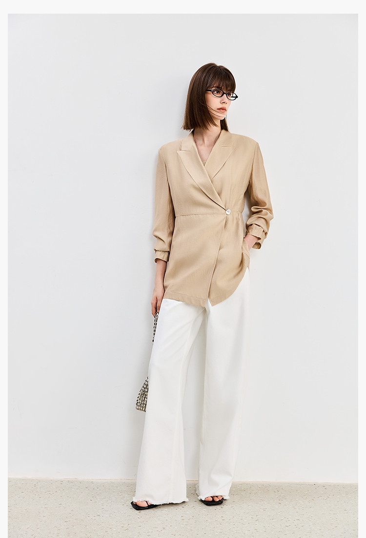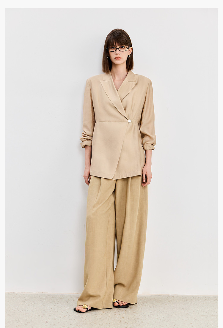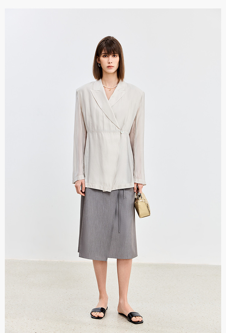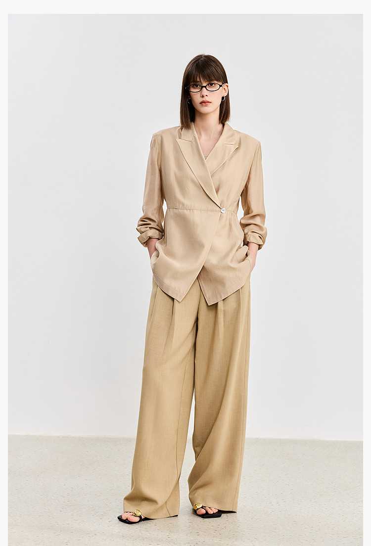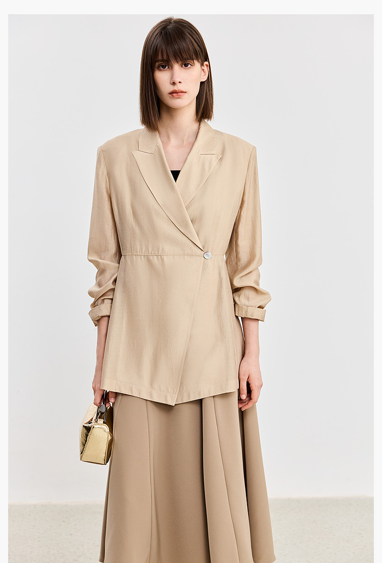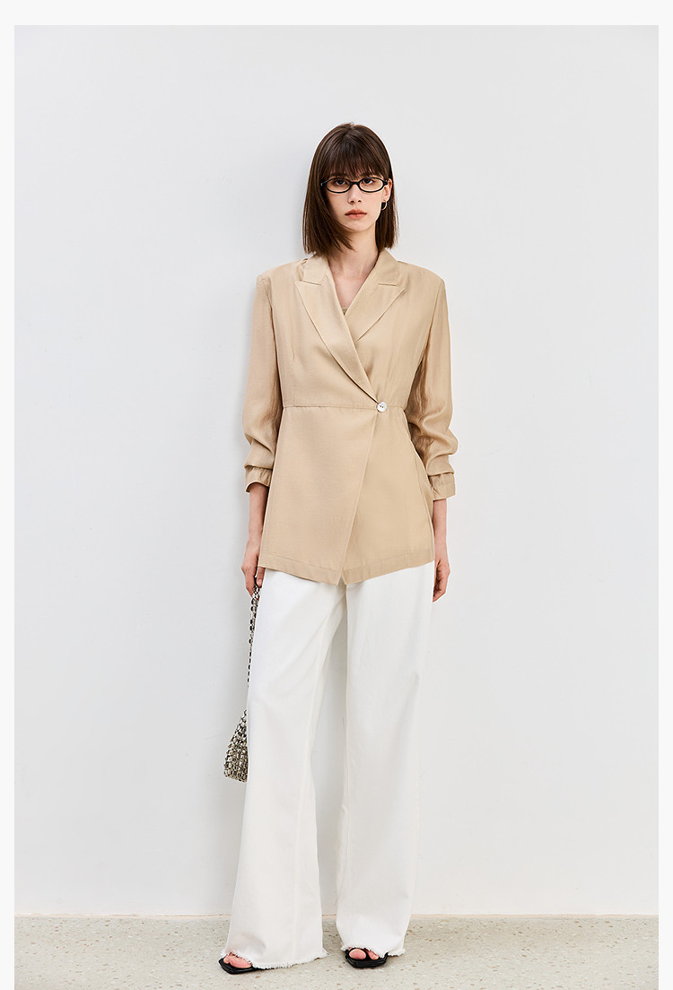 【春季】经典V领设计收腰利落版型松弛感轻薄西装外套 640155