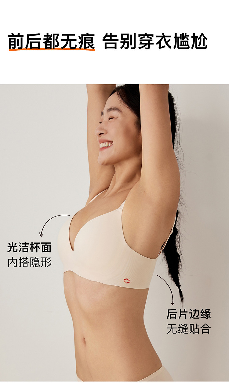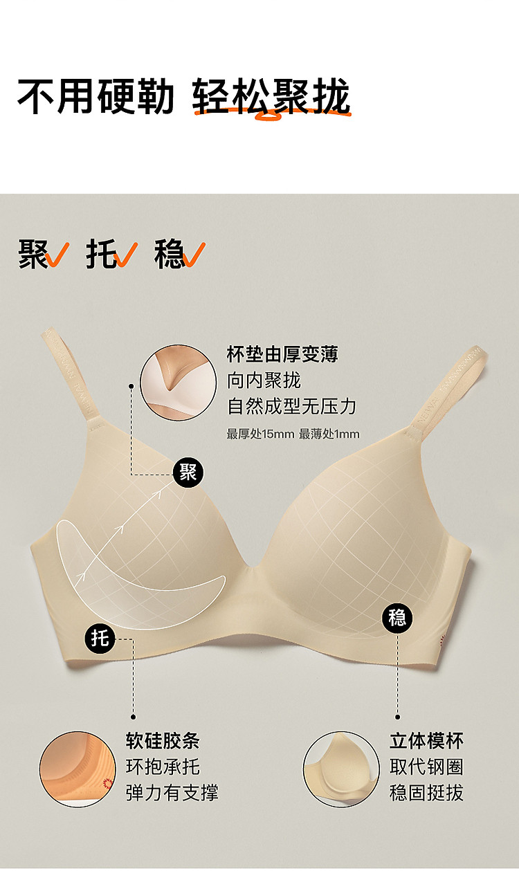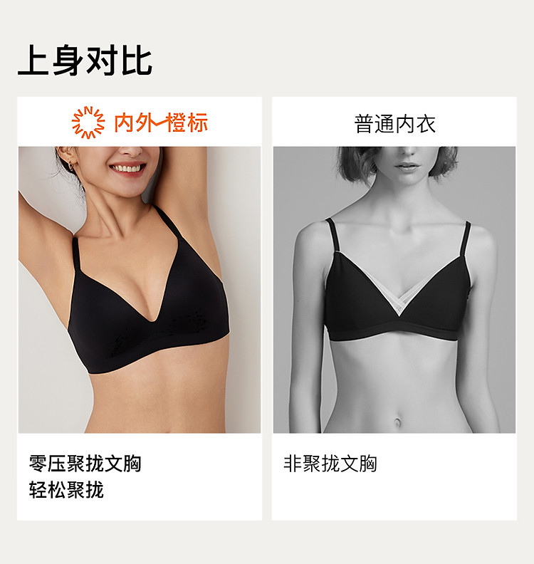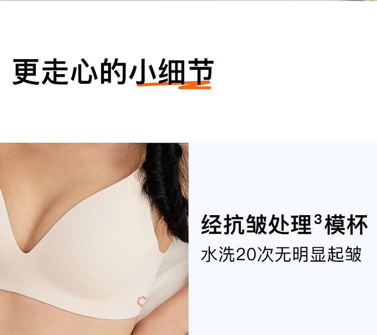 商品名称:NEIWAI内外橙标|软胶条三角杯模杯文胸透气舒适聚拢内衣 734986