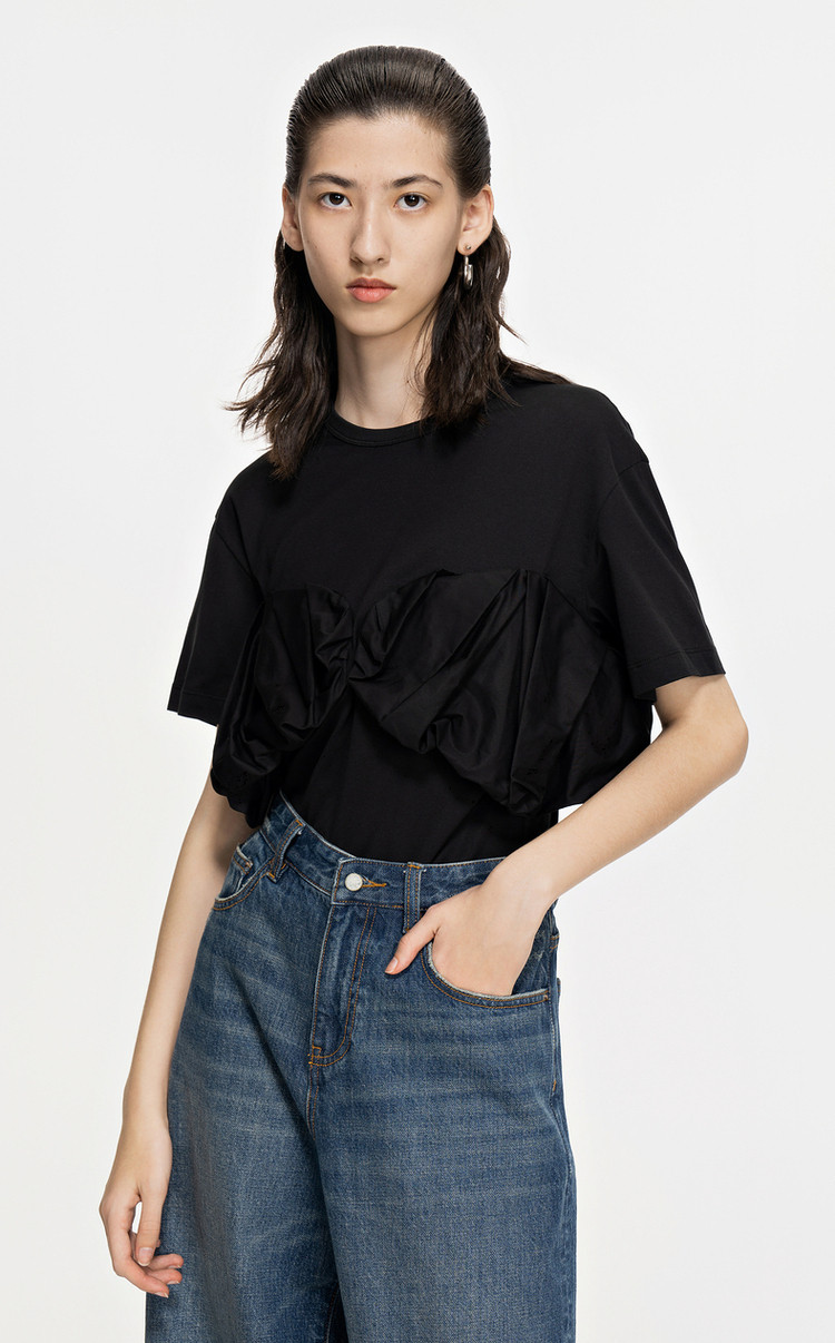 商品名称:夏T恤圆领针织拼接上衣女 087883