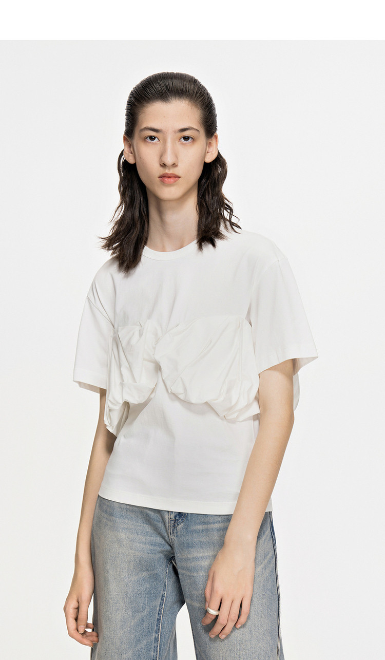 【含桑蚕丝】轻薄透气圆领纯色提花针织短袖T恤 546259