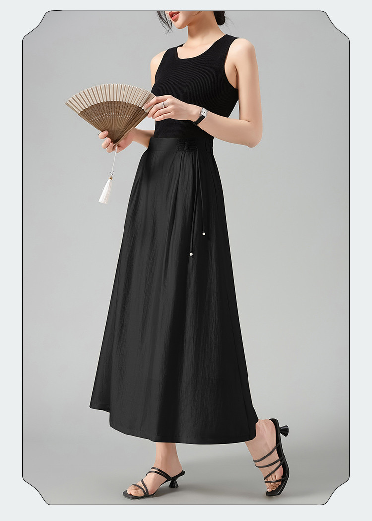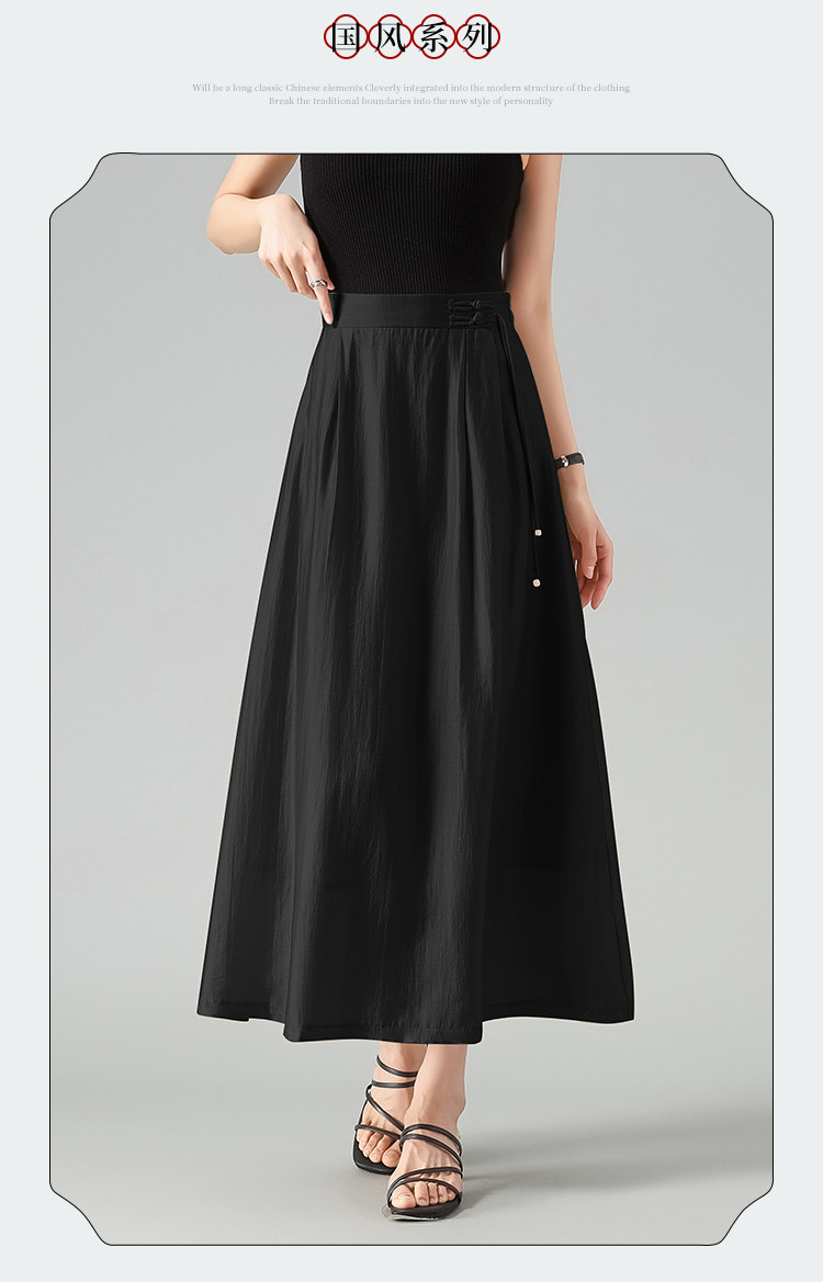 商品名称:2025夏季新中式高级感显瘦百搭优雅精致天丝盘扣a字版半身裙 783128