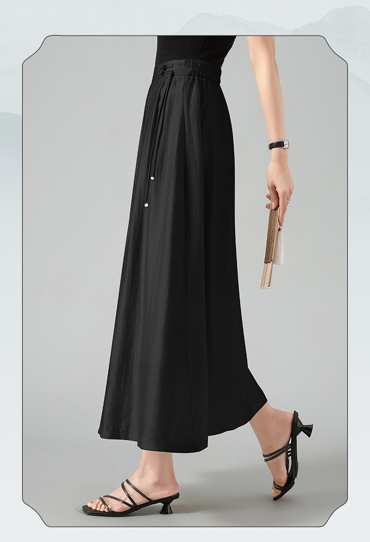 开叉高腰时尚百搭阔腿裤女夏季轻薄宽松垂感直筒休闲裤 630936