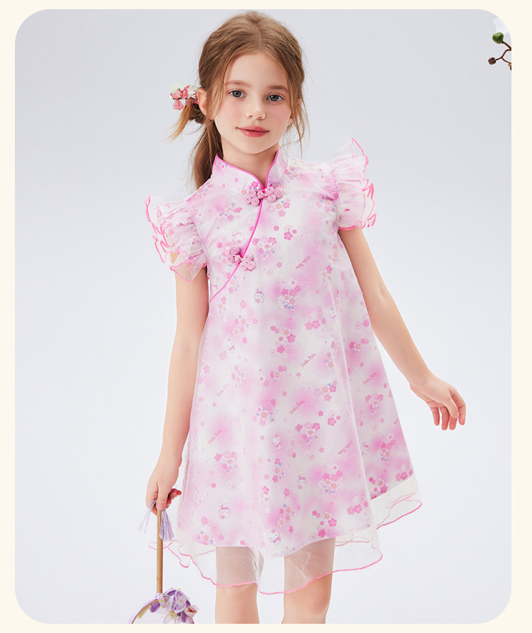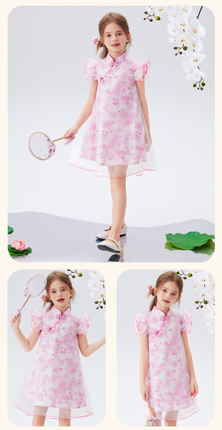 商品名称:【新中式国风连衣裙】女童夏季2025款气质盘扣国潮风女孩裙子 469534