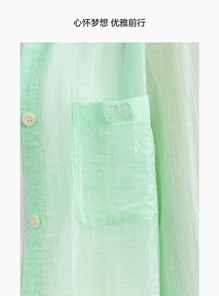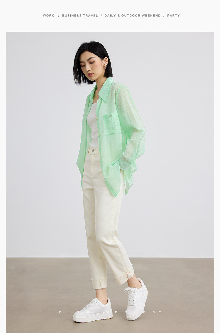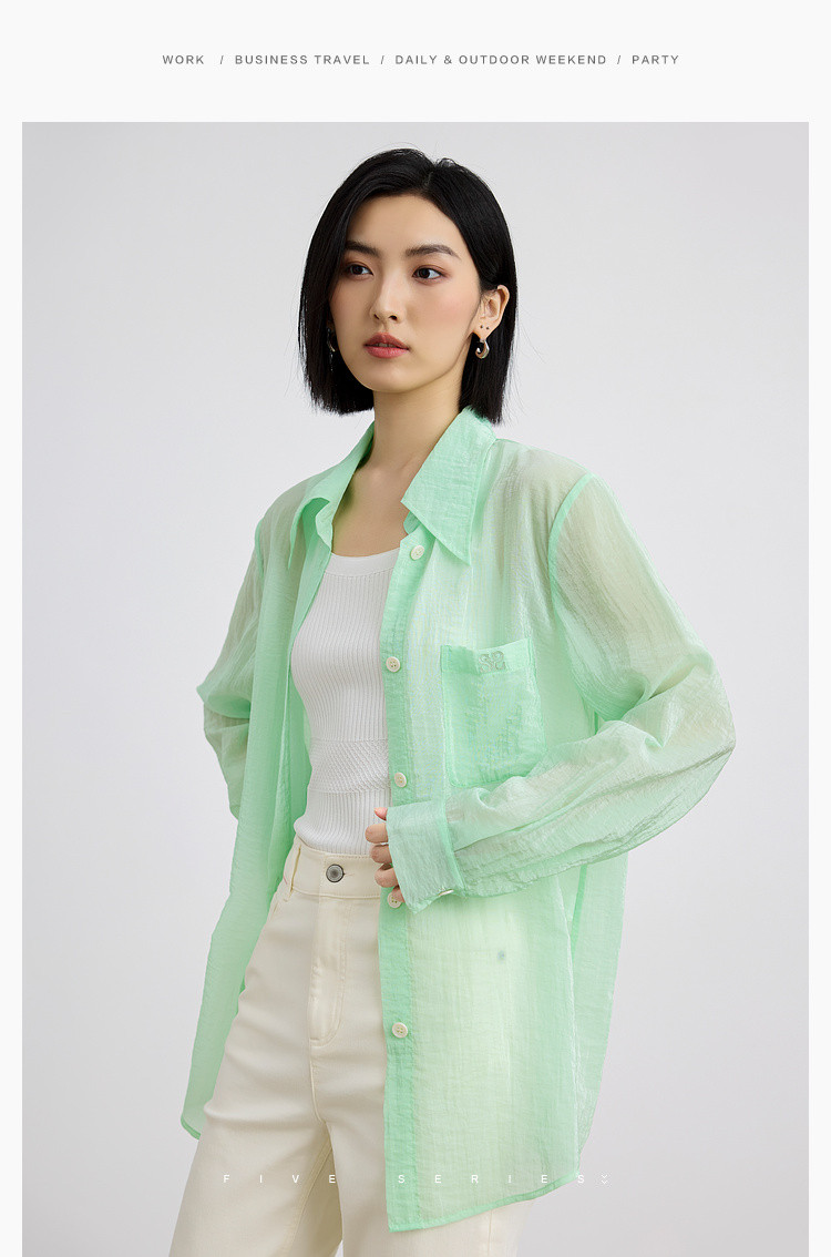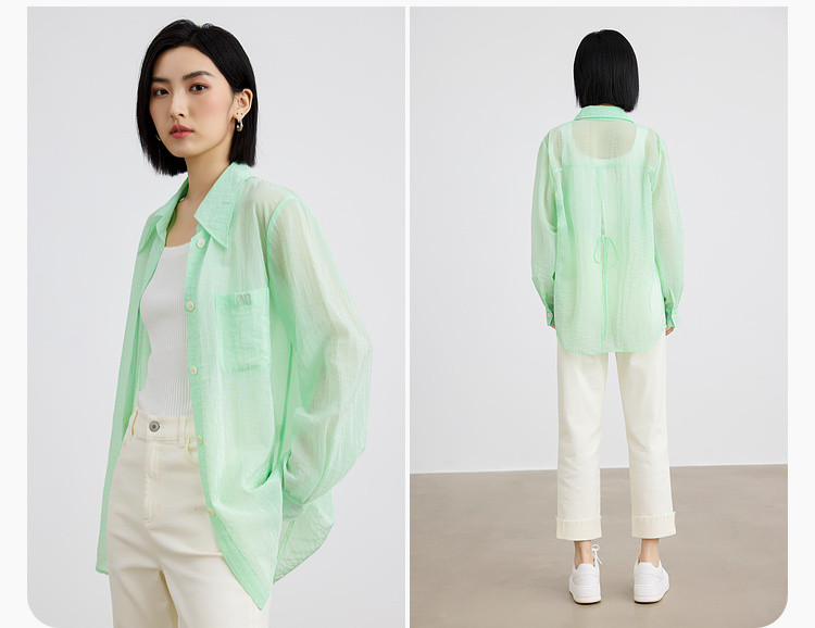 后背开叉薄款POLO领衬衫女宽松户外搭上衣纯色衬衣女 838915