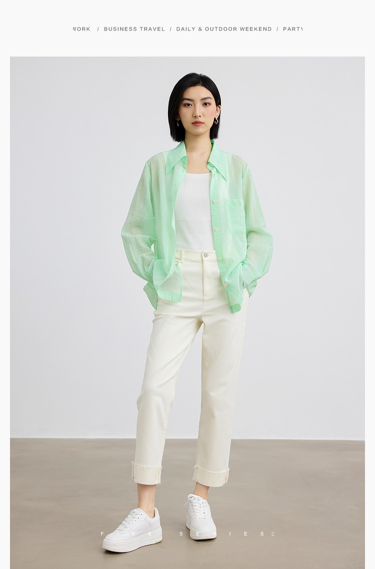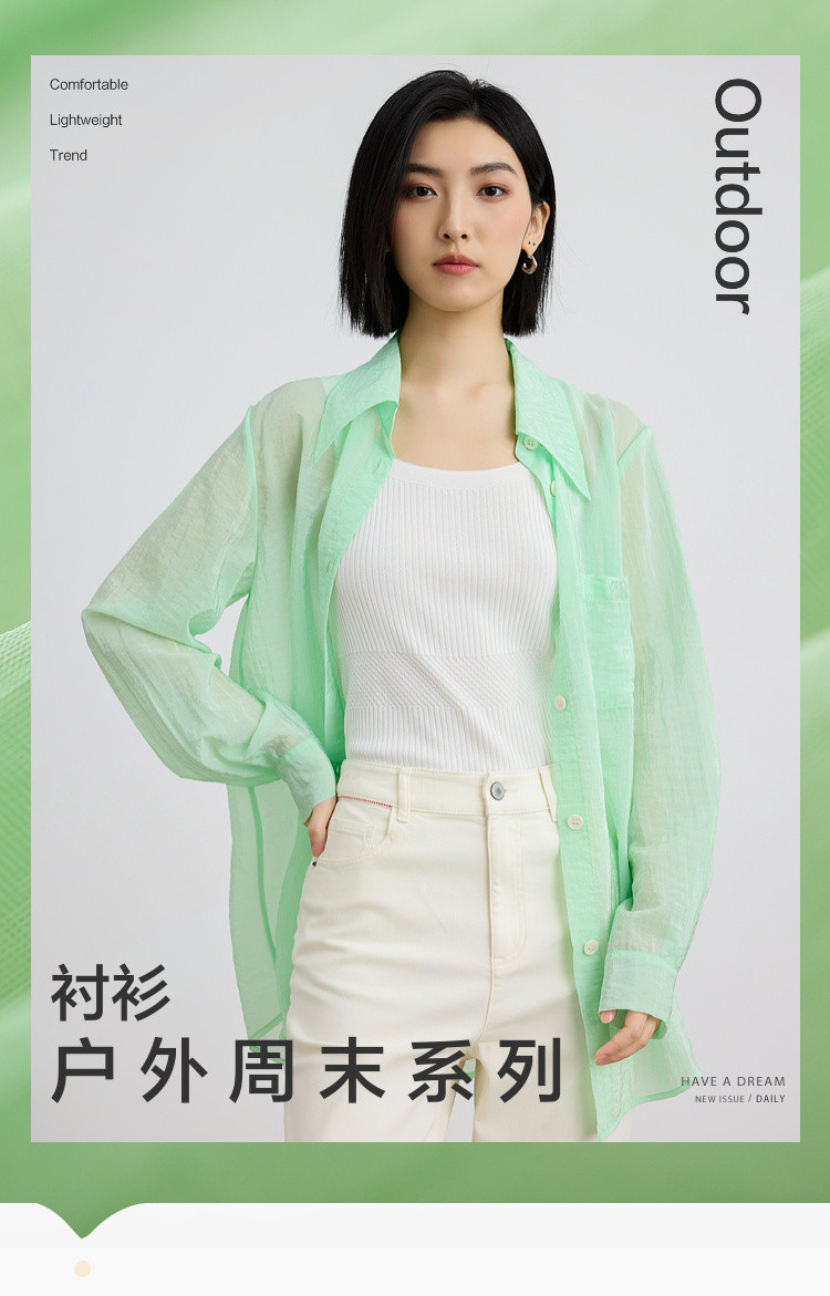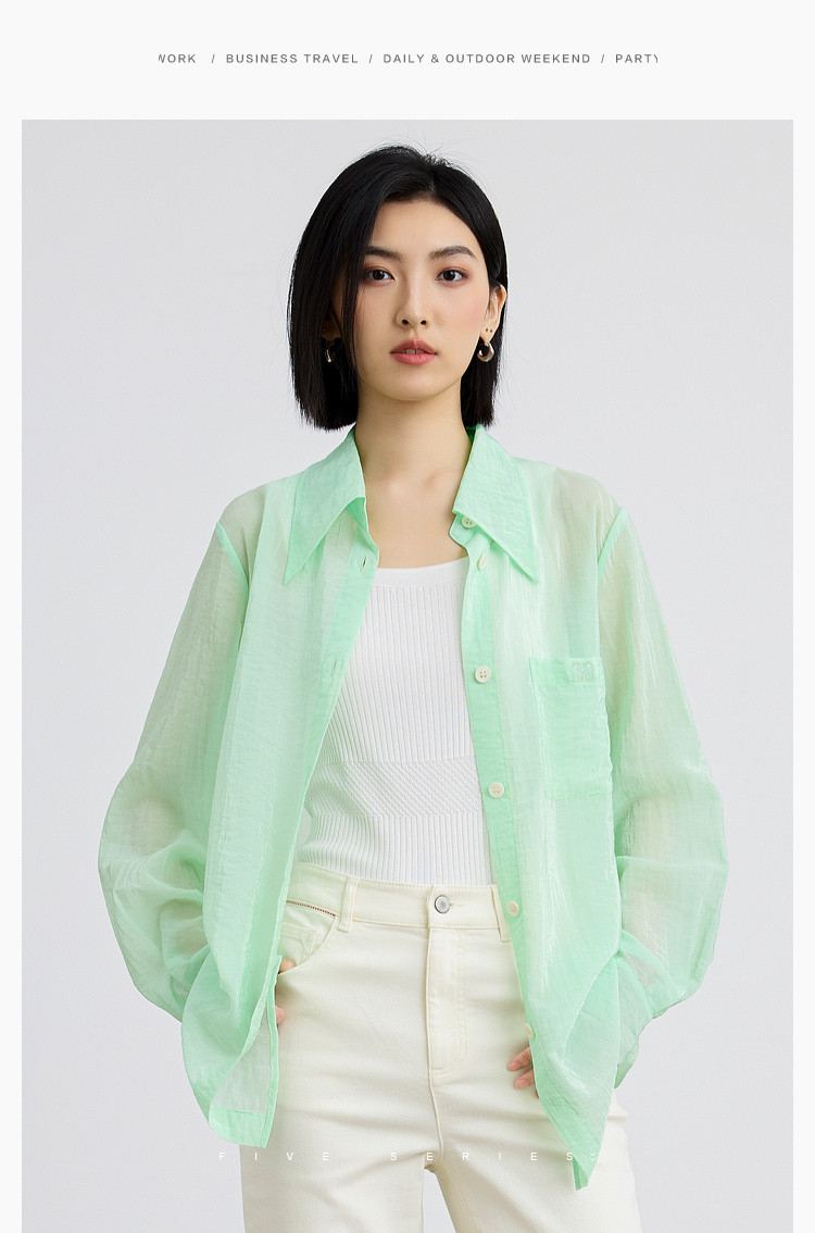 商品名称:后背开叉薄款POLO领衬衫女宽松户外搭上衣纯色衬衣女 838915