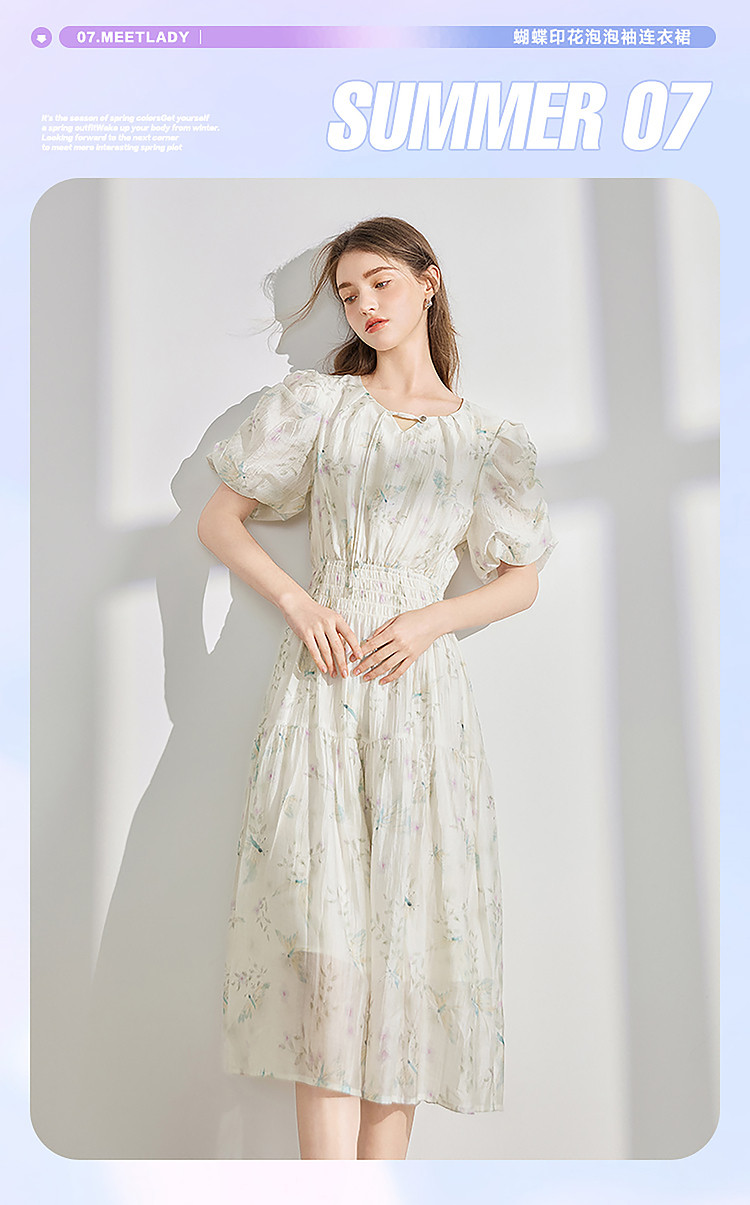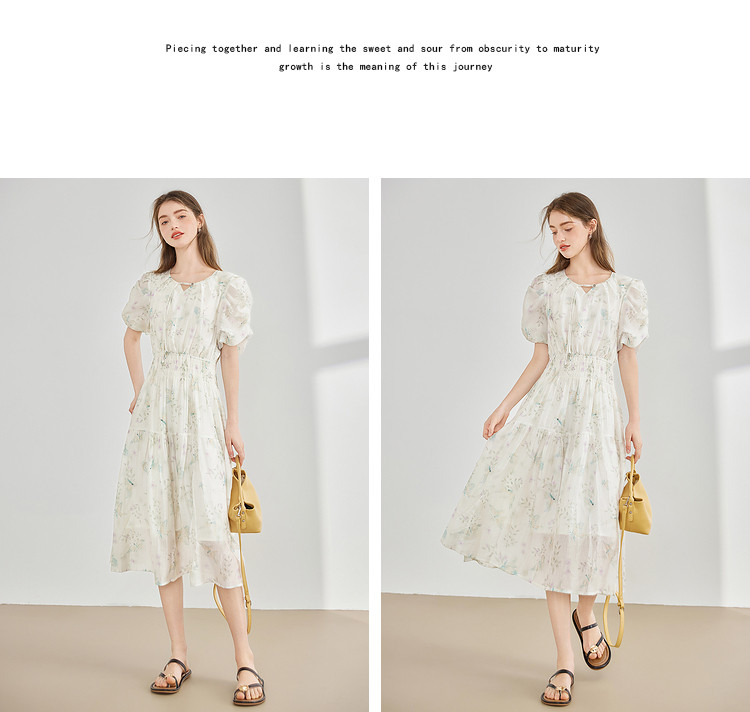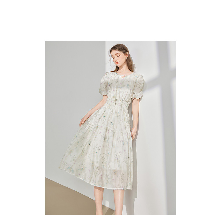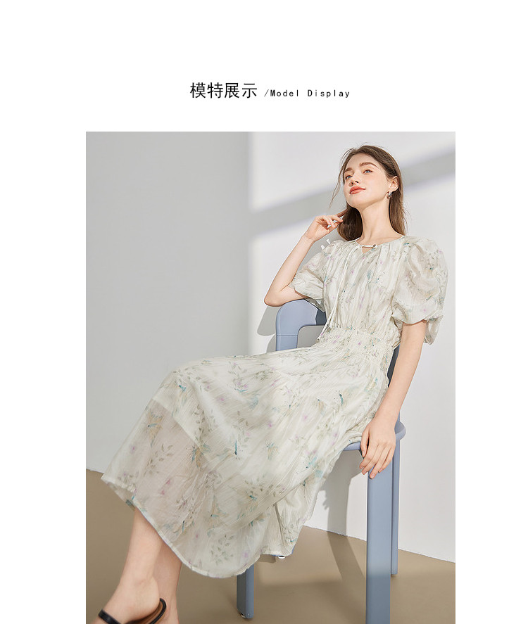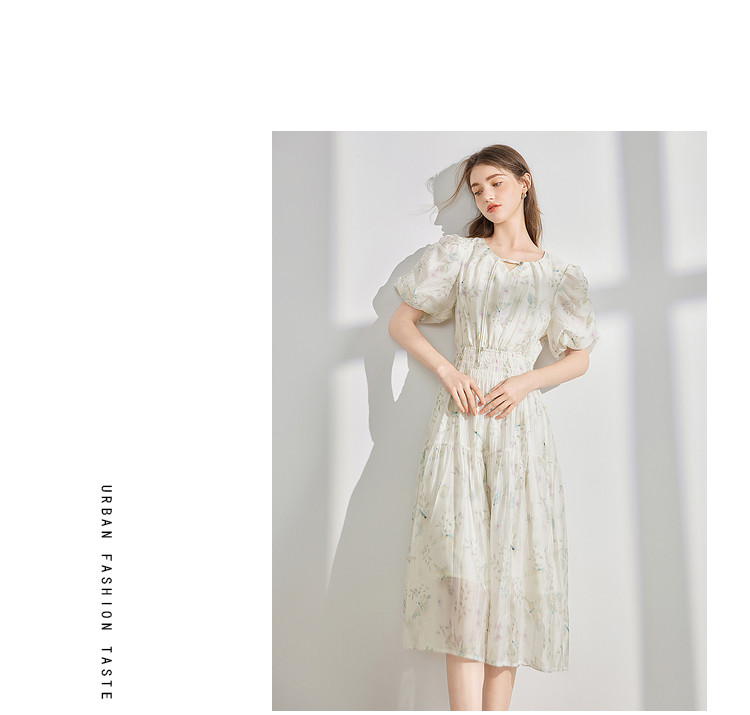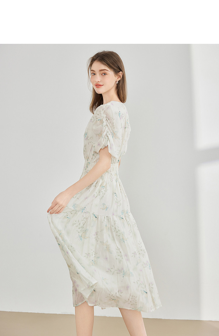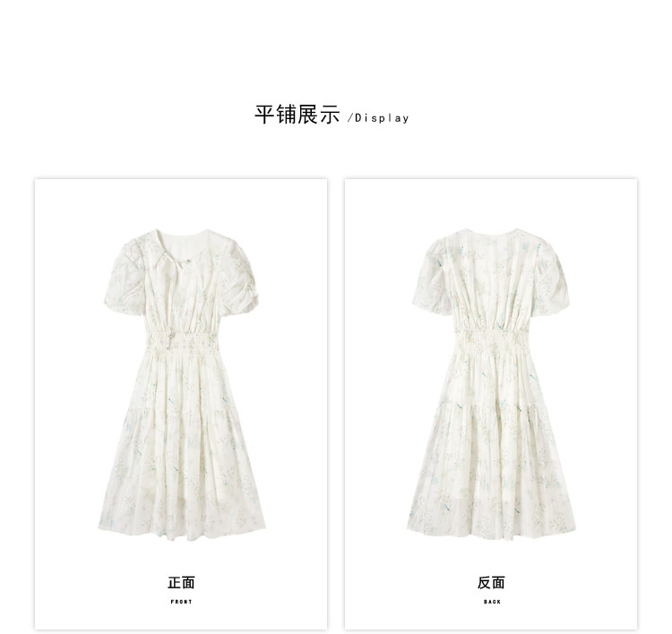 商品名称:【2024夏季】优雅小V领碎花连衣裙女泡泡袖收腰裙仙女裙子 995924