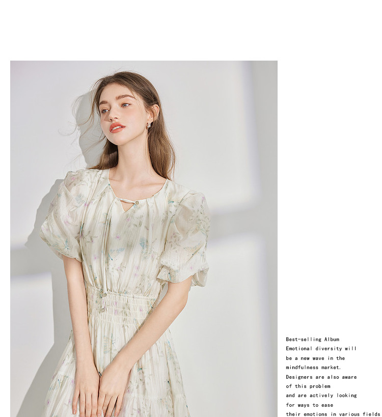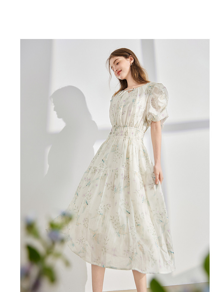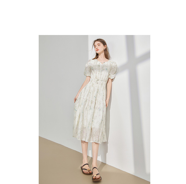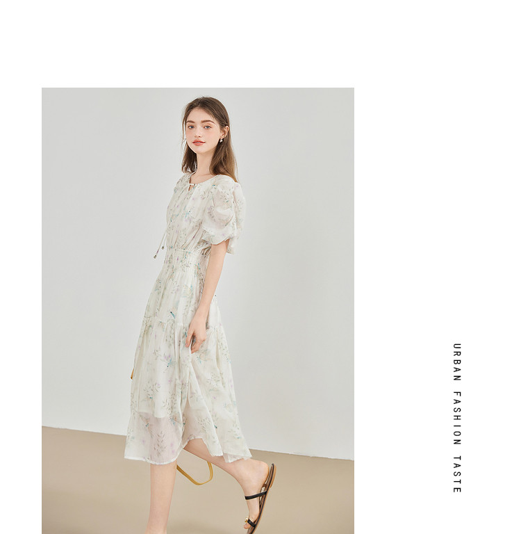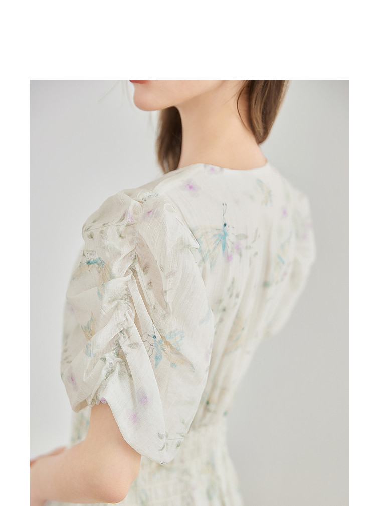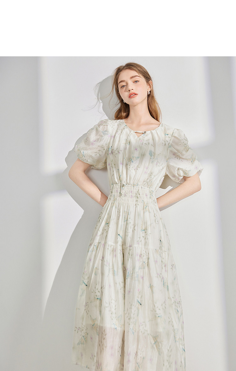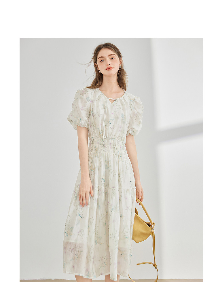 商品名称:【2024夏季】优雅小V领碎花连衣裙女泡泡袖收腰裙仙女裙子 995924