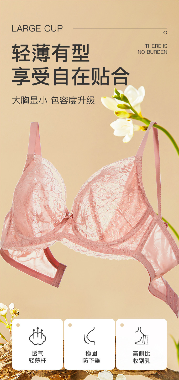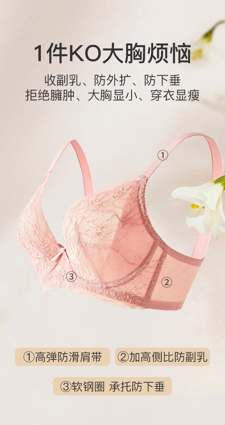 商品名称:捡漏【花瓣蕾丝内衣】大胸救星文胸女内衣薄杯显小性感透气胸罩女 469323