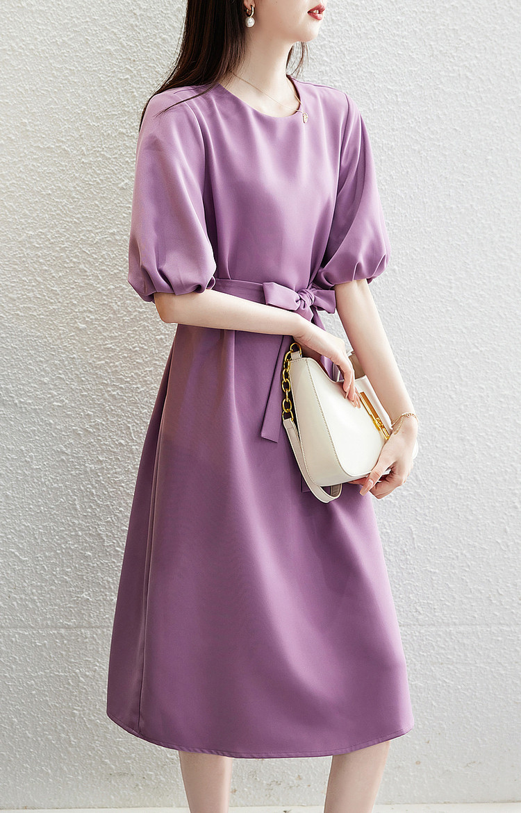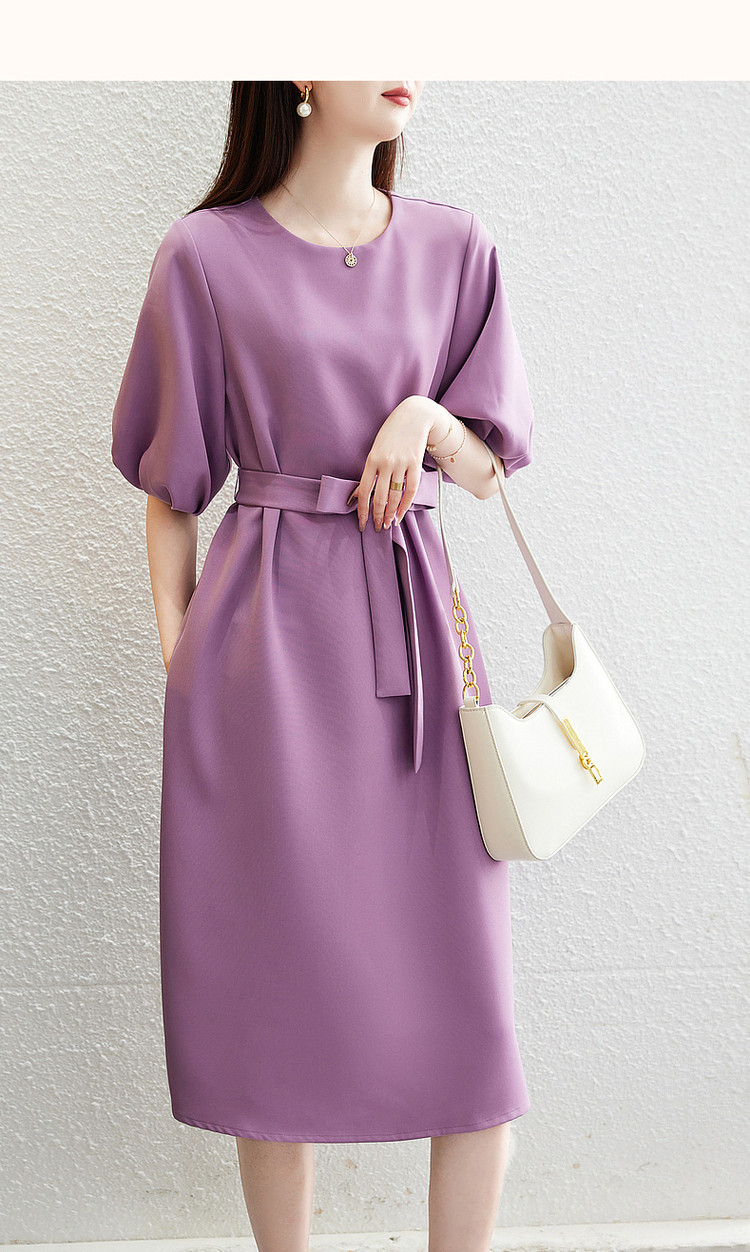 【灯笼袖a字裙】春秋通勤圆领宽松五分袖连衣裙女中长款 016129
