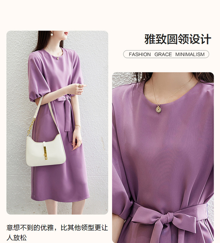 商品名称:【灯笼袖a字裙】春秋通勤圆领宽松五分袖连衣裙女中长款 016129