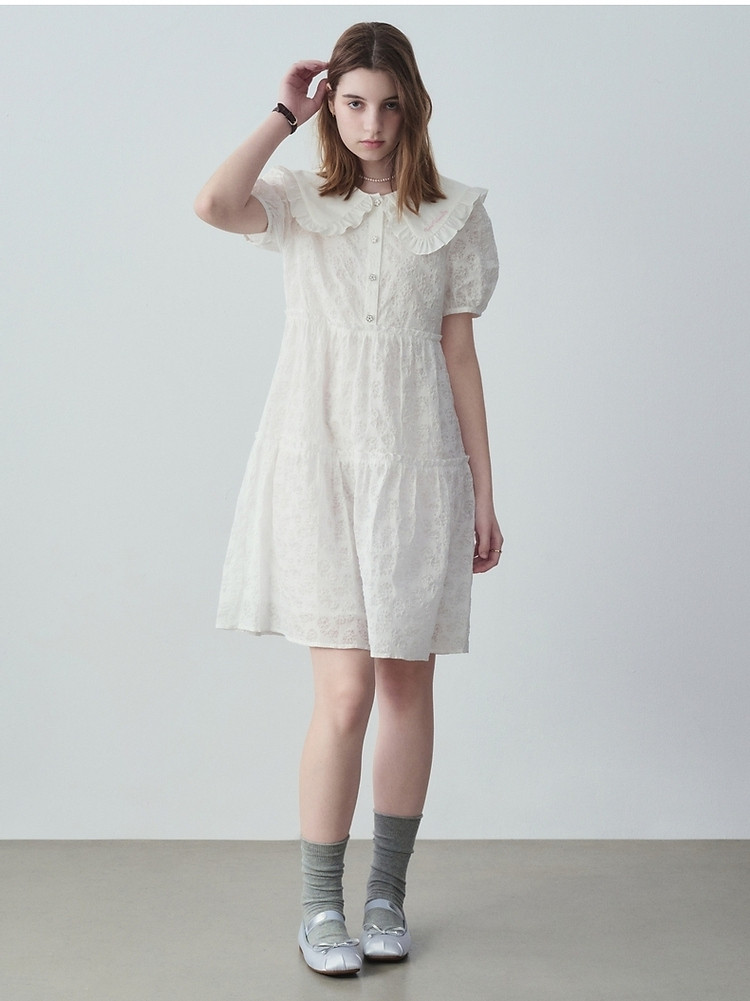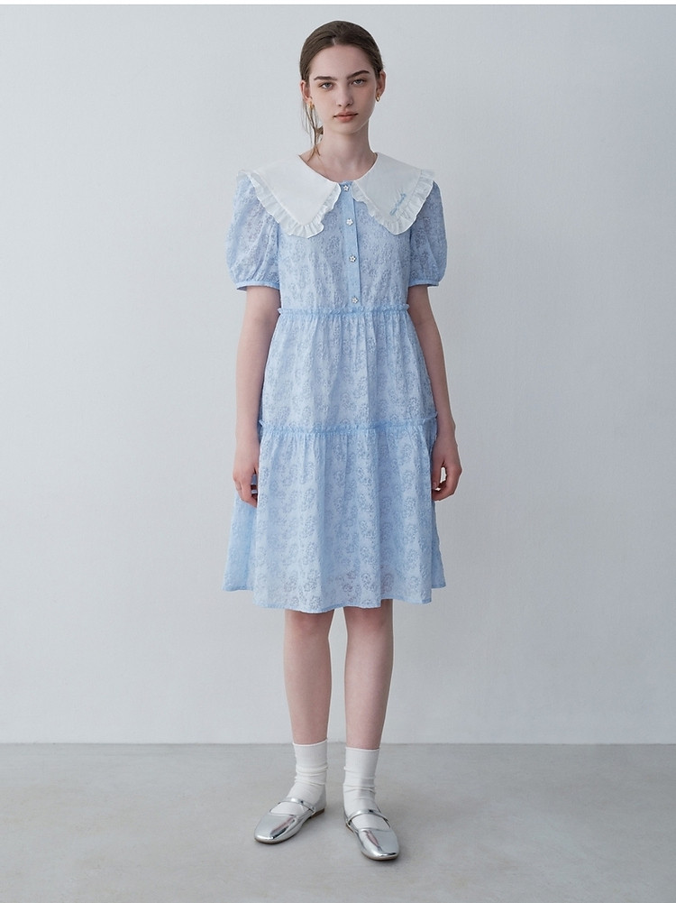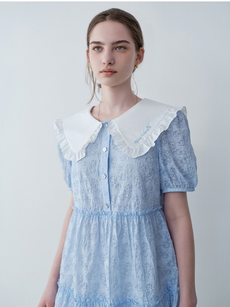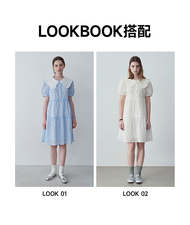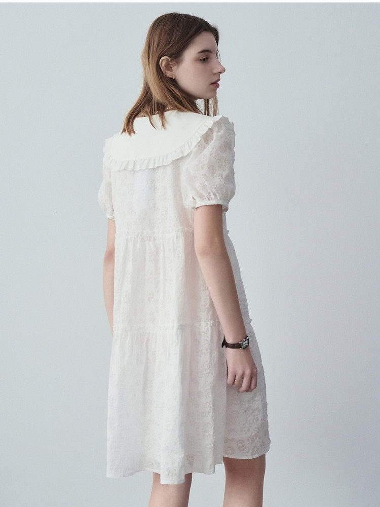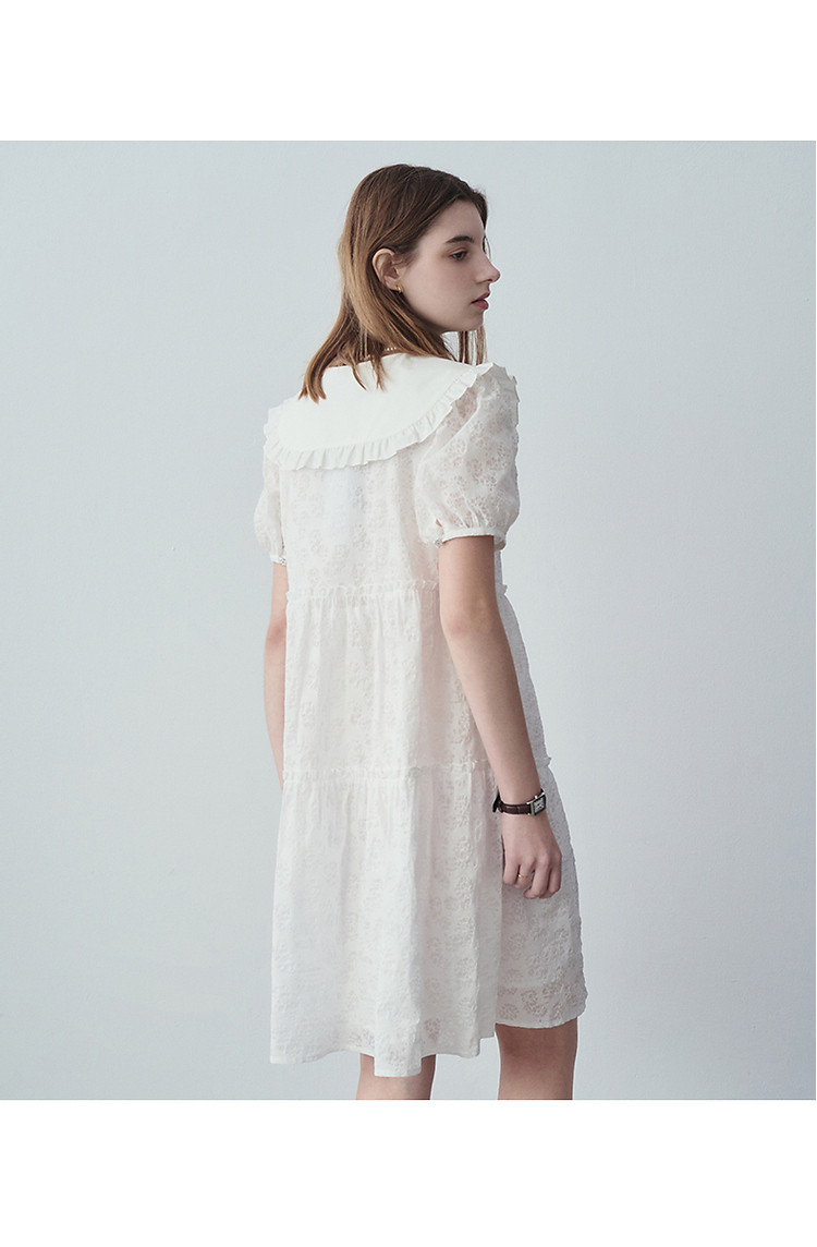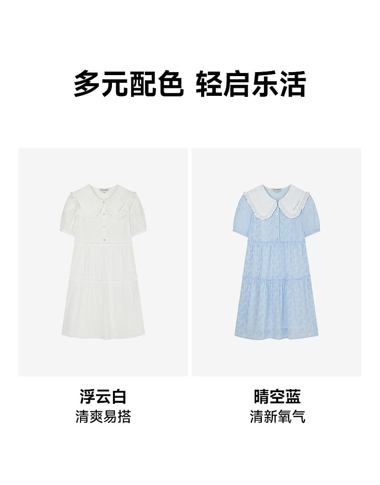 连衣裙女夏季法式浪漫可爱娃娃领中长款短袖裙子女 765633