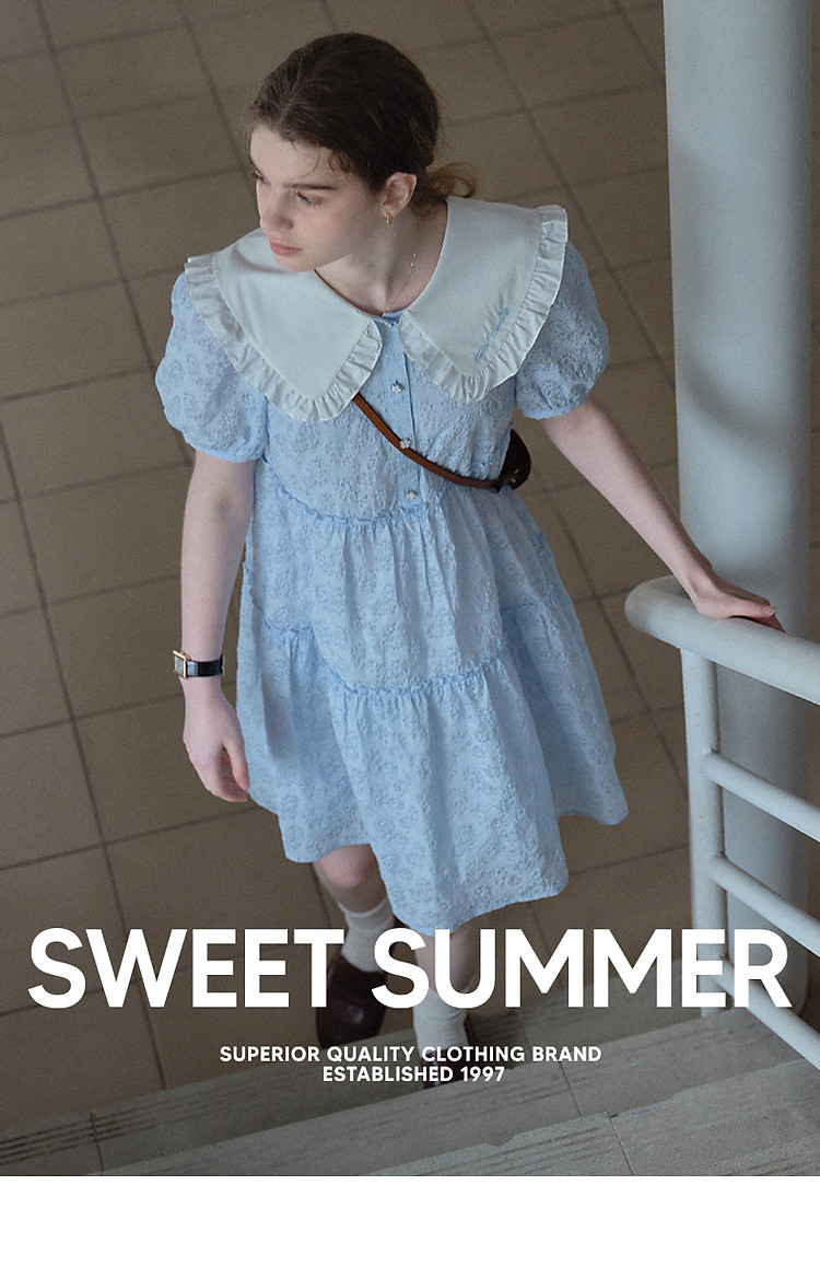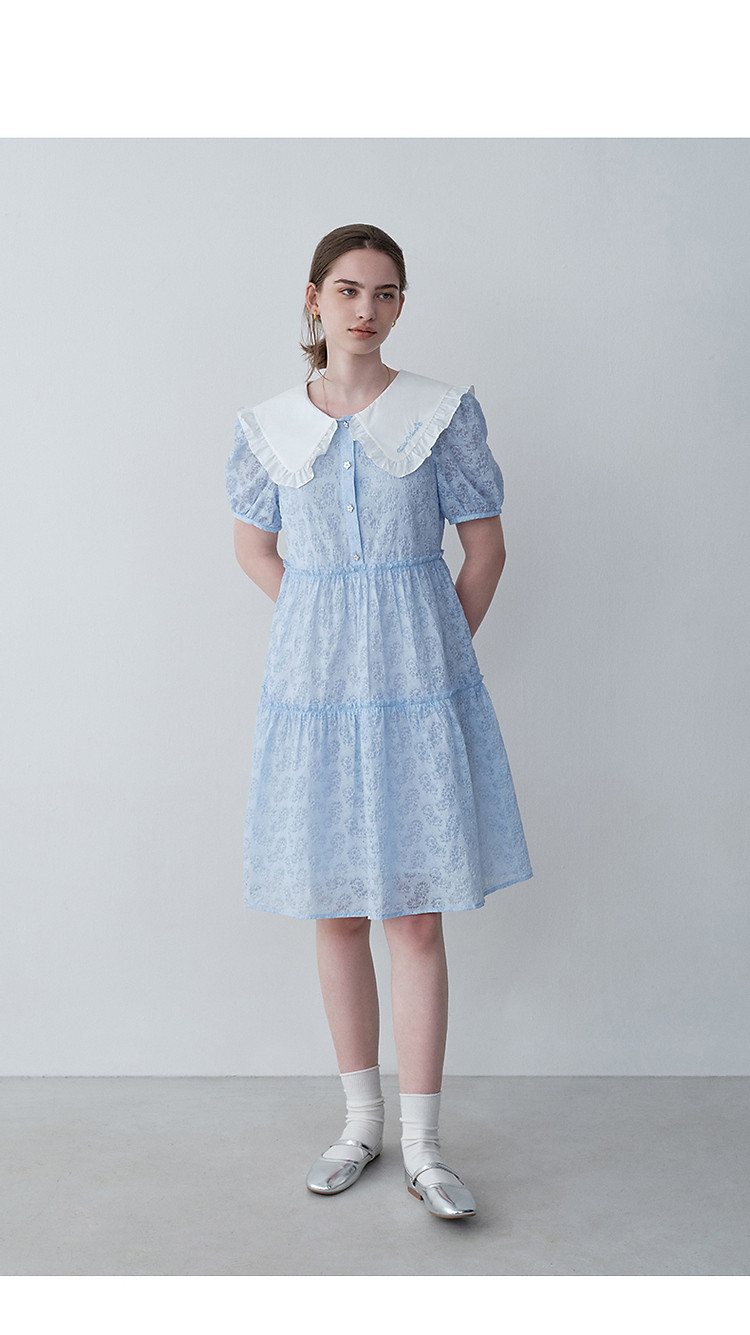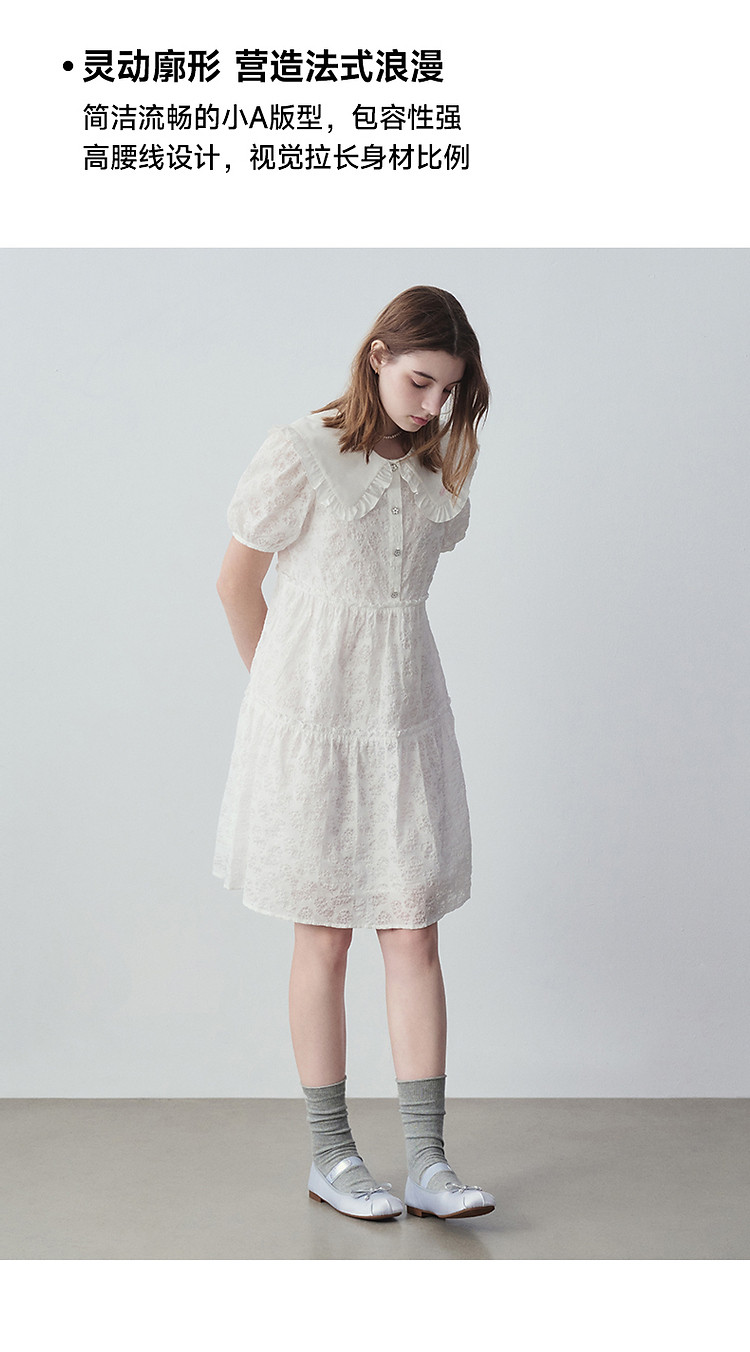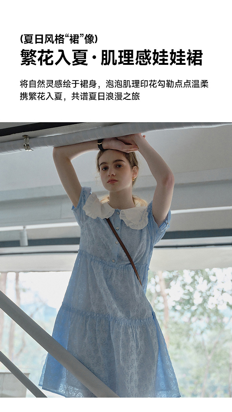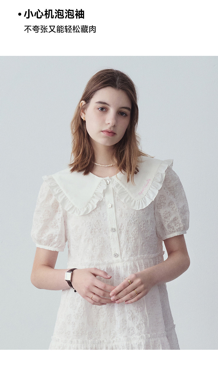 商品名称:连衣裙女夏季法式浪漫可爱娃娃领中长款短袖裙子女 765633