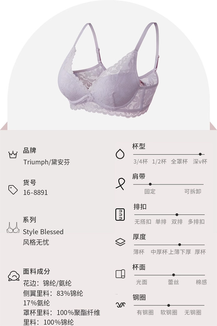 商品名称:黛安芬小胸聚拢舒适透气蕾丝文胸奶罩16-8891 596170