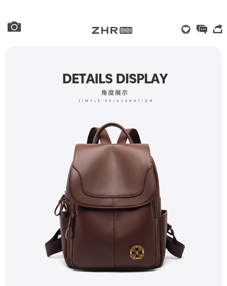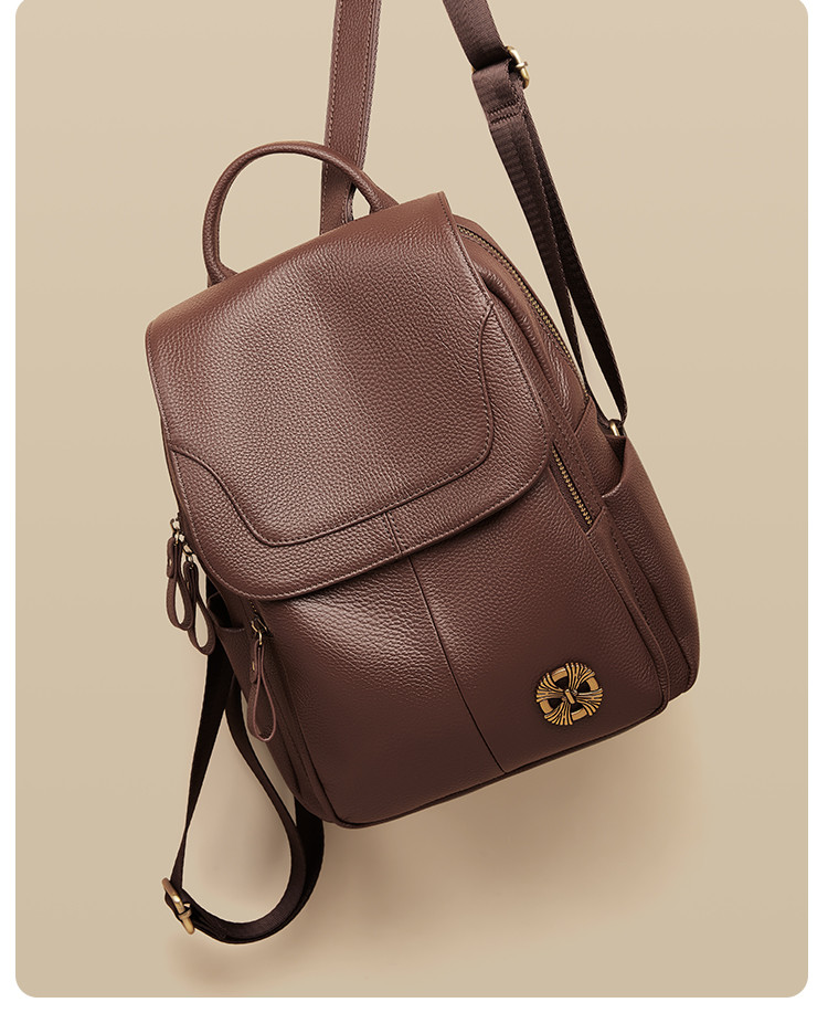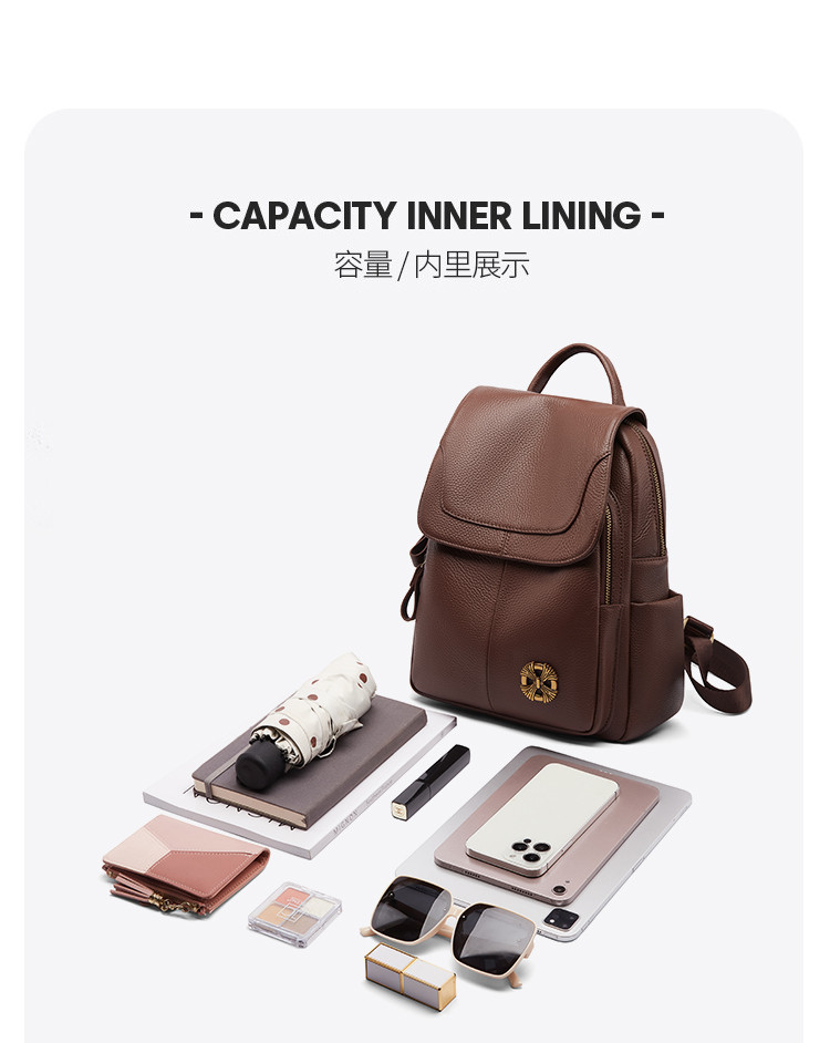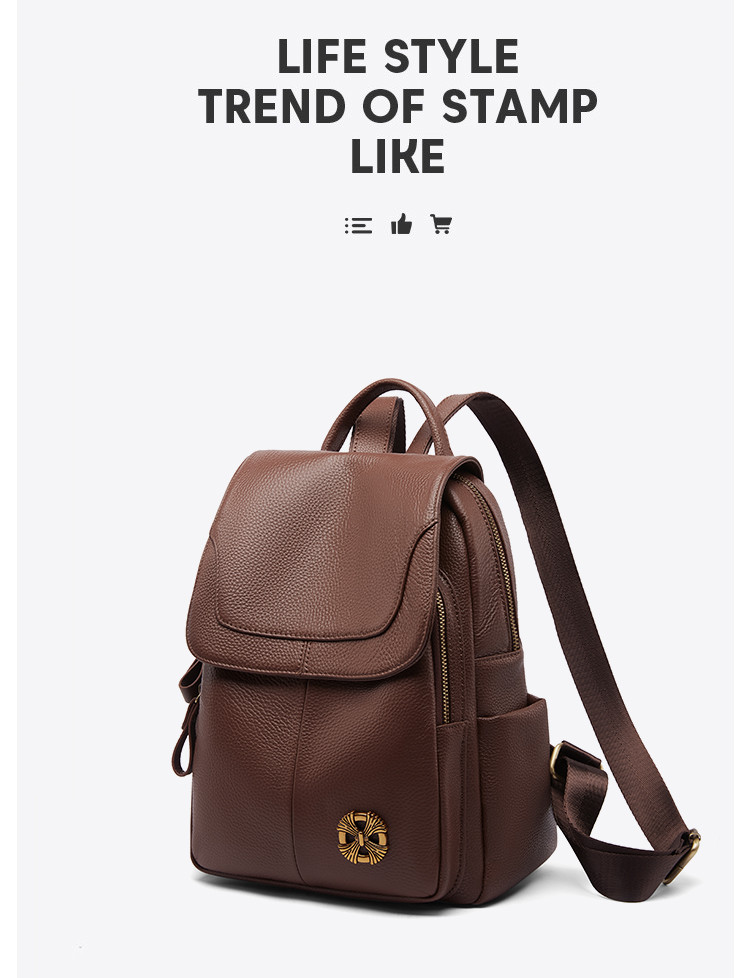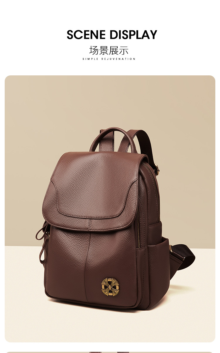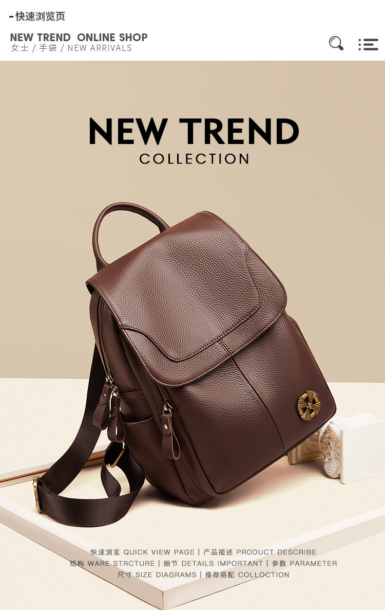 商品名称:【头层牛皮】双肩包爆款时尚百搭休闲背包简约防盗大容量双肩包女 866304