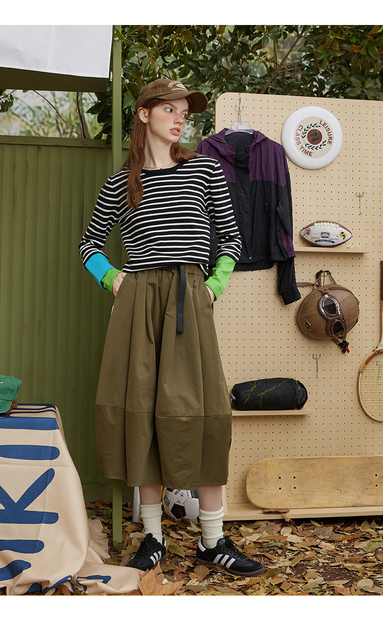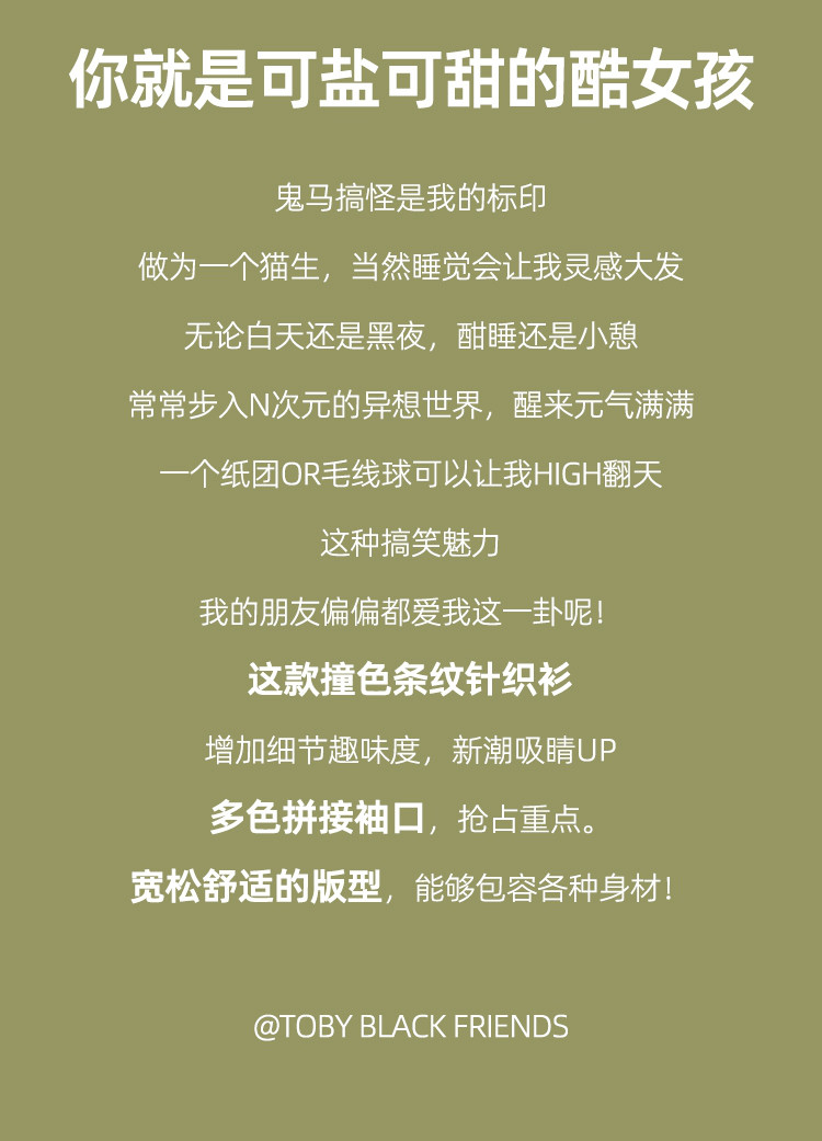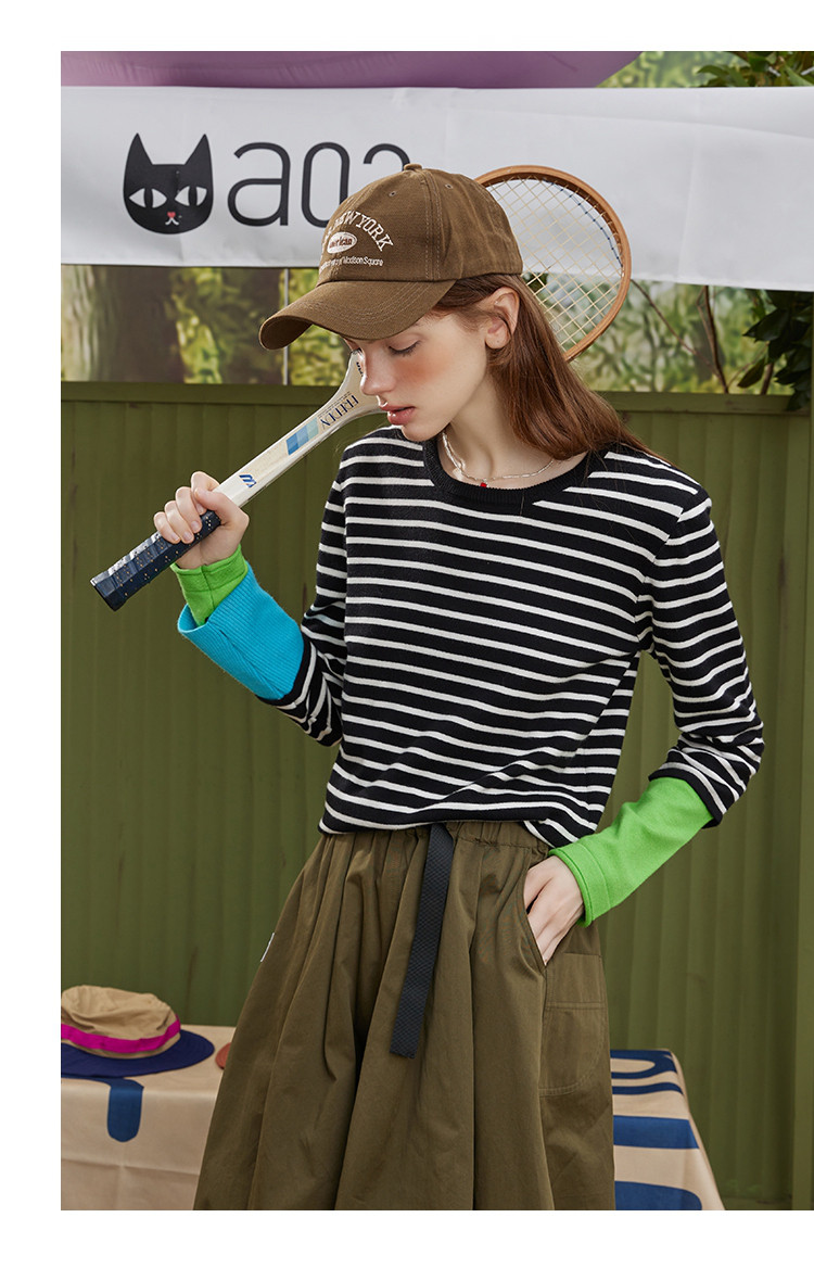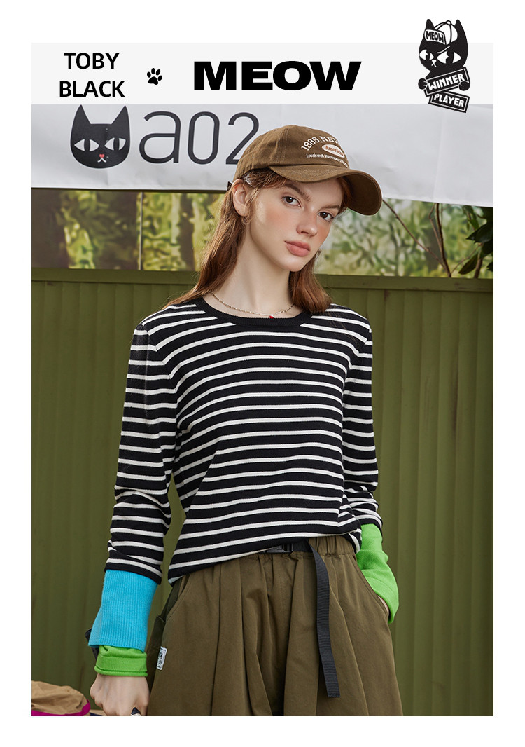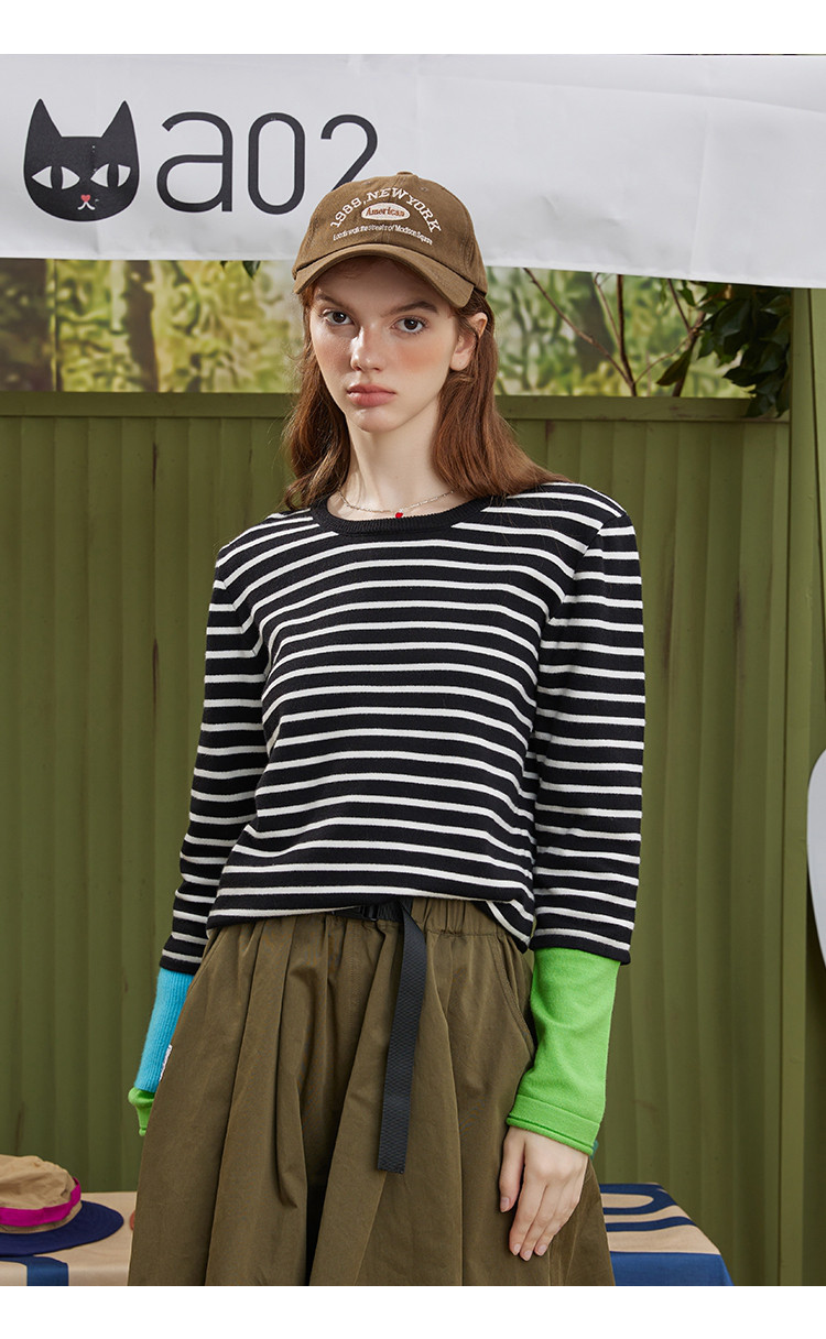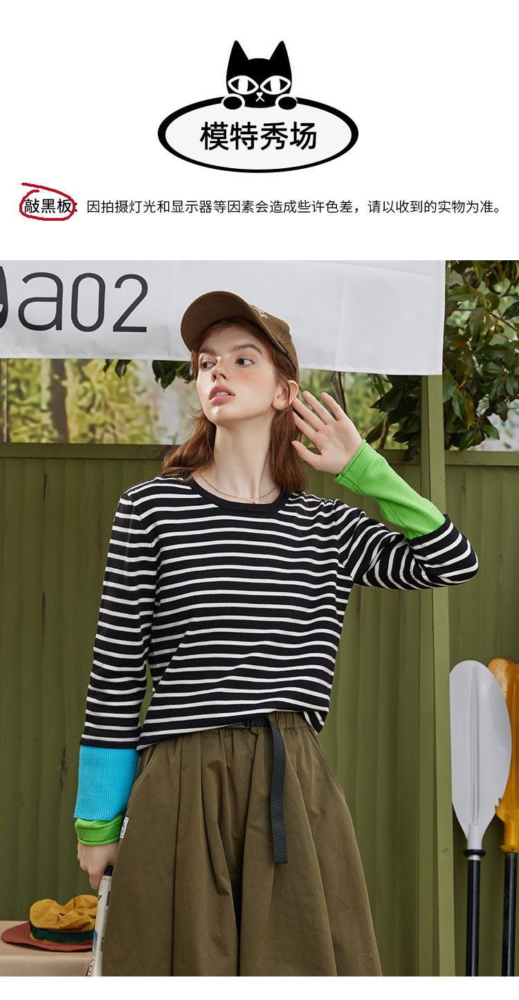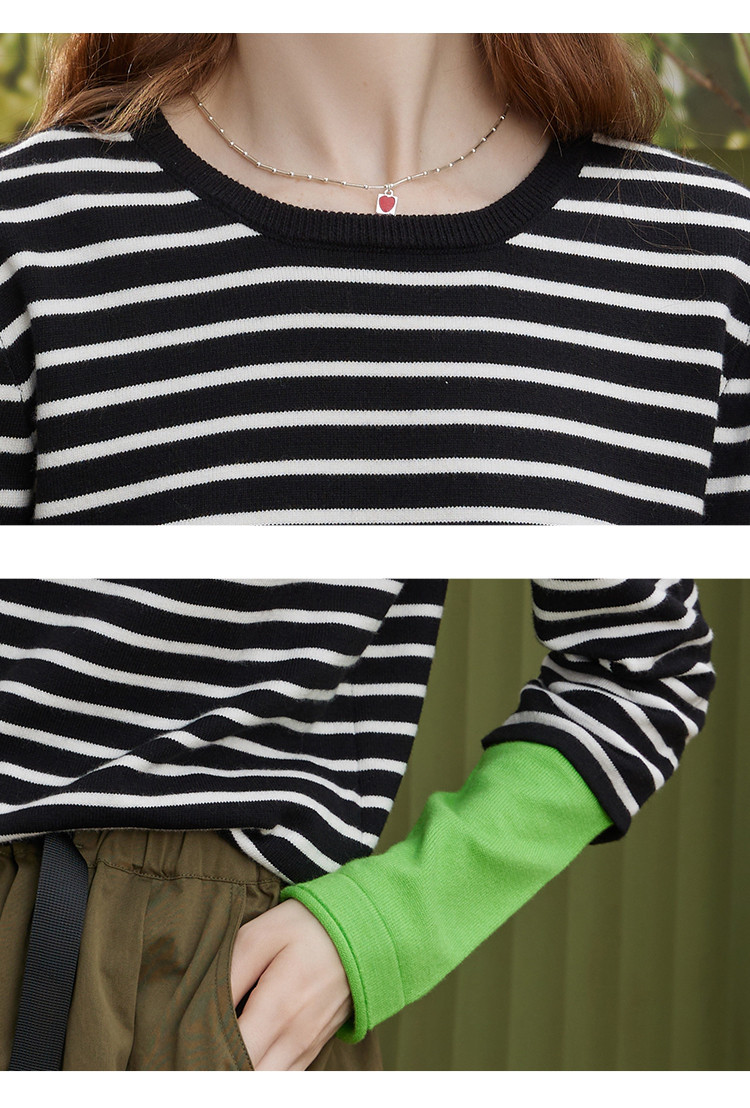 商品名称:冷淡系条纹拼接撞色款长袖打底毛衣秋季休闲女式针织衫 721181